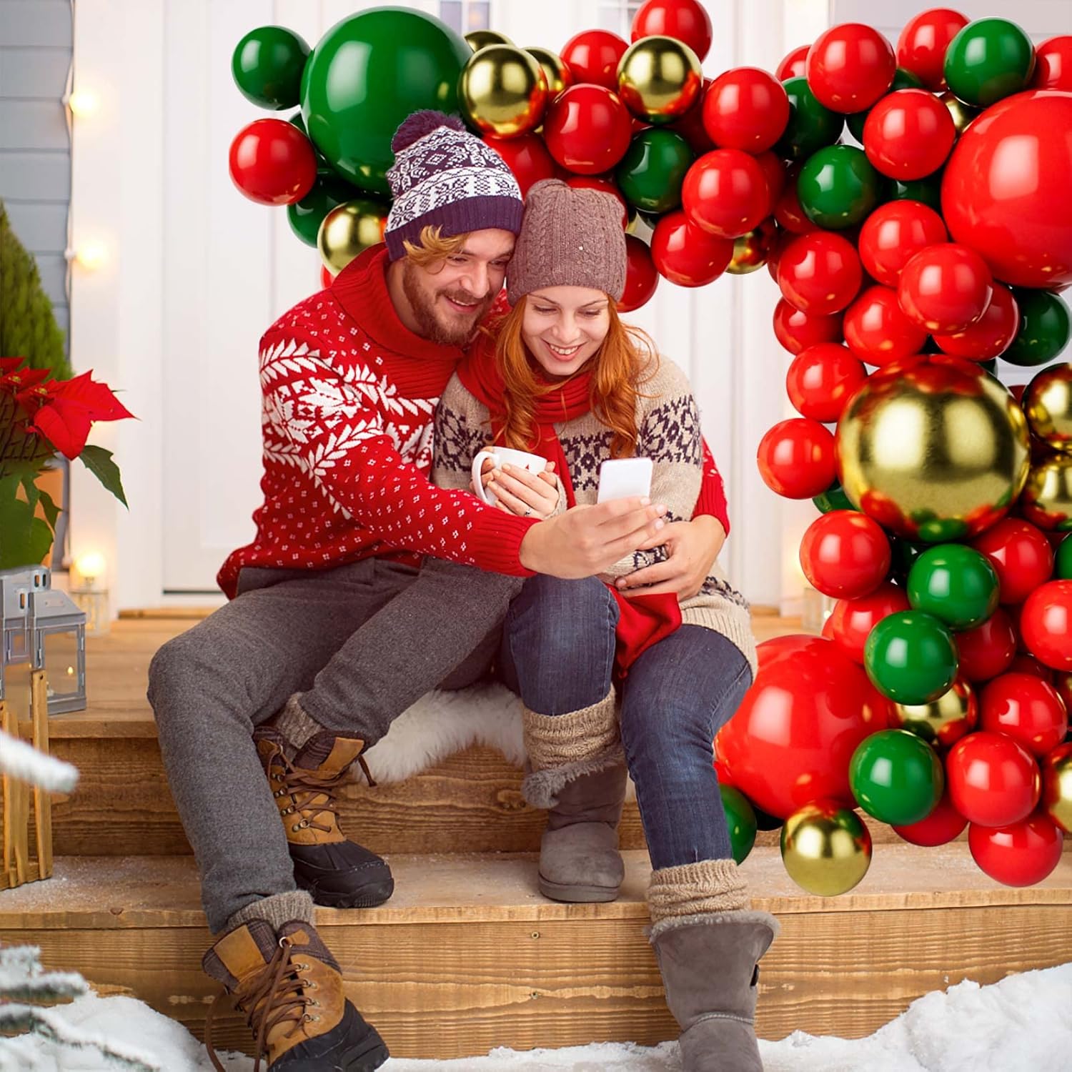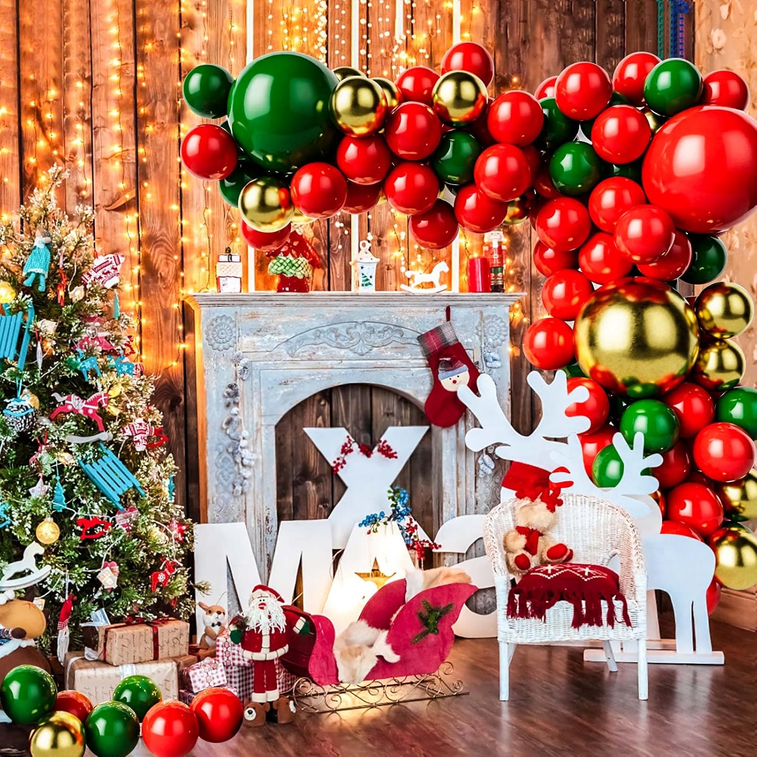 Red Green and Gold Balloon Garland Kit for Baby Shower, Wedding, Birthday, Graduation, Christmas Party Decoration