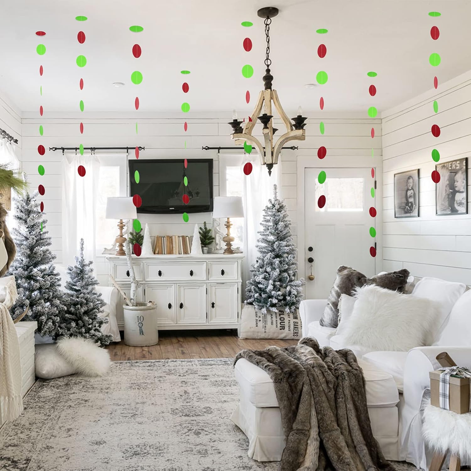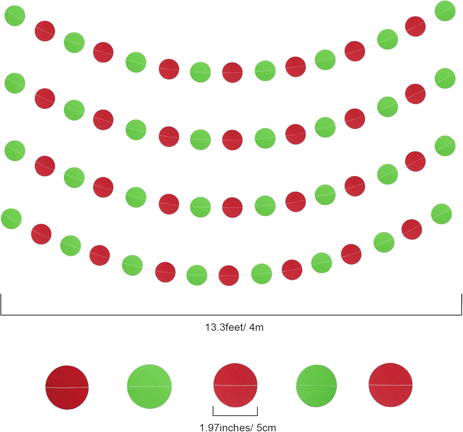Red Green Christmas Streamers Decorations, UNIIDECO Xmas Tree Ornaments Accessories, Circle Dots Paper Garland, Fiesta Birthday Loteria Party Banner Streamer Background Supplies Chriatmas Decor