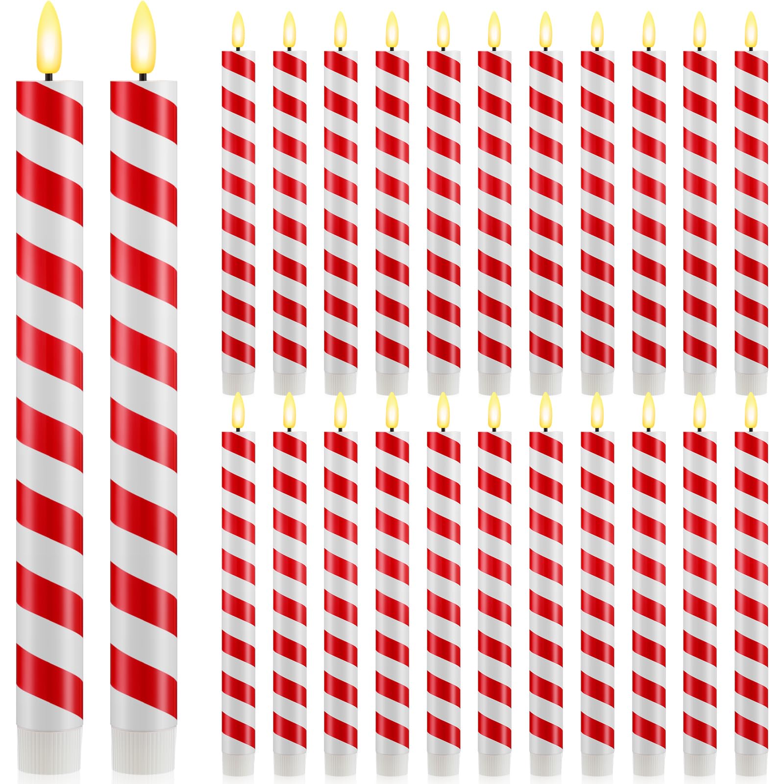 Retisee 24 Pieces Christmas Flameless Taper Candles Bulk Candy Cane Striped LED Candle Stick Battery Operated Taper Candles Flickering Candle Lights for Christmas Candles Decorations (Red and White)