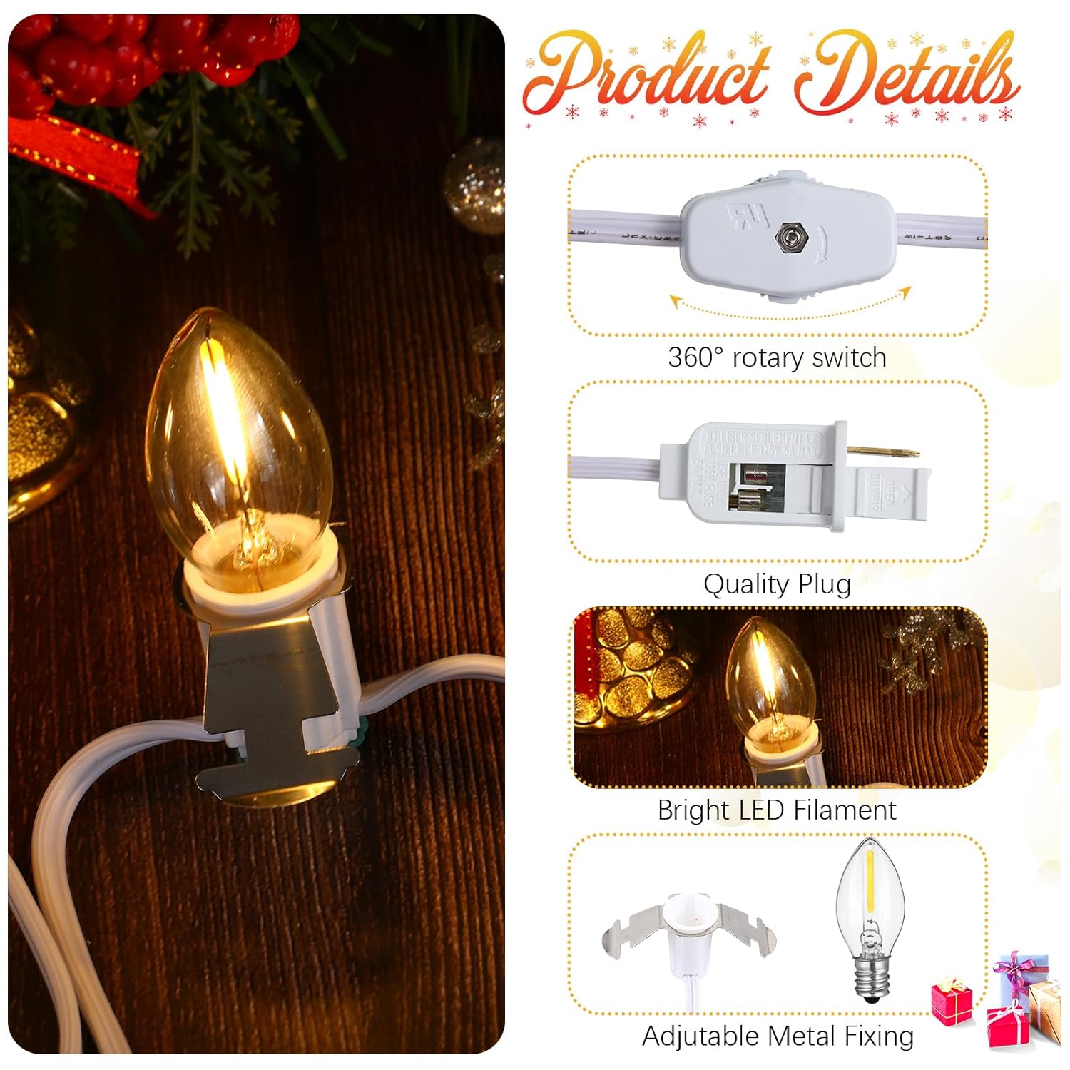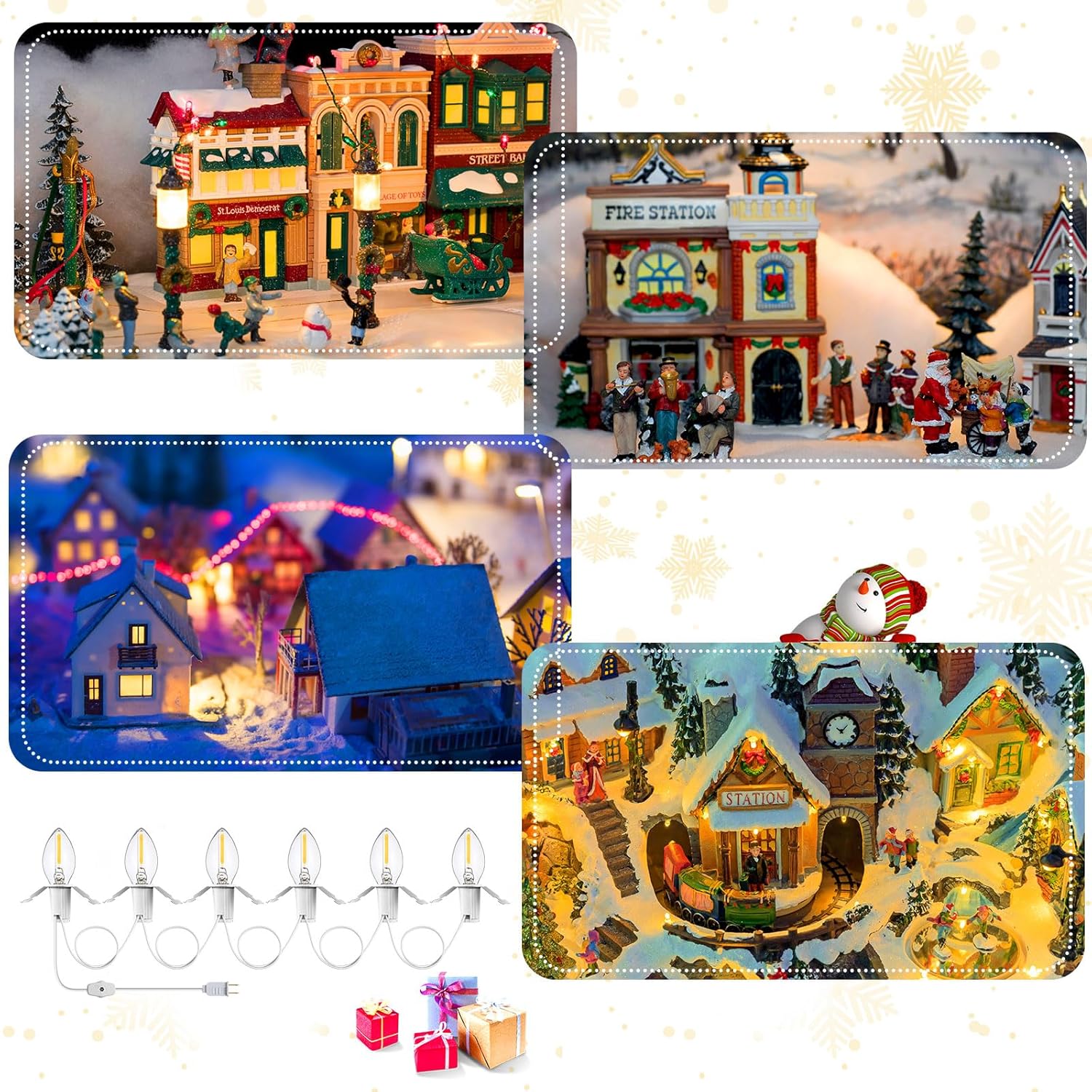 Retisee 4 Pcs Christmas 6 E12 LED Light Village Cord Accessory Cord and Outlet 11.48ft Christmas Village Light with On/Off Switch Plugs for Christmas Village Houses and Craft Decoration, White