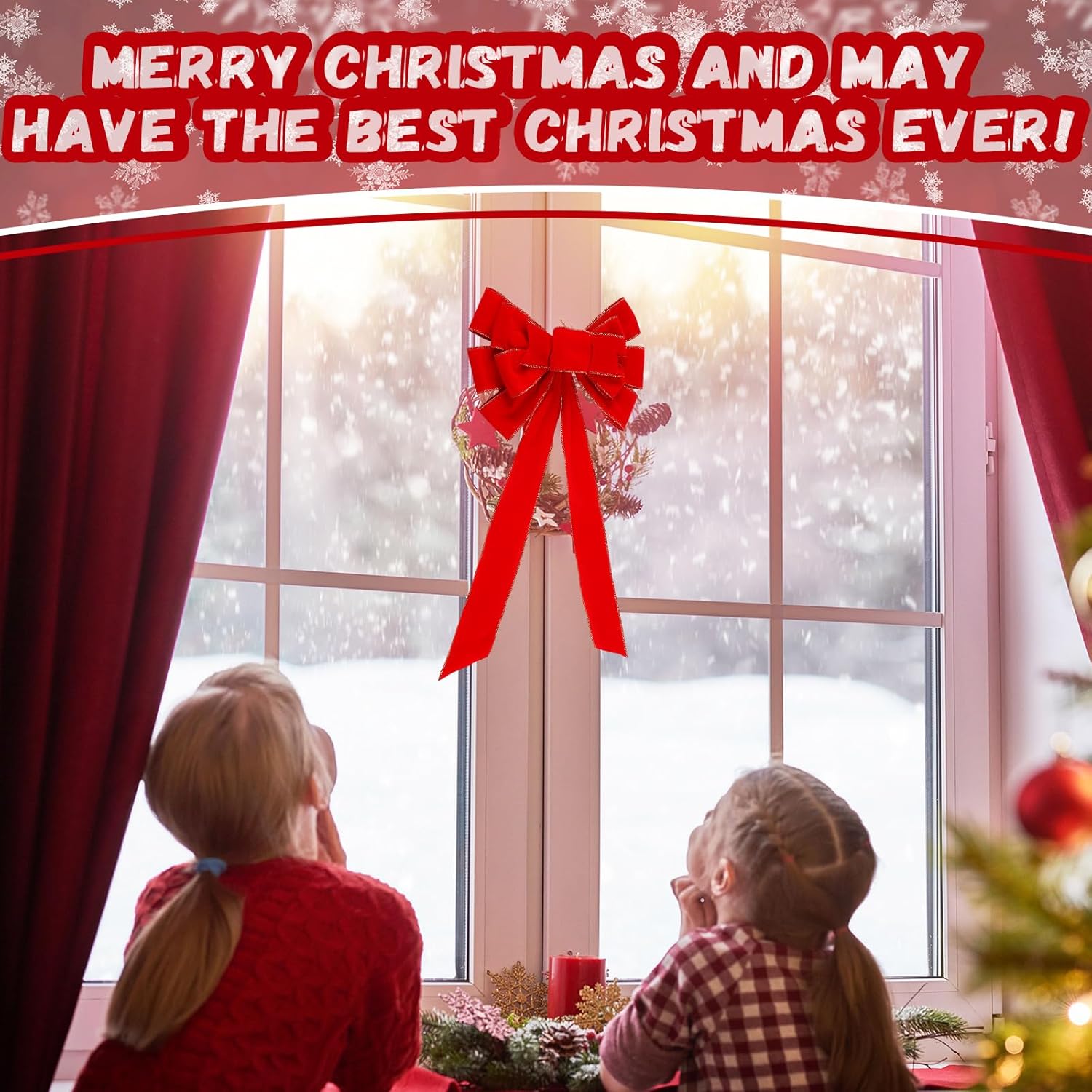 Riceshoot 12 Pcs Red Christmas Bows Outdoor Decorations, 12" x 24" Large Christmas Tree Topper Bow, Velvet Wreath Bow with Glitter Gold Edge for Xmas Home Front Door Decor