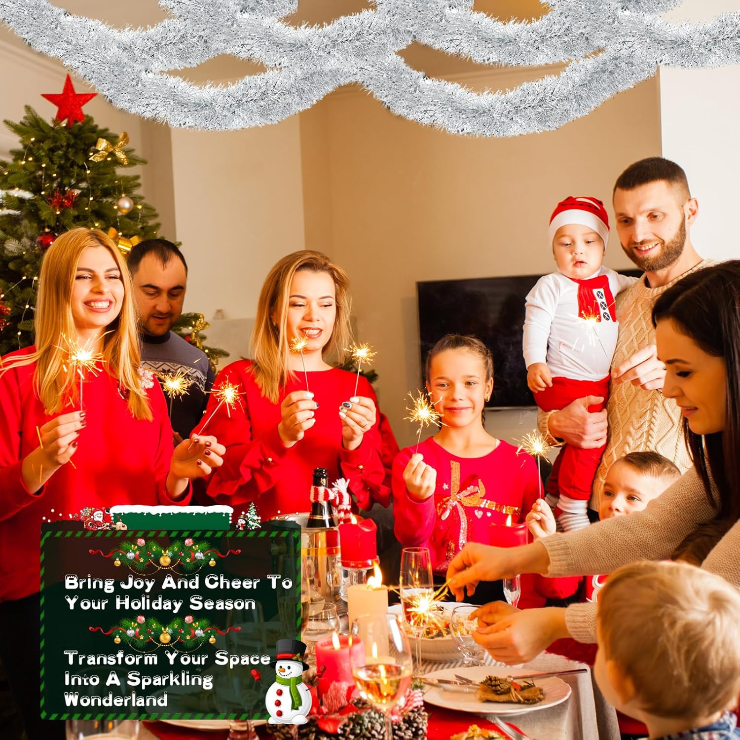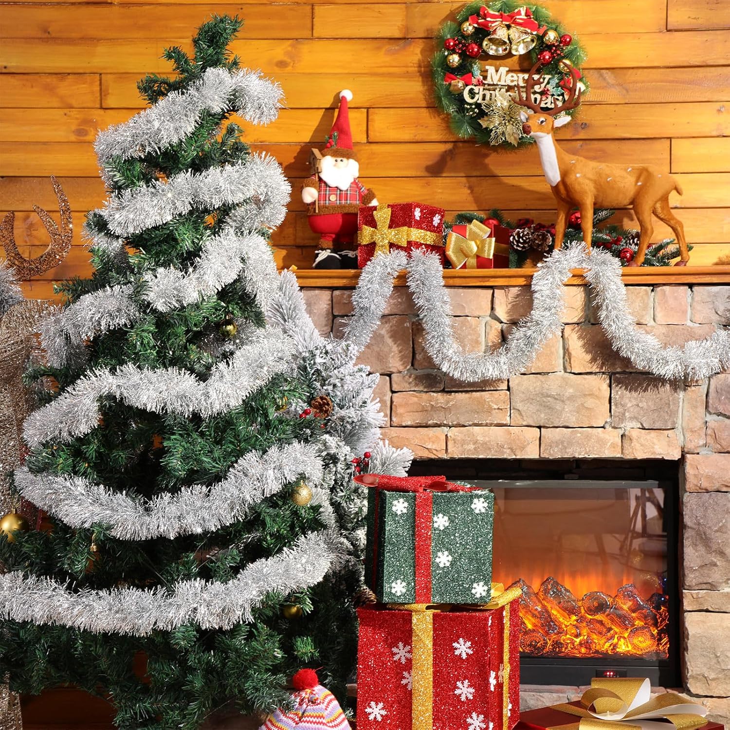 • Versatile Use: the Xmas tinsel garlands are versatile decoration tools, you can intertwine them with other decorations like Christmas lights, baubles, or ribbons to create a vibrant effect, ideal for hanging on Christmas trees, wreaths, mantels, staircases, doorways, festive table runners, and more