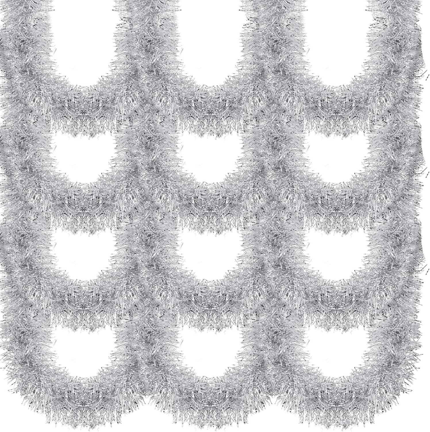 Package List: the package contains 6 rolls of Christmas tinsel garlands, each roll measuring approx. 50 ft in length, sufficient quantity, suitable sizes, and festive designs can fully meet your decoration needs, elevating the overall aesthetic of your house, and leaving unforgettable memories for your guestsAesthetically Pleasing: the silver tinsel garlands with intricate details and nice workmanship, they can transform your place into a festive scene, it adds an aesthetic pleasure to your Christmas celebration, spreading the festive atmosphere and cheer to every corner of your home