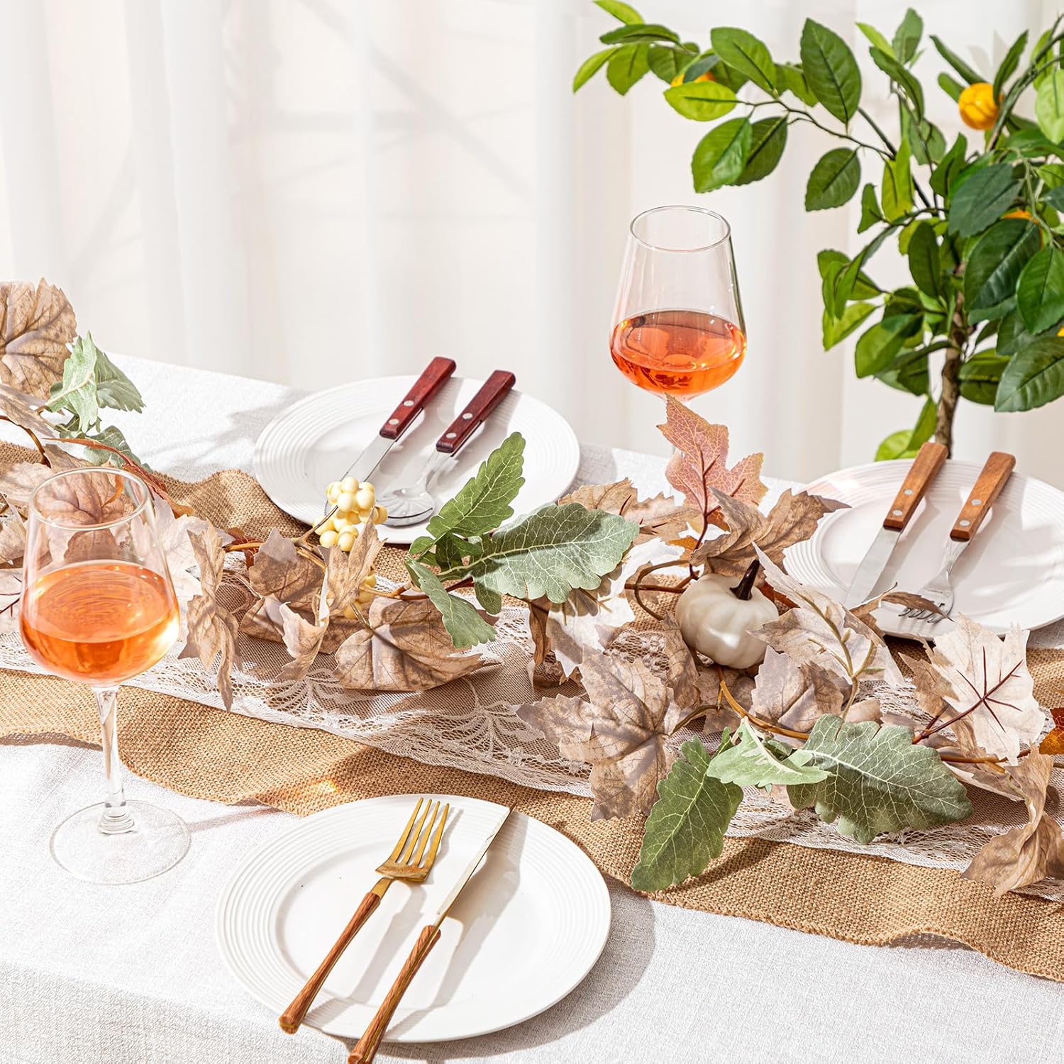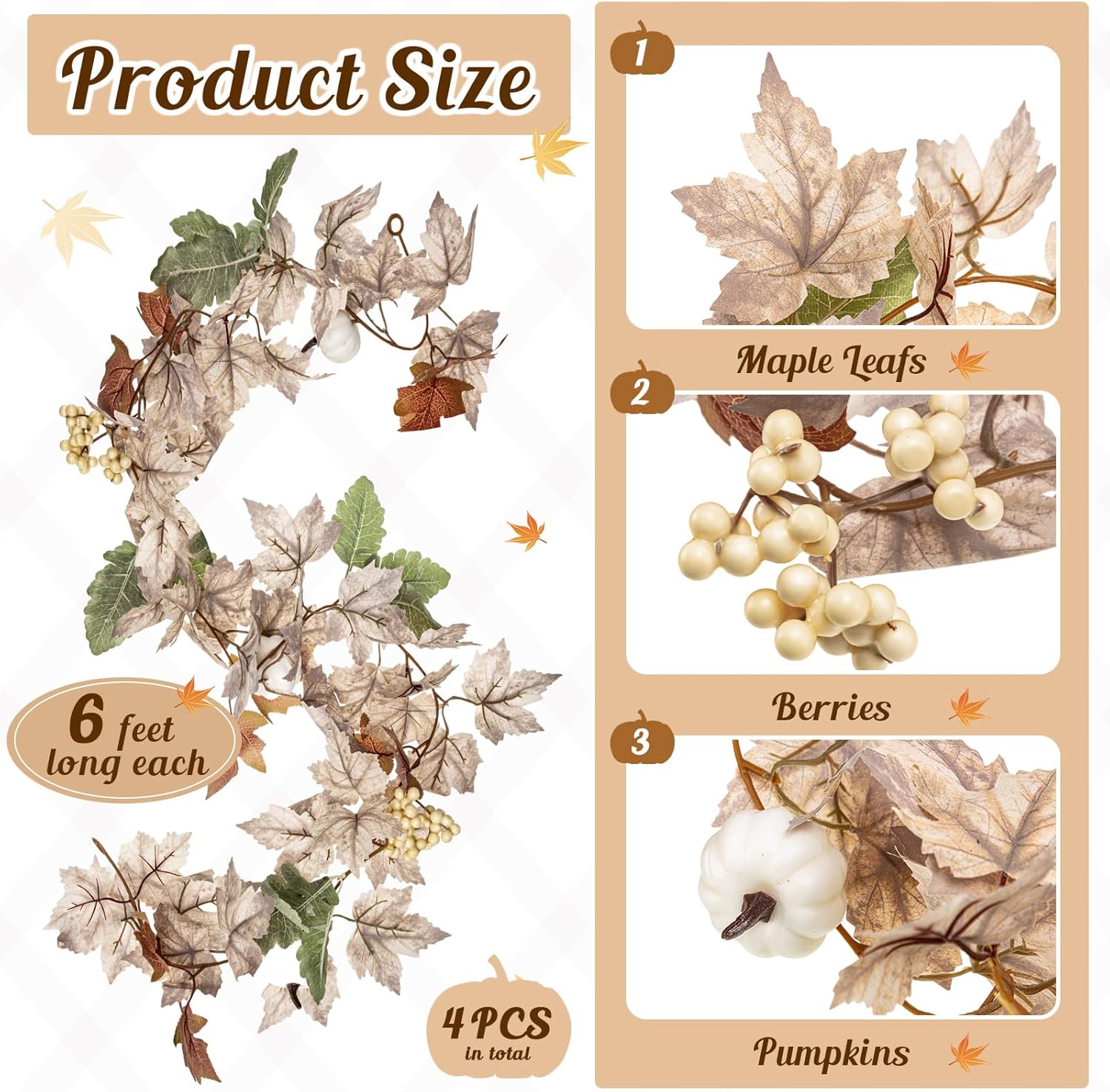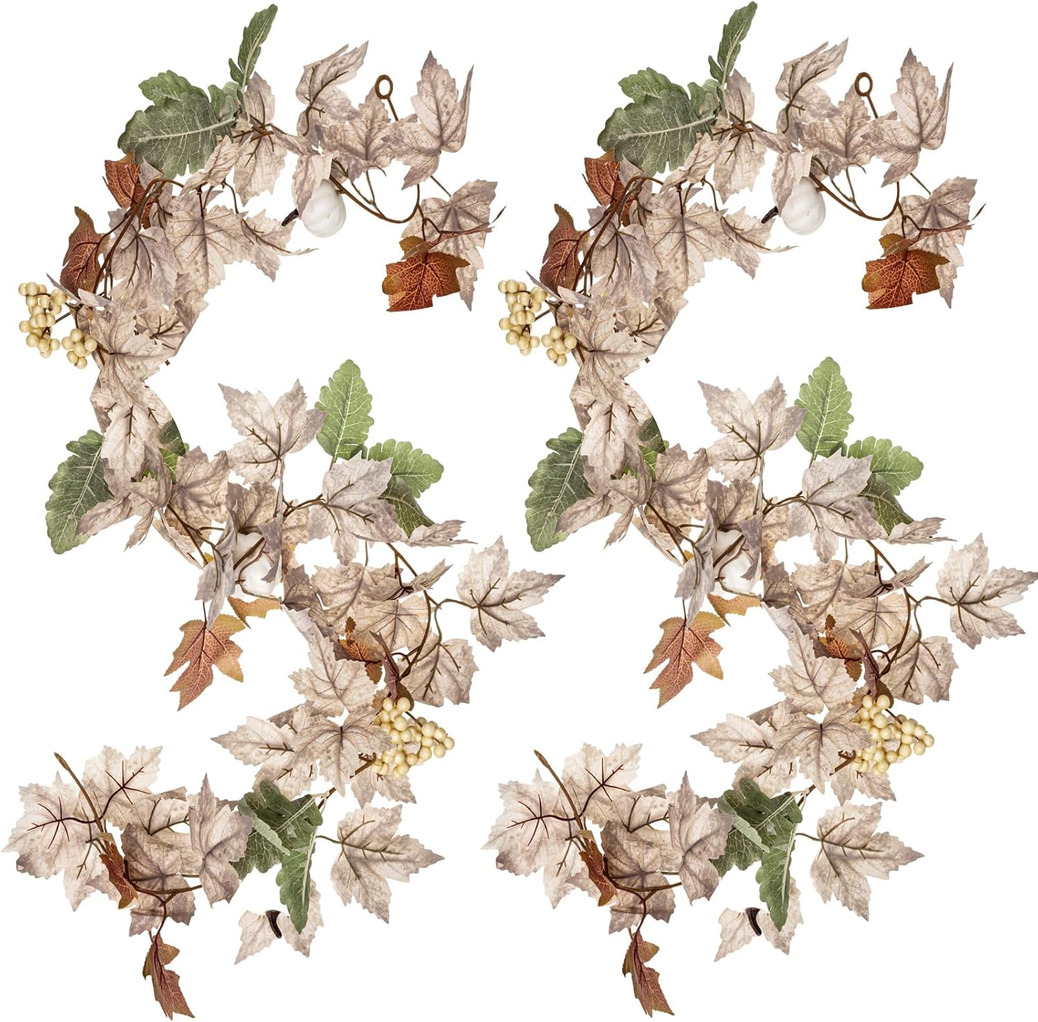 Riceshoot 4 Pcs Thanksgiving Garland 6 ft Fall Leaves Garland with White Pumpkins Autumn Maples Berry Garland Christmas Halloween Fall Mantel Decor for Home Outdoor Indoor