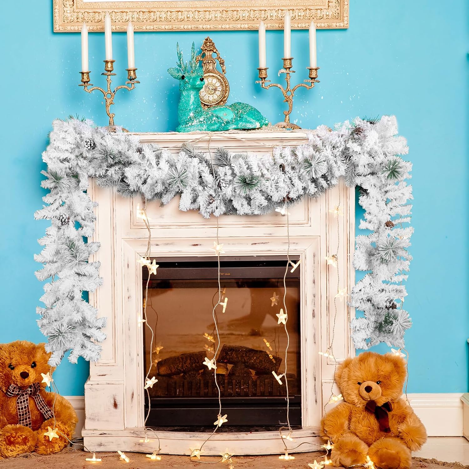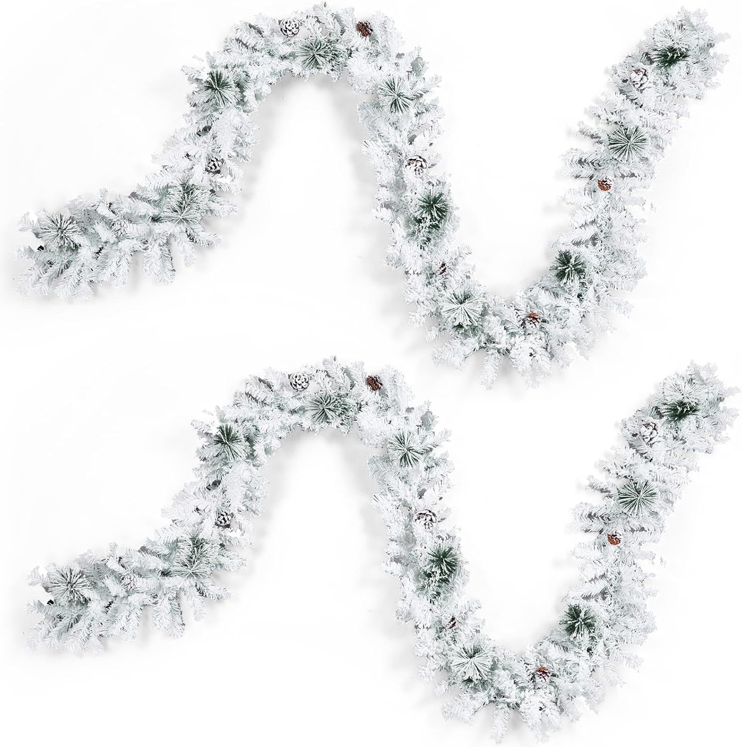 Riceshoot 9.84 Ft Flocked Christmas Garland Artificial Christmas Frosted Pine Garland Snow Cedar Garland for Xmas Winter Mantel Fireplace Table Centerpiece Background Hanging Decor(2 Pieces)