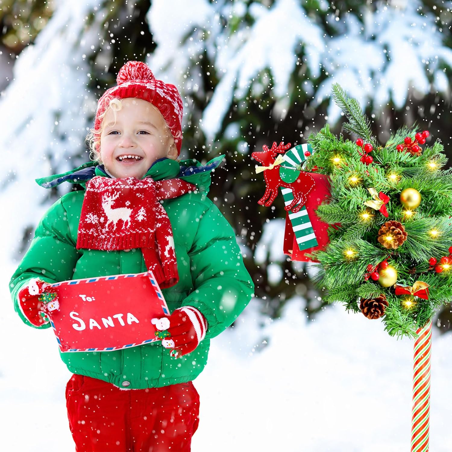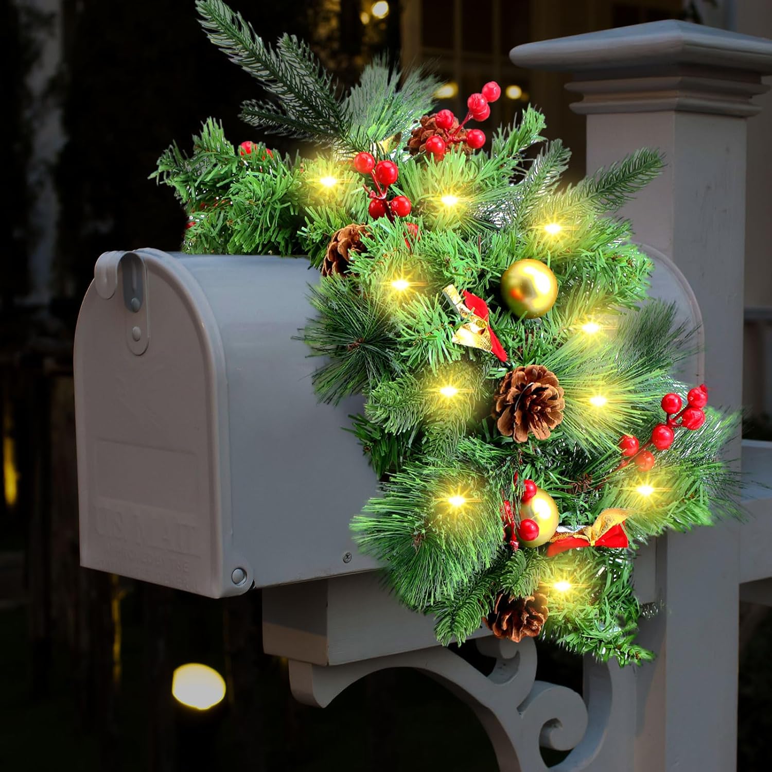 Riceshoot Pre Lit Artificial Christmas Mail Box Swag with Lights Berry and Pine Cones, 35.4 Inch Timed Mailbox Swag Christmas Mailbox Decoration Indoor Outdoor for Xmas Home Decor