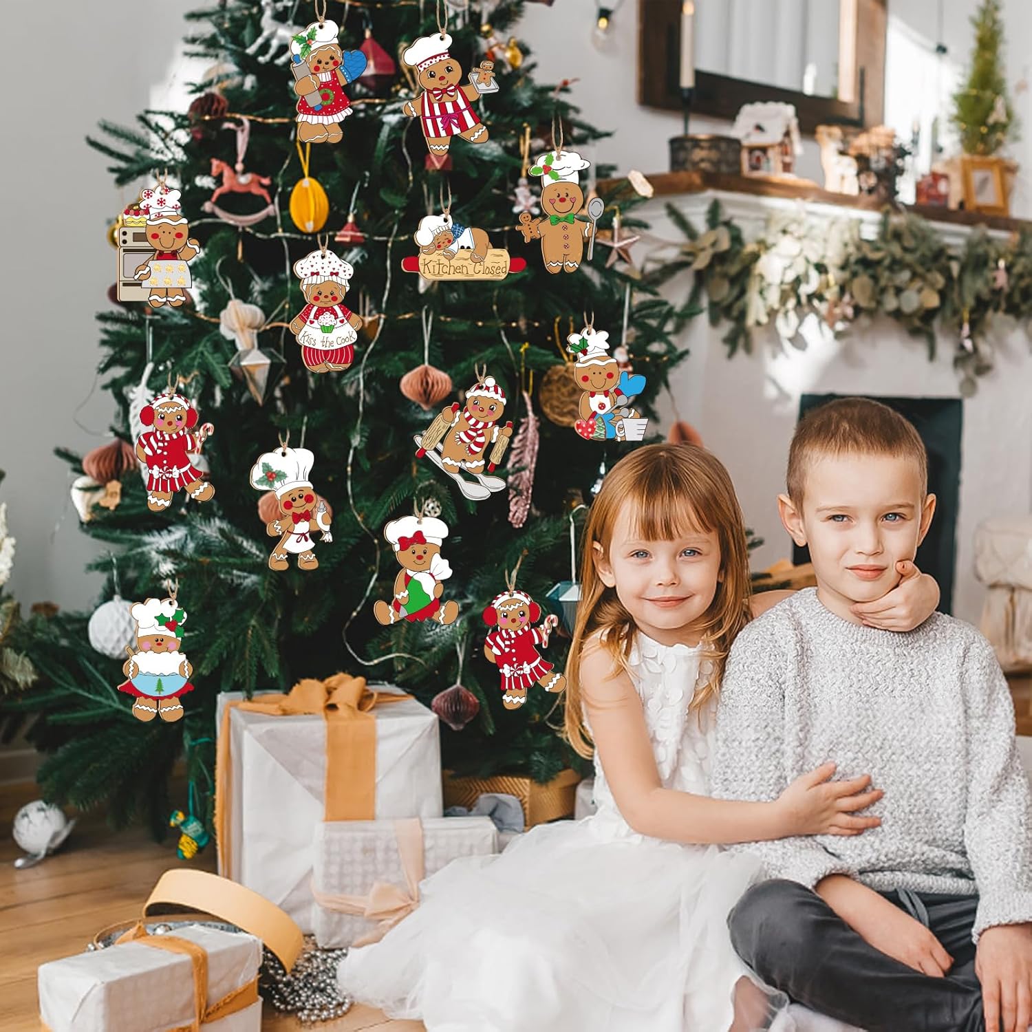 RINOLY 24 Pcs Gingerbread Christmas Decoration for Tree,Cooking Gingerbread Man Ornaments for Christmas Tree,Christmas Wooden Hanging Ornaments Home Kitchen Decor