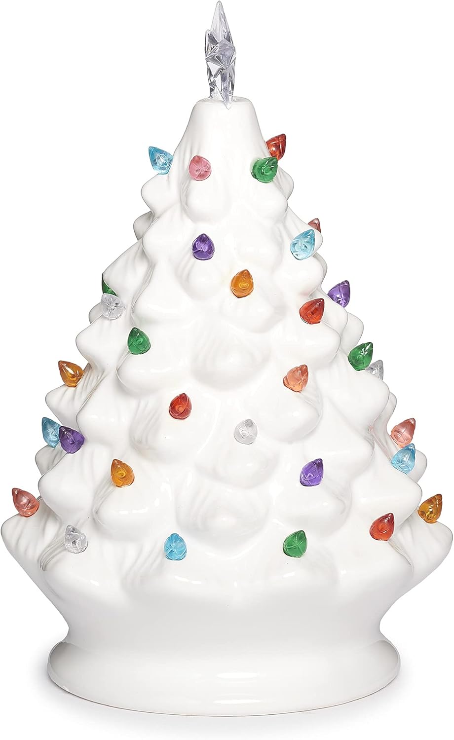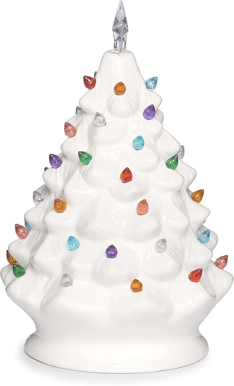 Roman Christmas - Lighted White Vintage Tree, 8" H, Christmas Collection, Ceramic, Battery Operated, Inspirational, Beautifully Detailed, Long Lasting