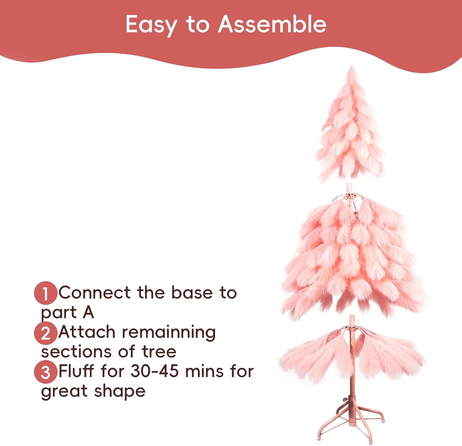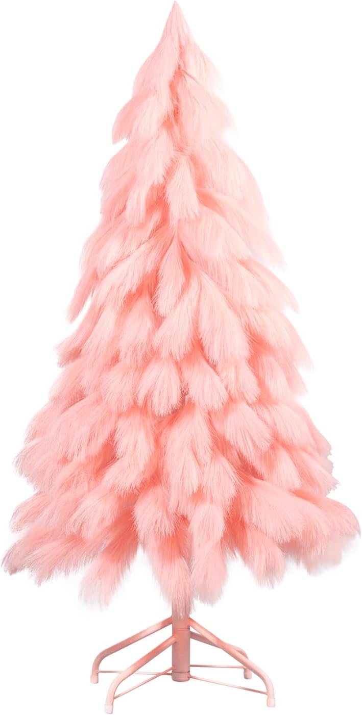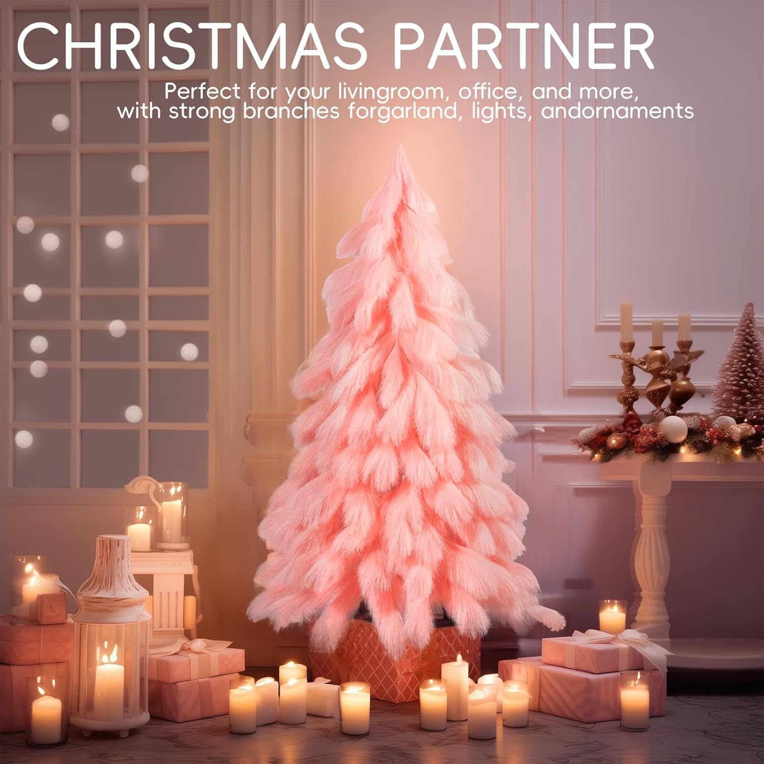 Romantic season Handcrafted 4FT Pink Christmas Tree, Premium Fiber Holiday Xmas Tree Branch Tips & Metal Foldable Stand for Home, Office, Party Decoration