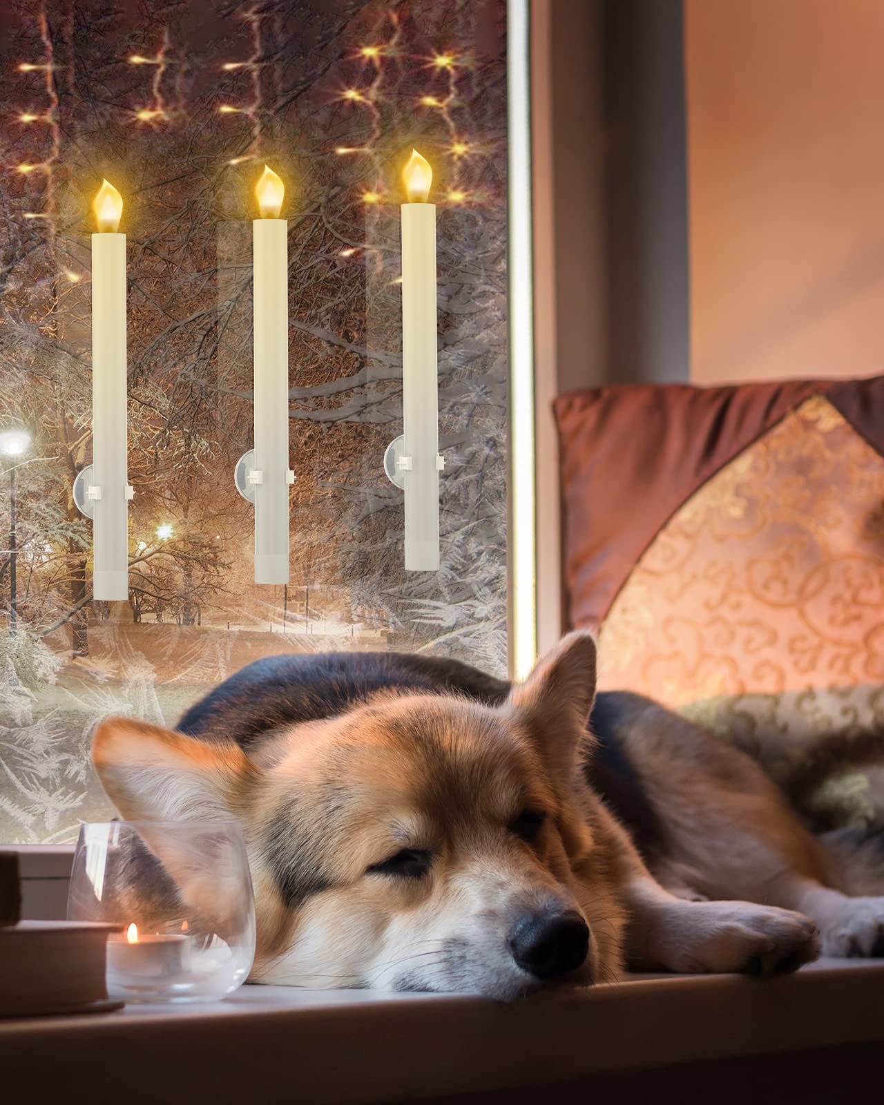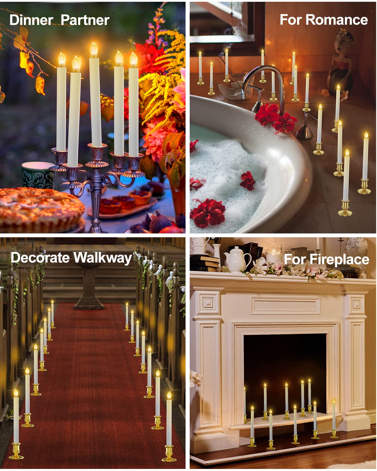 RONXS Window Candles, Flameless Taper Candles with Timer, Christmas Home Wedding Decor Battery Operated Flickering LED Candles with Remote Controls, Gold Candle Holders (B-6pcs Gold)