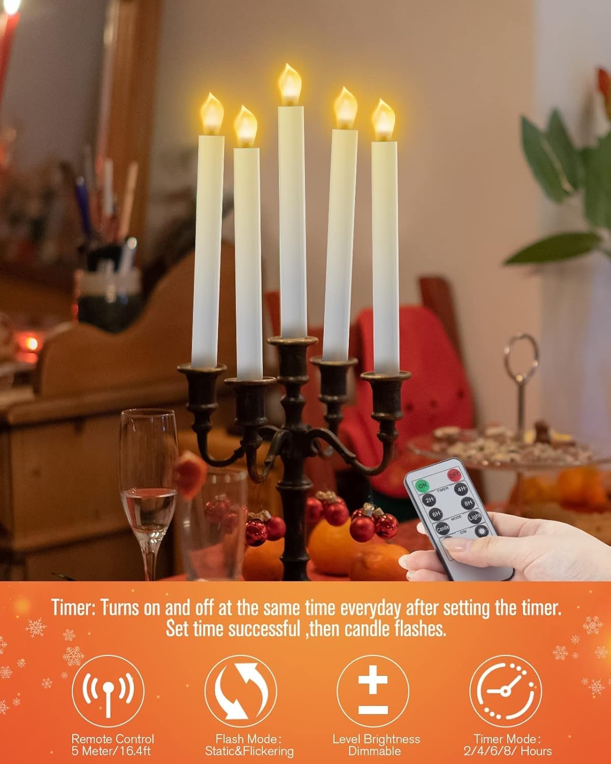 RONXS Window Candles, LED Taper Candles with Timer, Flickering Flameless Candles with Remote Battery Operated Candles, Indoor Christmas Decorations (6 Pcs Gold)