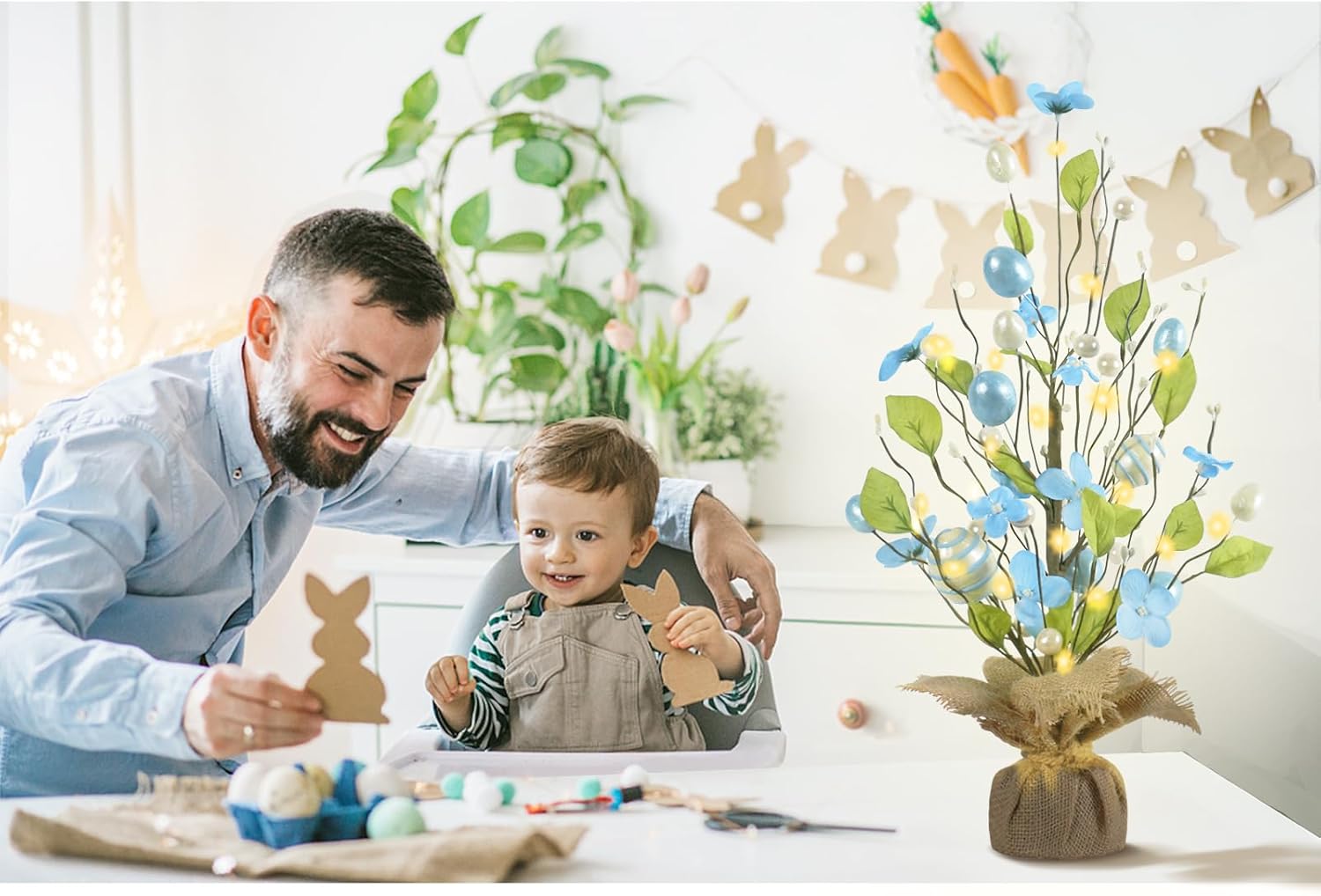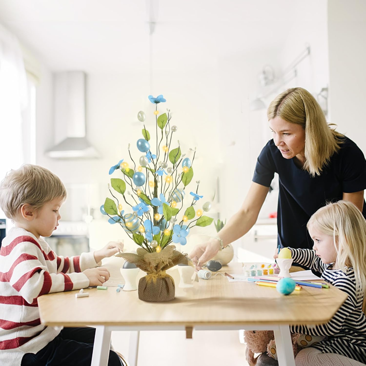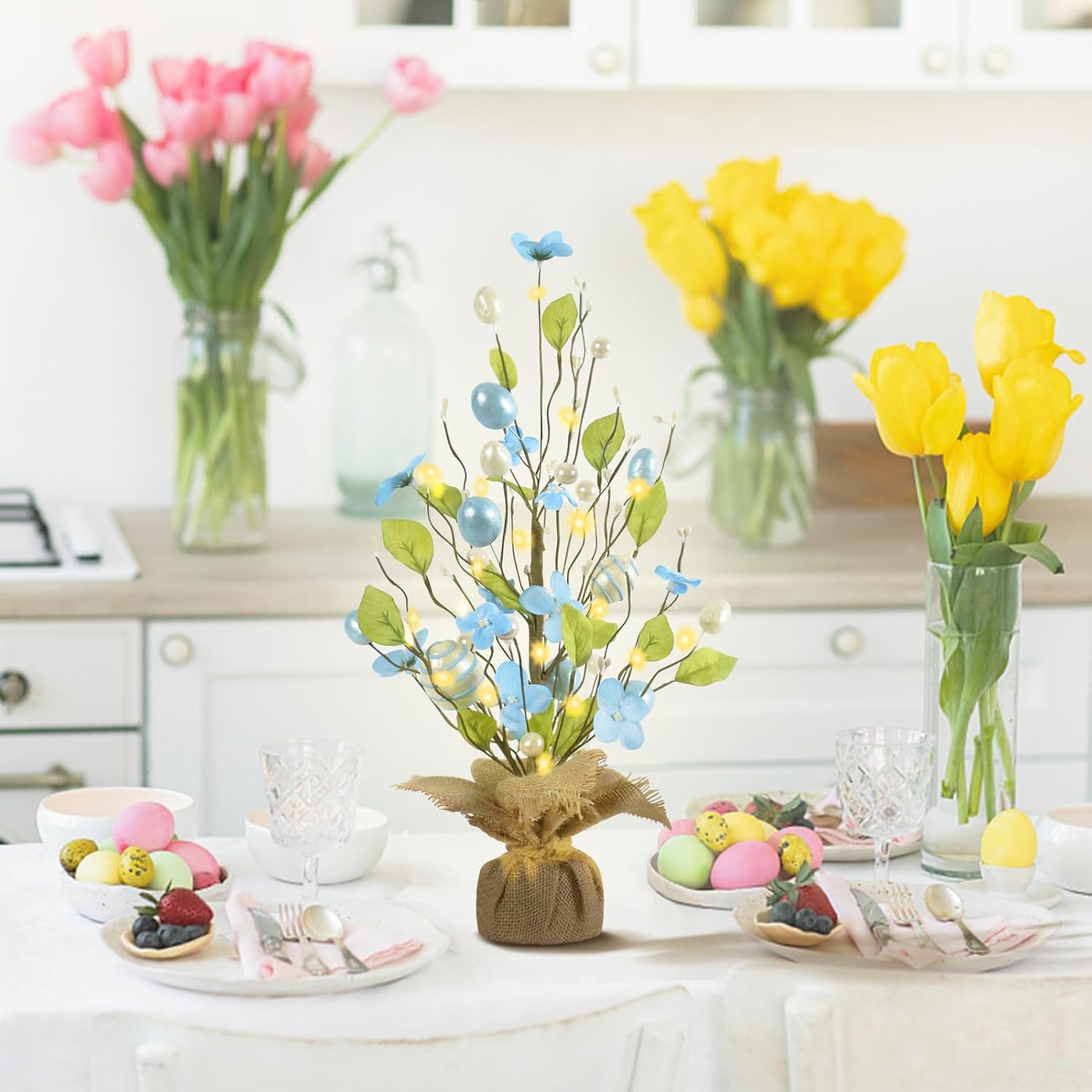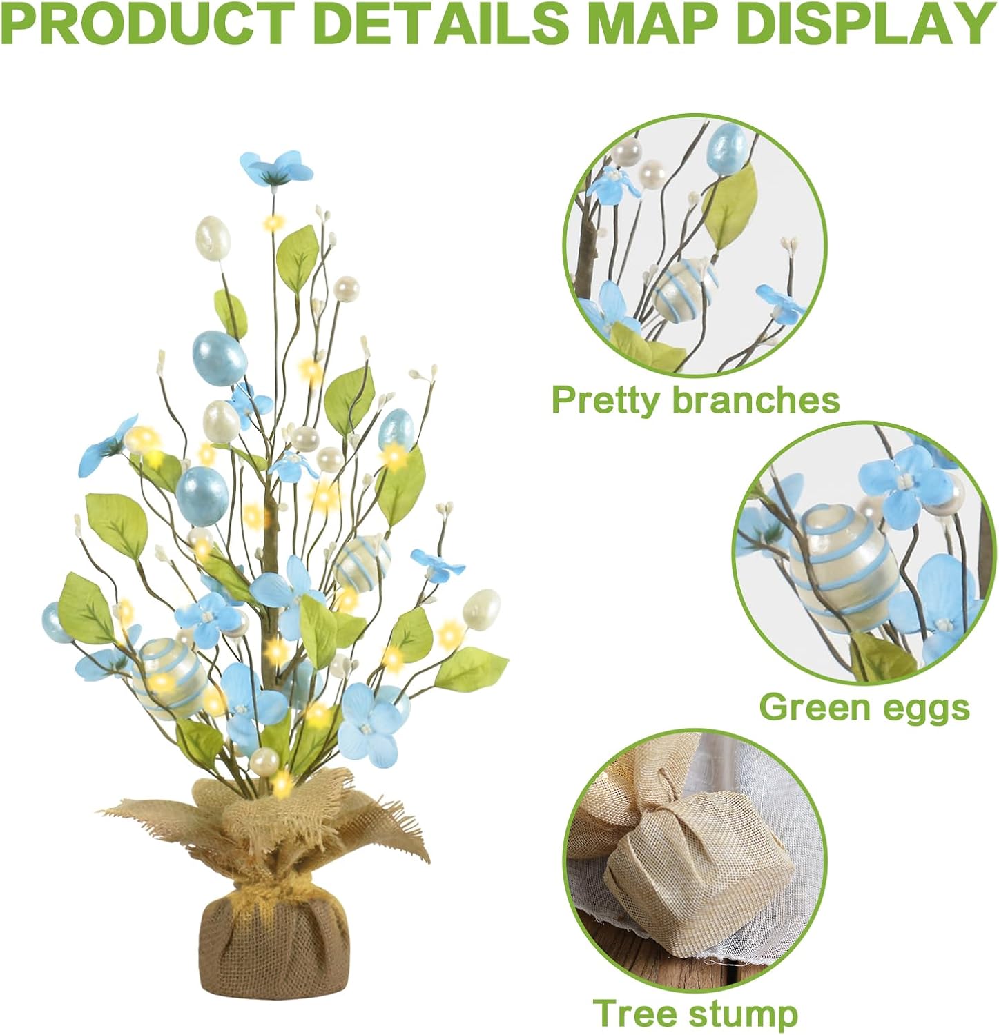 RoseCraft Easter Decorations, 18 Inch Easter Artificial Egg Tree Tabletop Decor with Delicate Ornaments, for Home Party Wedding Holiday Spring Summer Decoration, Blue/White.