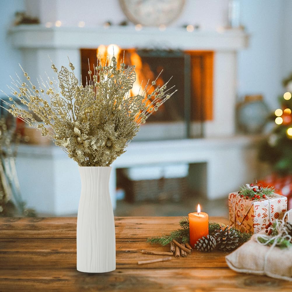 ROSELEAF 28 Pack Artificial Glitter Berry Stem Ornaments, Gold Christmas Ornaments Flower Branches Picks for Xmas Tree Decoration Decor Small Vase Home Holiday Wedding Party Decor