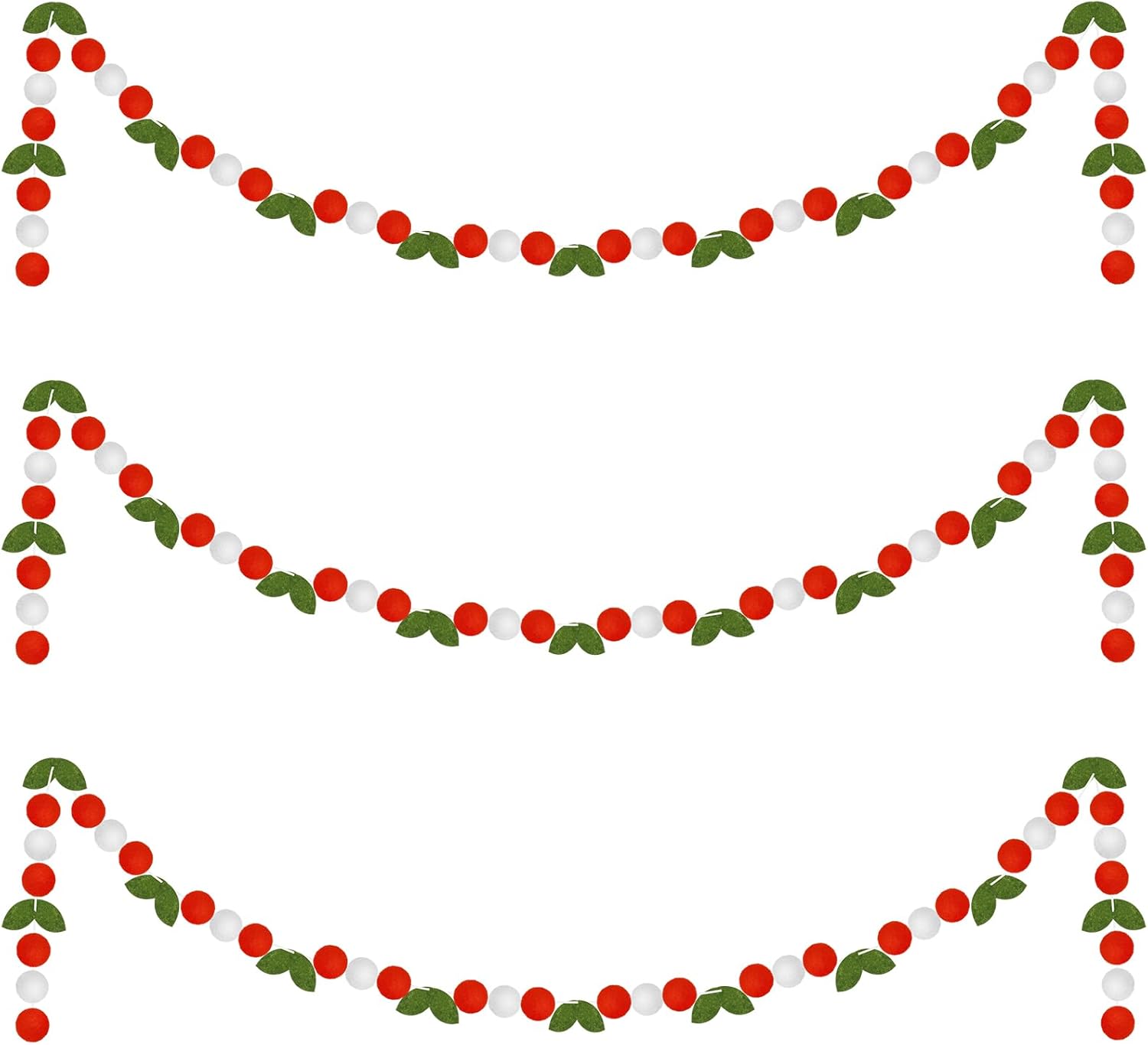 Christmas Pom Pom Garland Decorations: you will receive 3 pieces of Christmas pom pom garland decorations, each has 36 balls and 11 leaves, with bright colors and delicate appearance, which can satisfy your different decoration demands and can match well with your home decor, the quantity is also sufficient for you to use and replace in daily life There may be errors in manual splicingSoft and Safe Material: the Christmas ball garland is made of quality cotton thread and wool material with fine workmanship, lightweight and sturdy, soft and comfortable to touch, not easy to break or deform, and the distance between the balls is adjustable, so you can move them to where you like