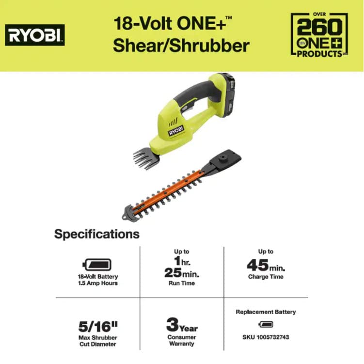 RYOBI ONE+ 18-Volt Lithium-Ion Cordless Grass Shear and Shrubber Trimmer - 1.3 Ah Battery and Charger Included