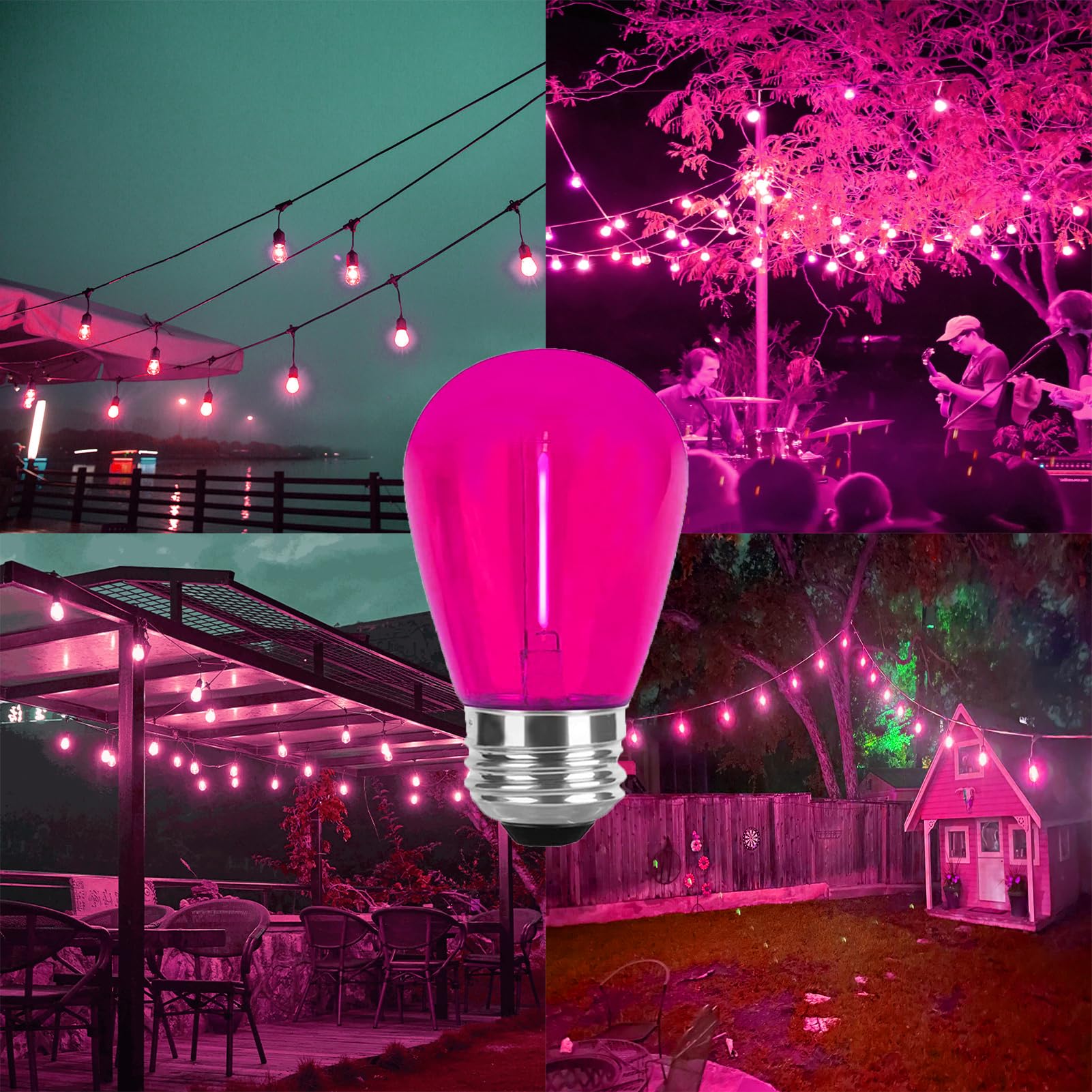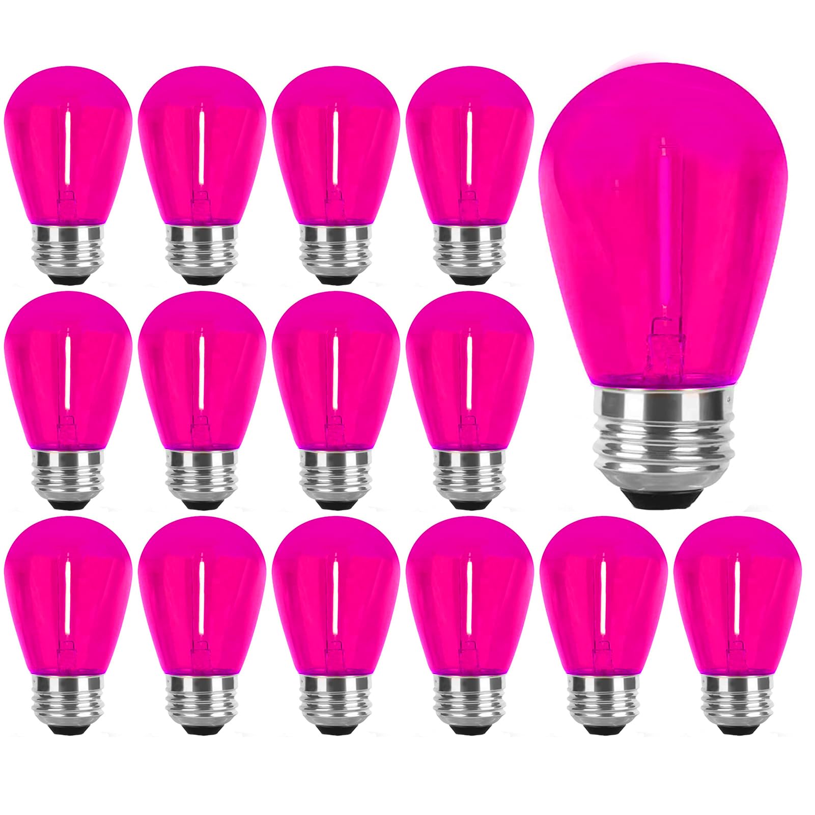 S14 Pink LED Bulb 1W Shatterproof Pink Replacement Light Bulb E26 Base LED Filament Edison Pink Colored Lights S14 Waterproof Outdoor String Replacement Bulbs for Home Yard Patio Wedding,15 Pack