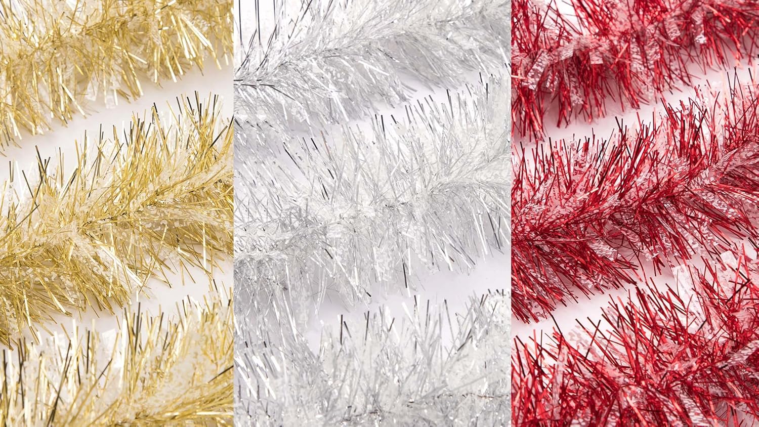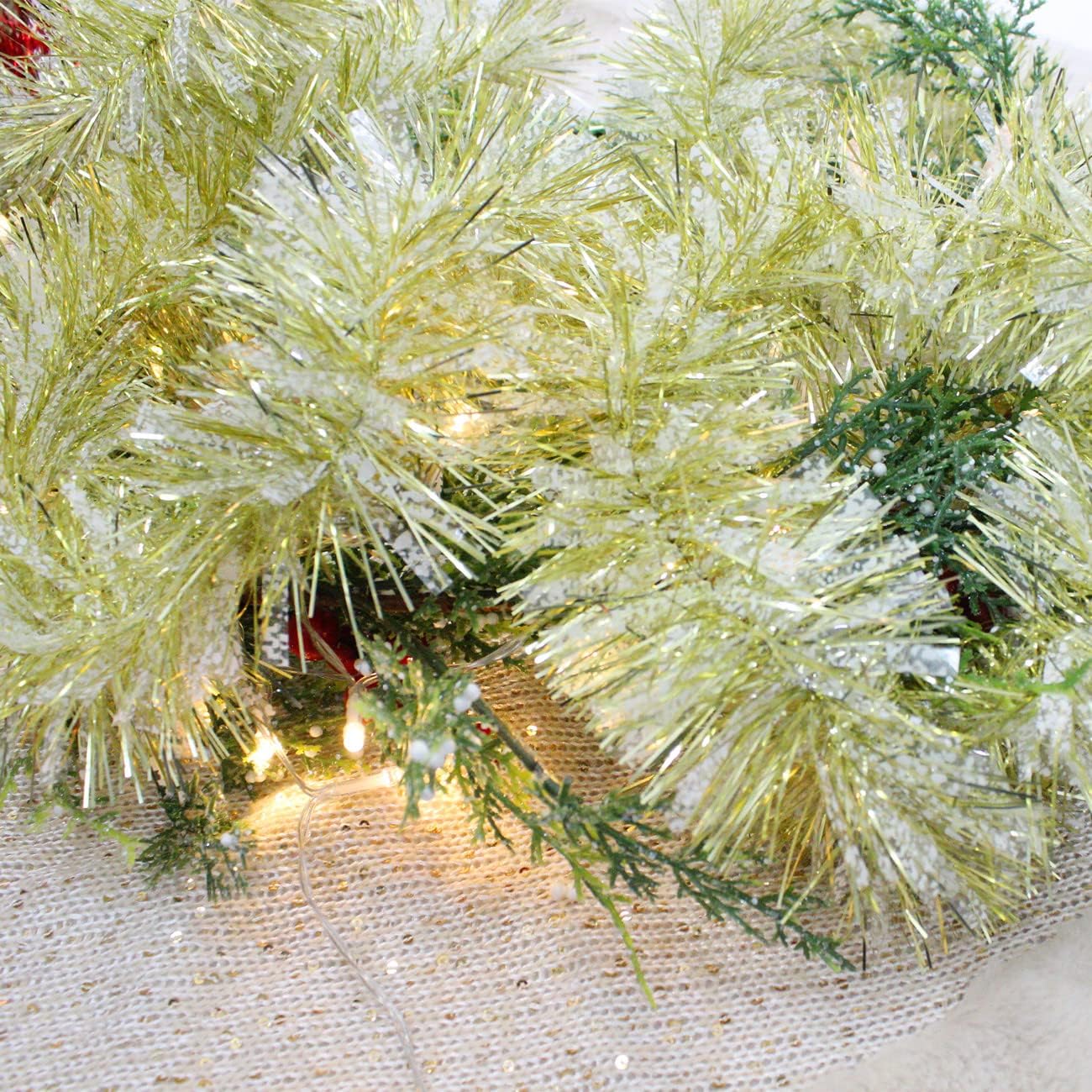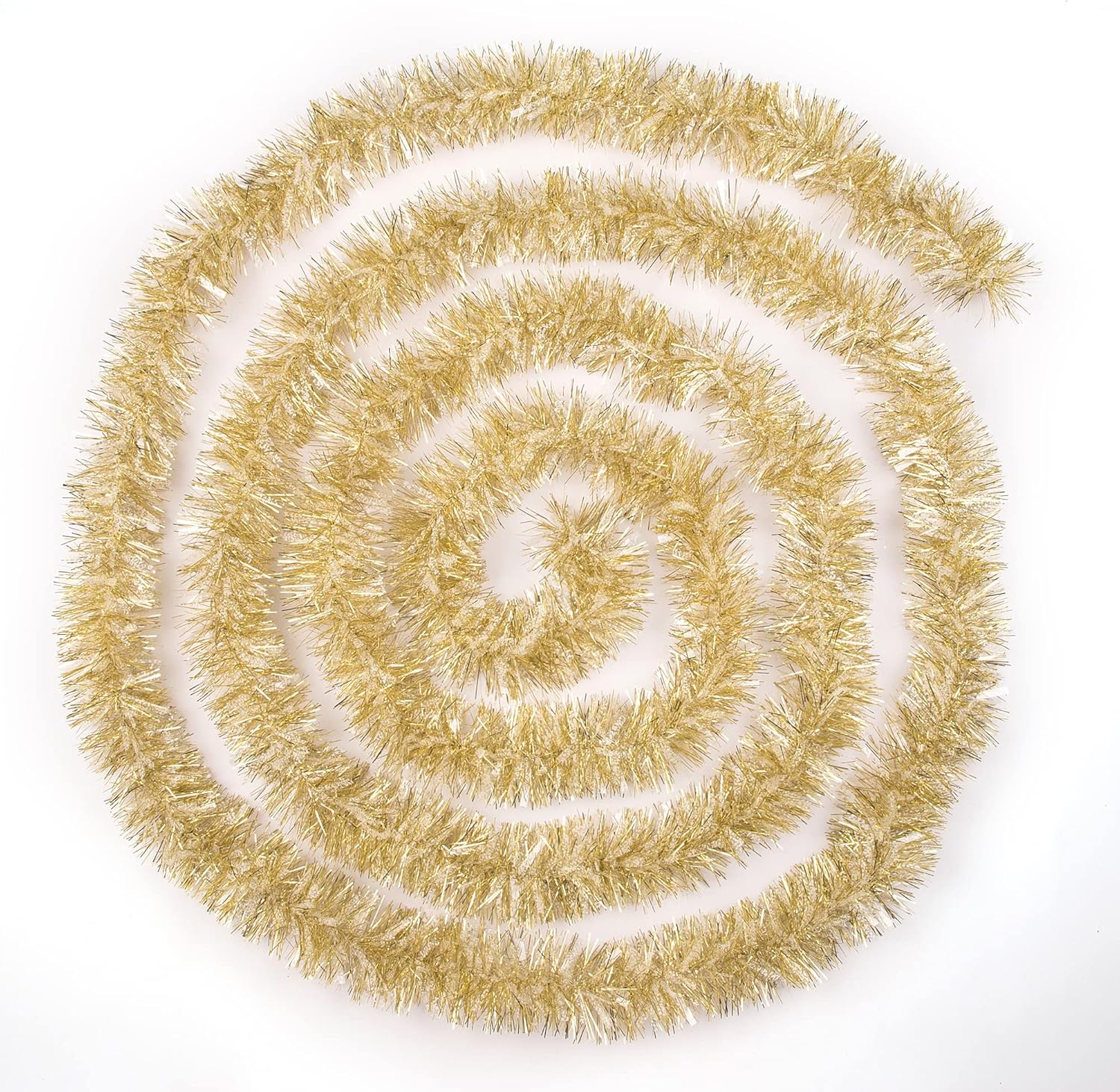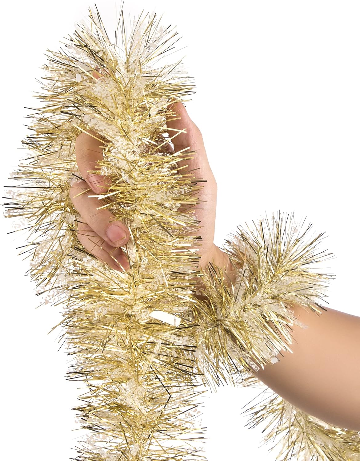 SANNO 32.8ft Christmas Tinsel Garland, ThickTinsel Xmas Party Metallic Tinsel Twist Garland Christmas Tree Ornaments Home Party Classic Hanging Decorations,Gold Snowflake spot