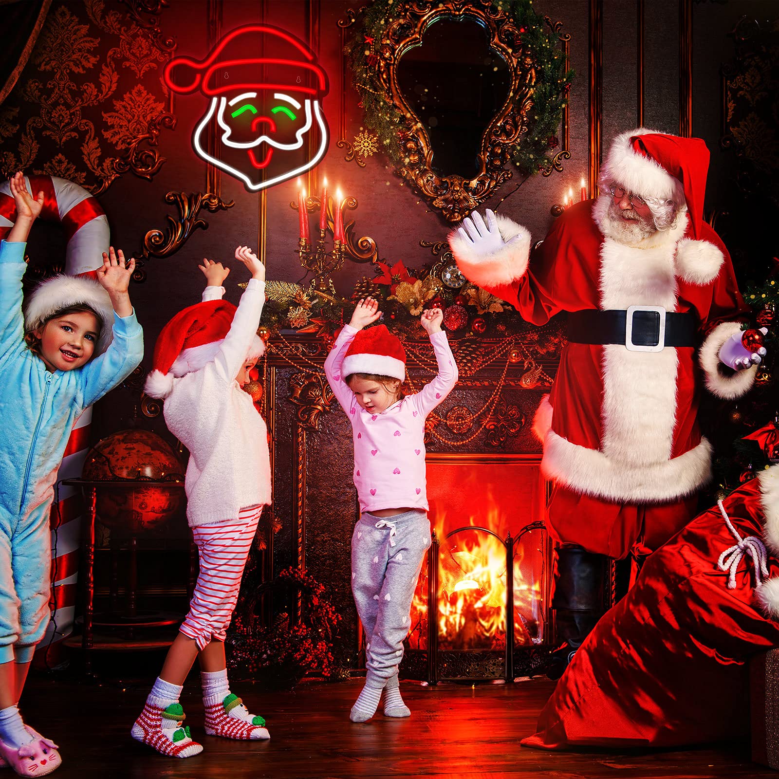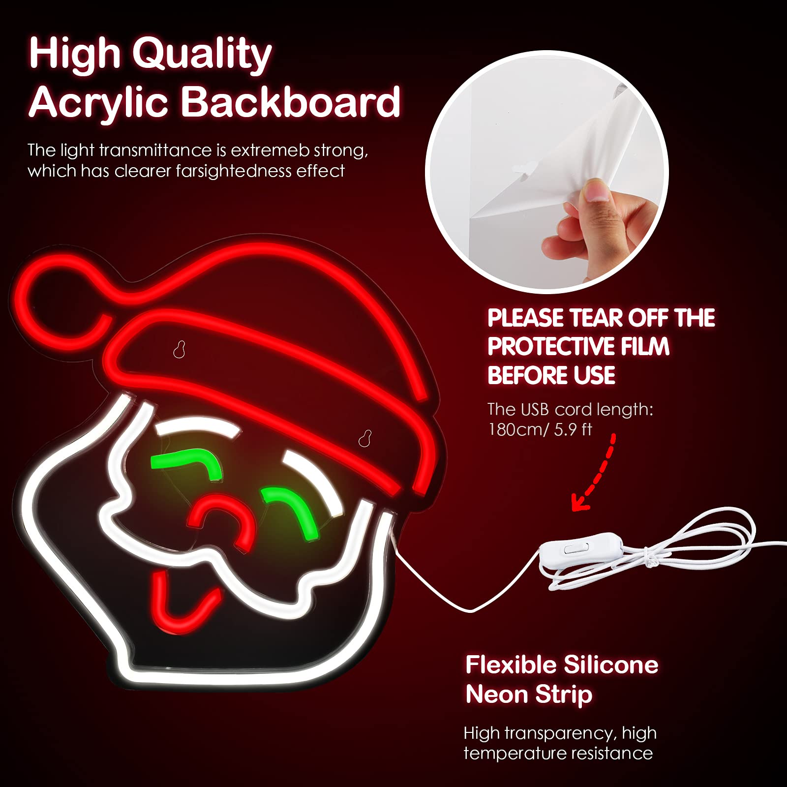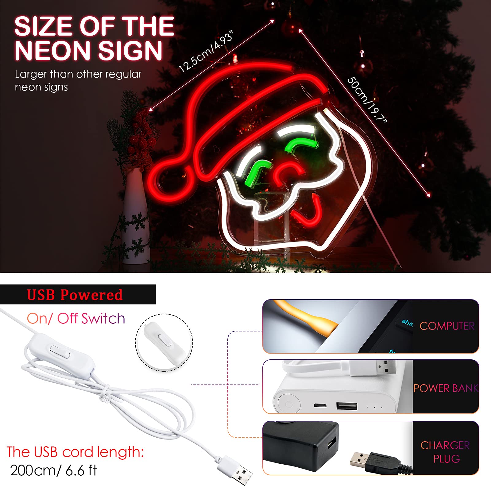 Warm decorations: Santa Claus neon light will create a romantic and cheerful space in your room with bright lights and vivid colors, just like the warmth and hope that Santa Claus brings to us, adding the festive atmosphere of the Christmas Proper size: the LED neon light measures about 13.8 x 13.8 inch, big enough to fit the large space And the USB cord is about 6.6 feet long, appropriate to reach wide range for charging, without limiting the placing position of the Christmas neon night light