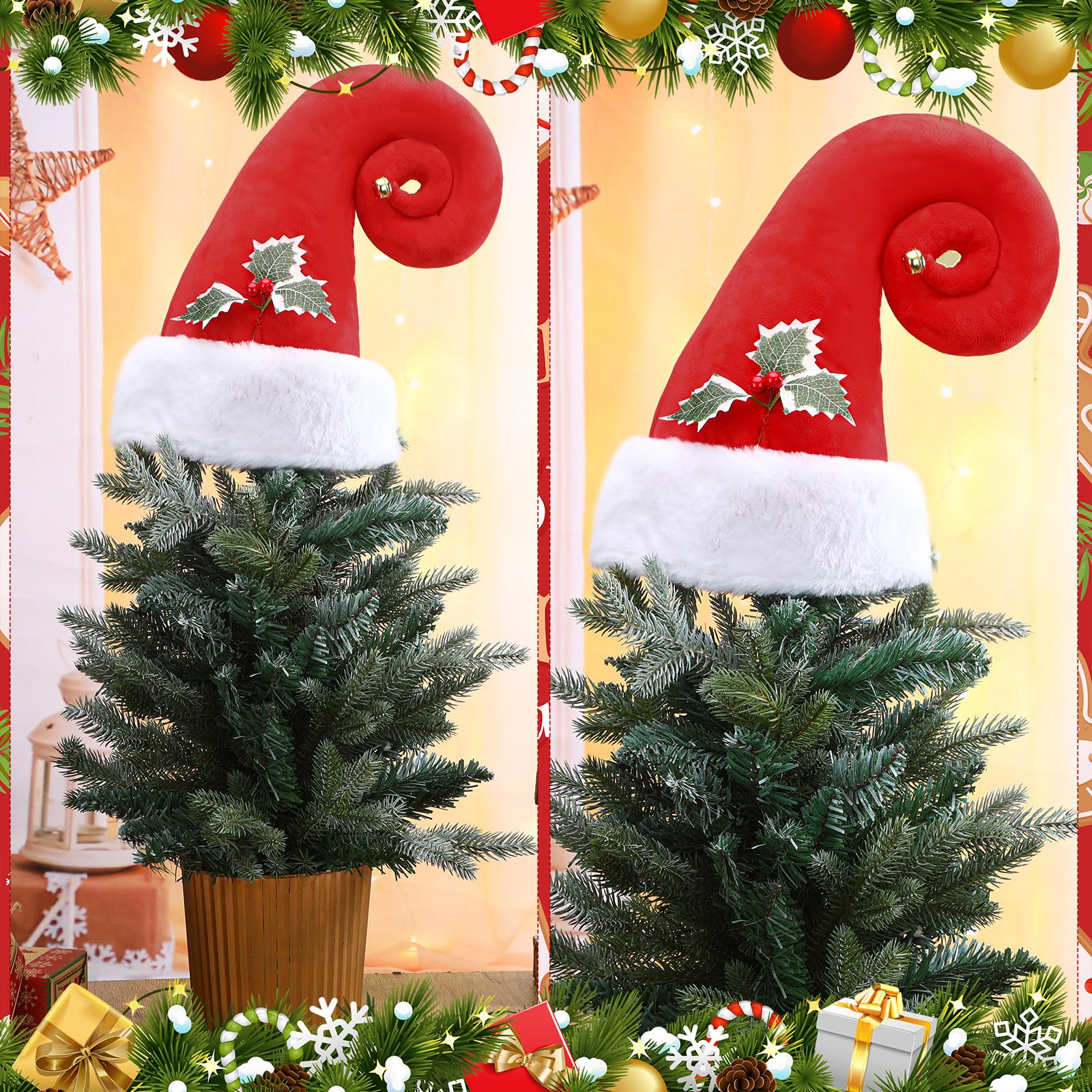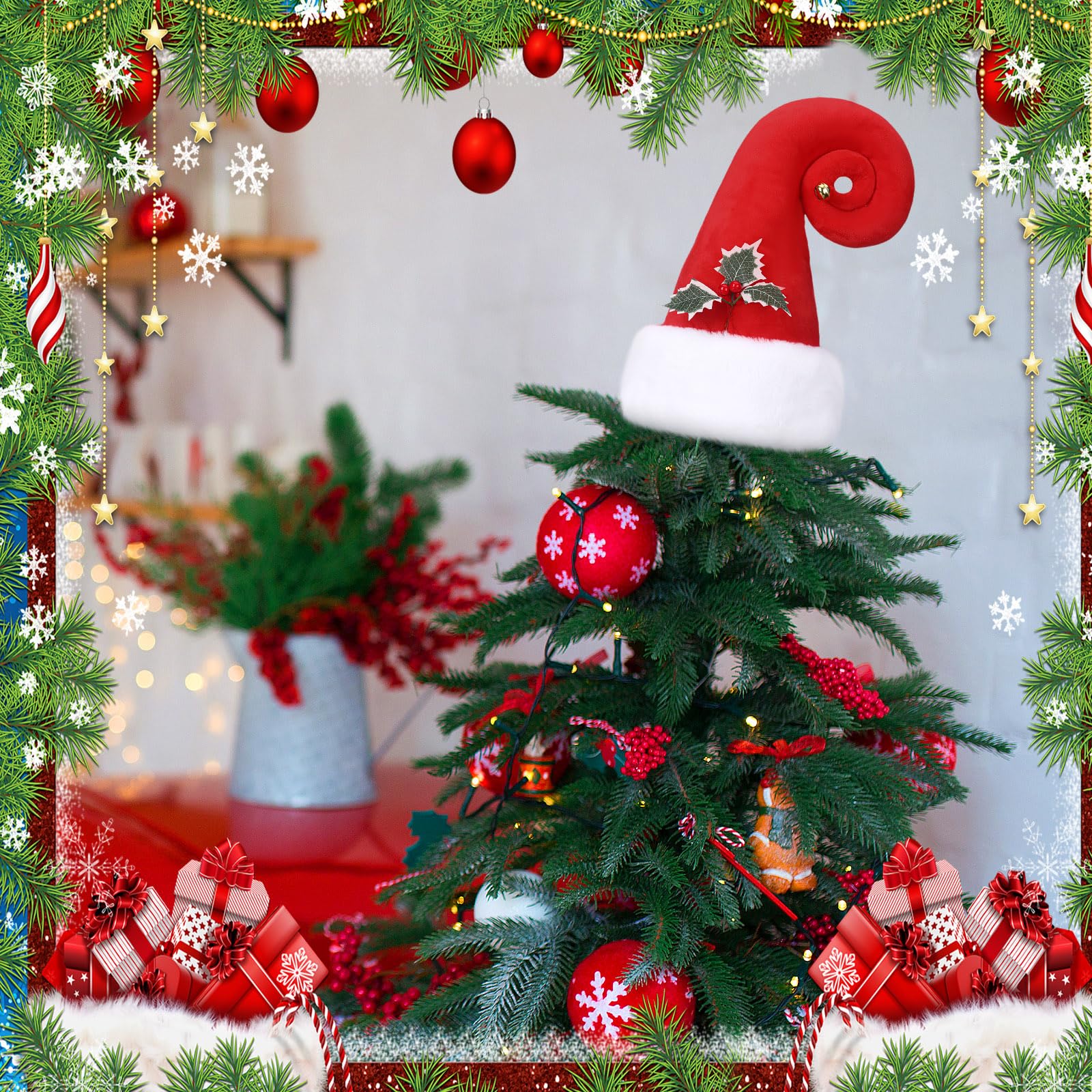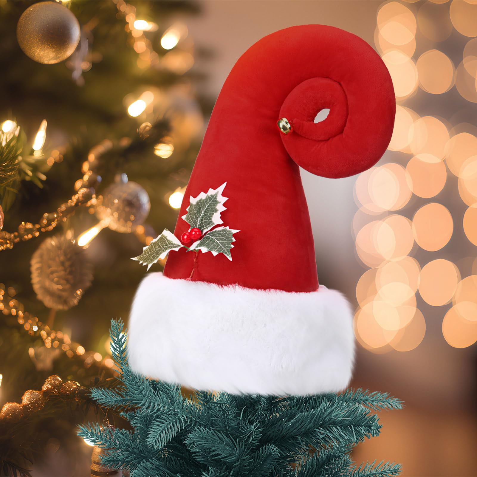 Santa Hat Christmas Tree Topper with Holly Decor Large Christmas Tree Topper 14.5 in Red Santa Claus Hat Christmas Tree Topper Santa Hat Tree Topper for Holiday Christmas Trees Decoration