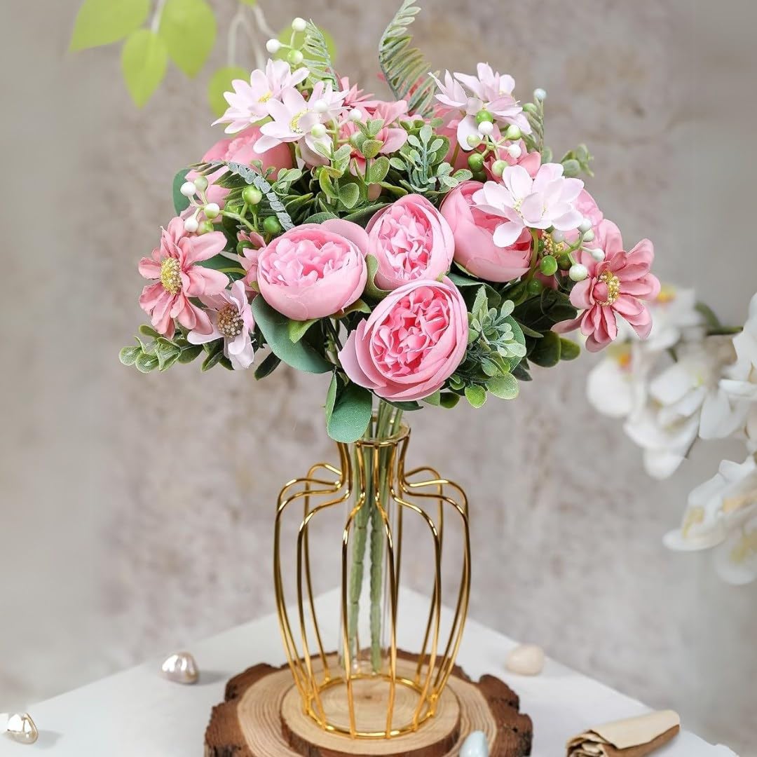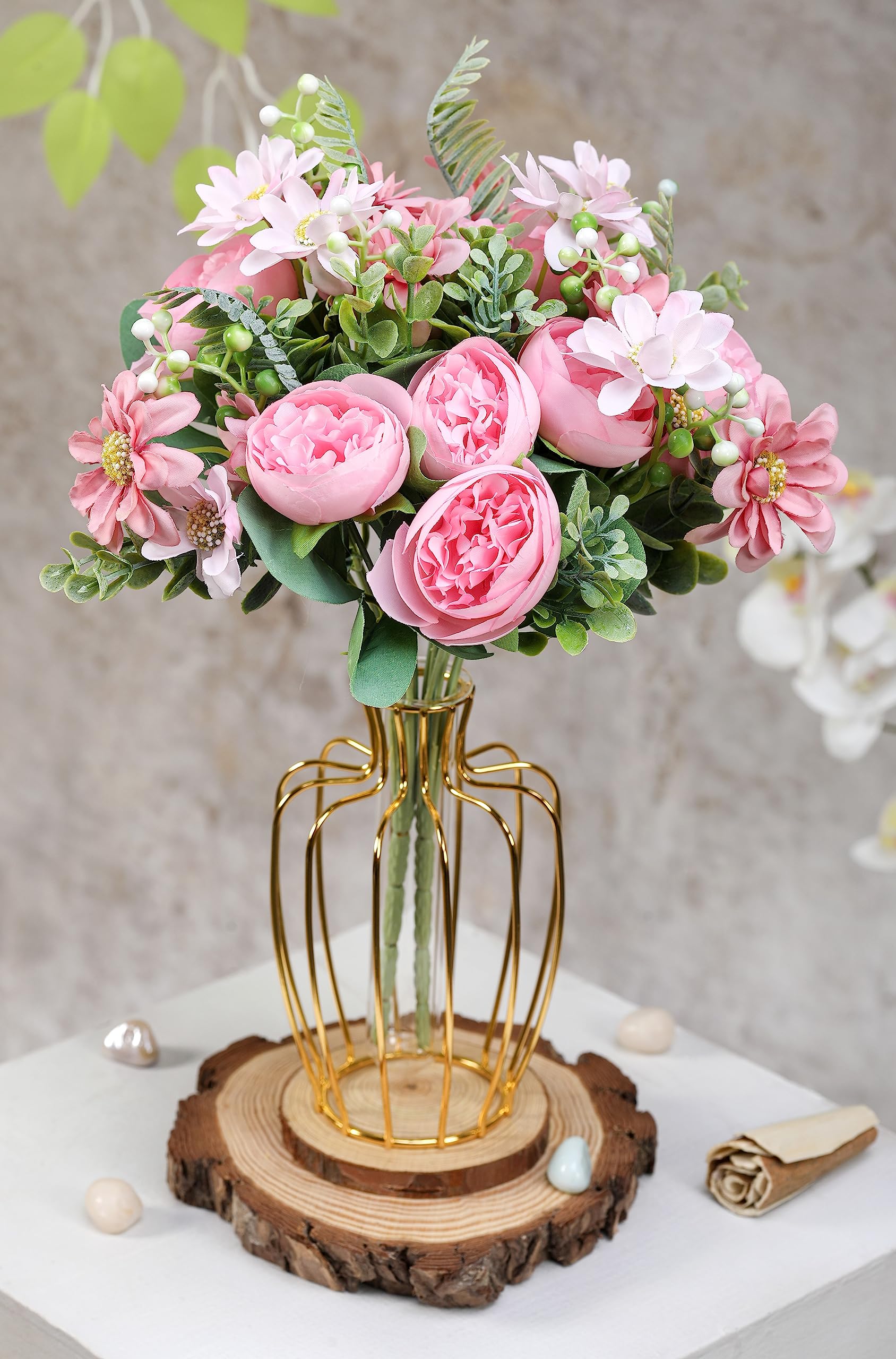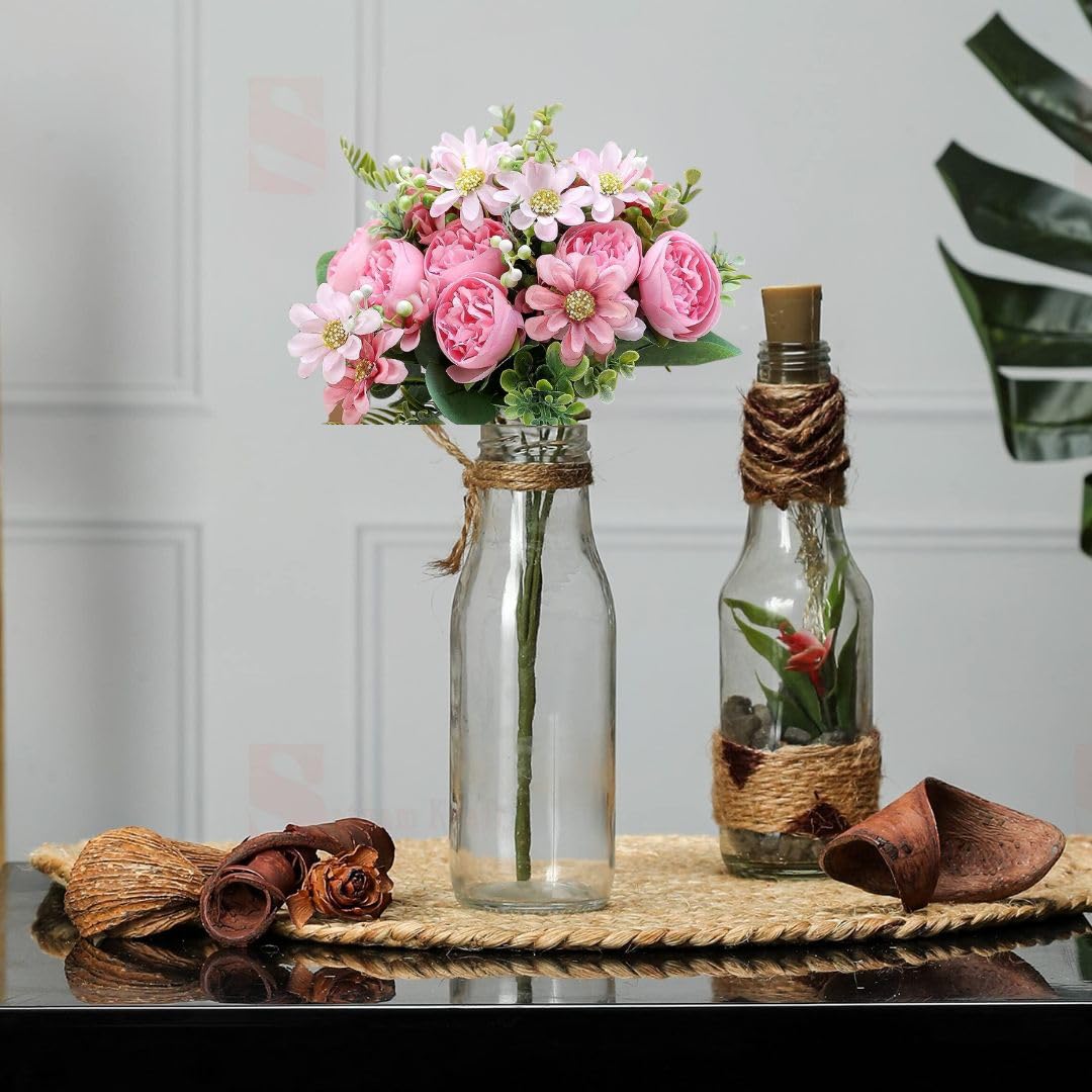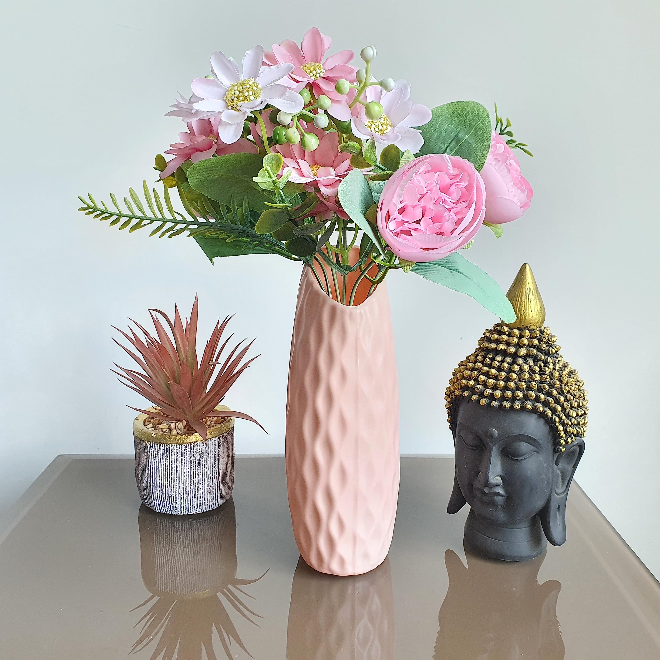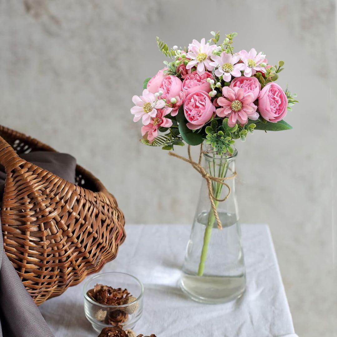SATYAM KRAFT 1 Pcs Artificial Peony Rose Flower Bouquet Bunch for Home Decor, Office, Bedroom, Balcony, Table Display, Wedding Decoration (Without Vase Pot) (Pink) Fabric