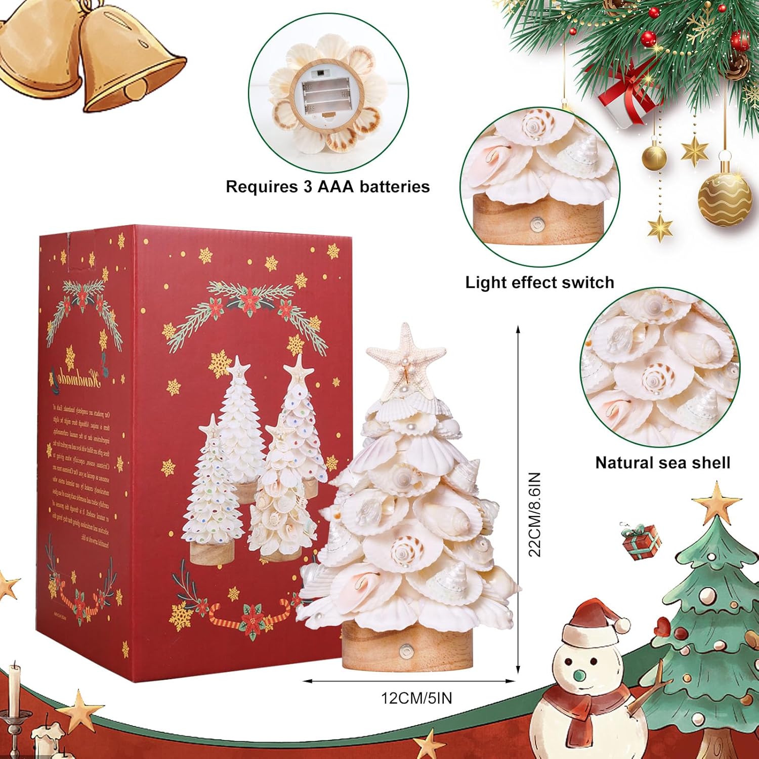 Sea Shells Christmas Tree Handmade Crafts Tabletop Shells Christmas Tree with LED Light, for Christmas & Beach Decoration, Party Birthday , Home Decor, Figurines Christmas Tree