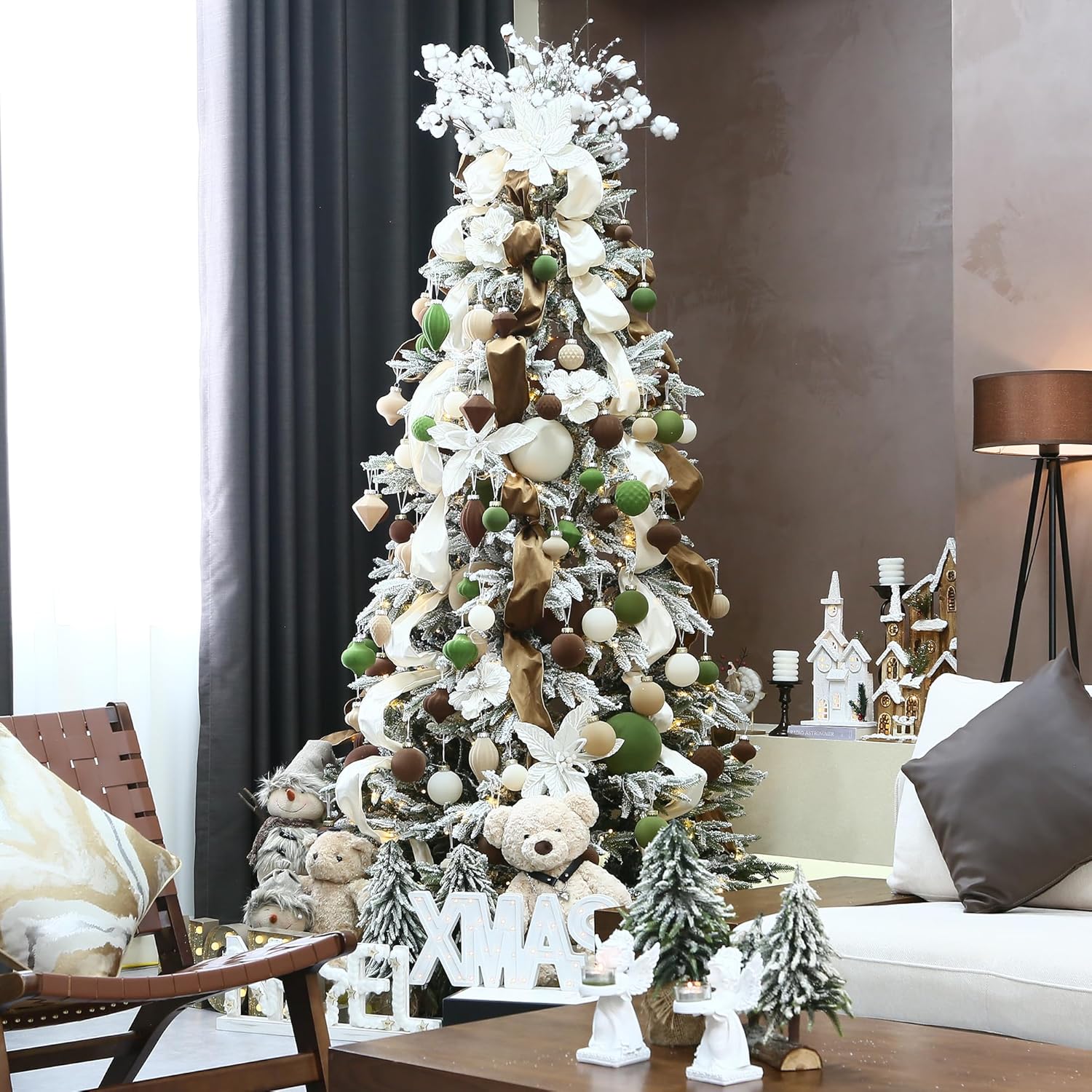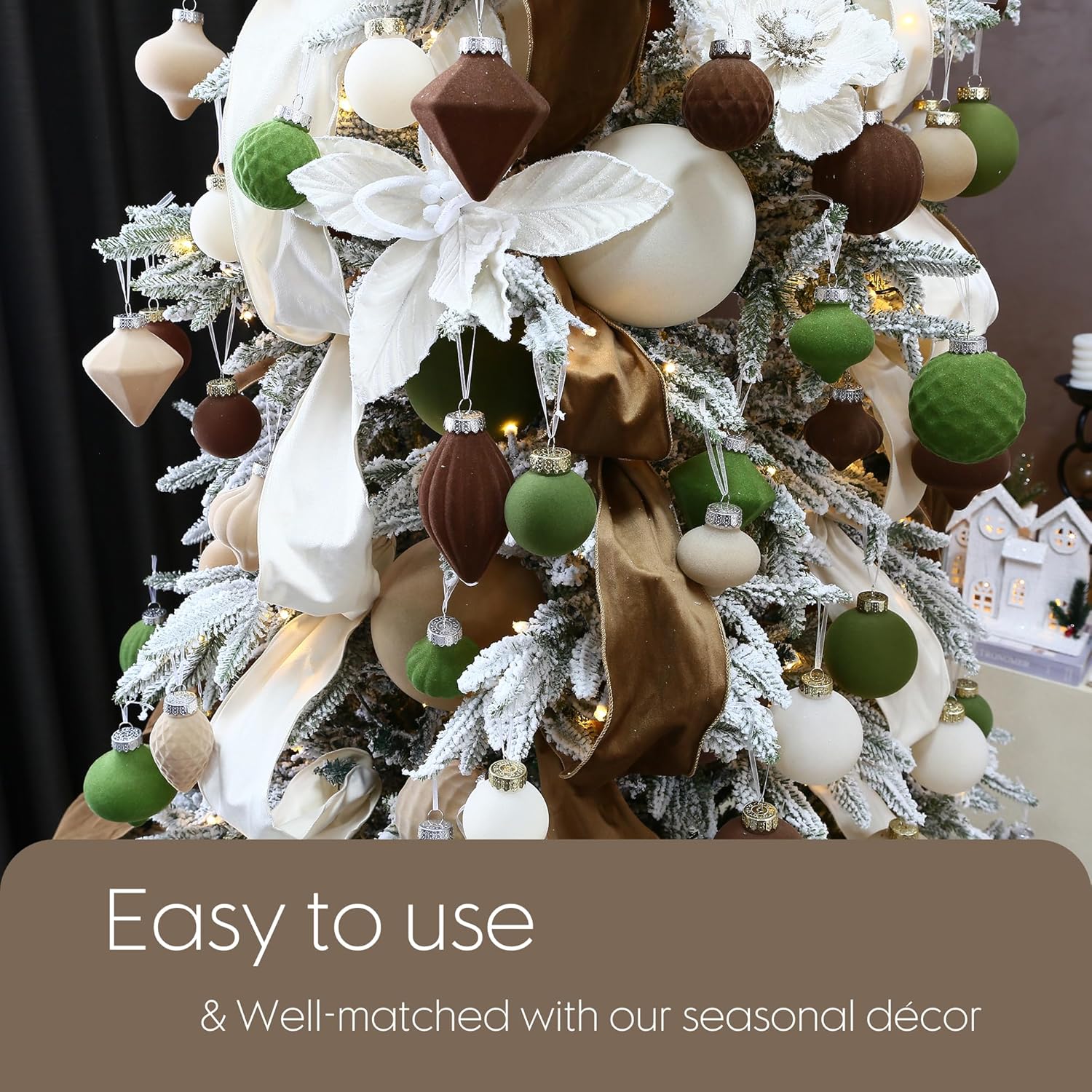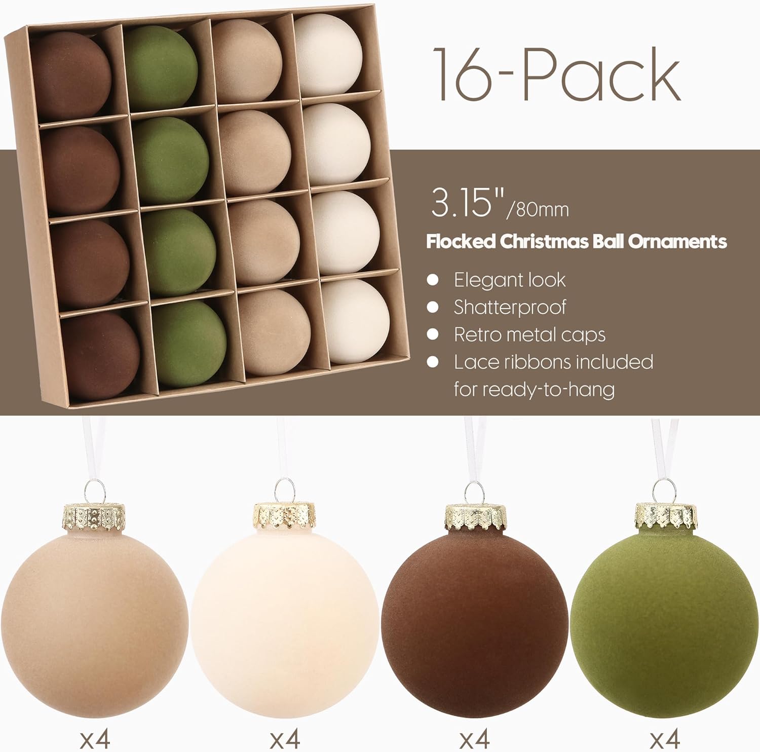 Sea Team 16-Pack Flocked Velvet Christmas Tree Ball Ornaments Set, Decorative Hanging Baubles, Shatterproof Plastic Decorations for Xmas Tree, Wreath, Garland, 80mm/3.15 Inches, Prairie Fall