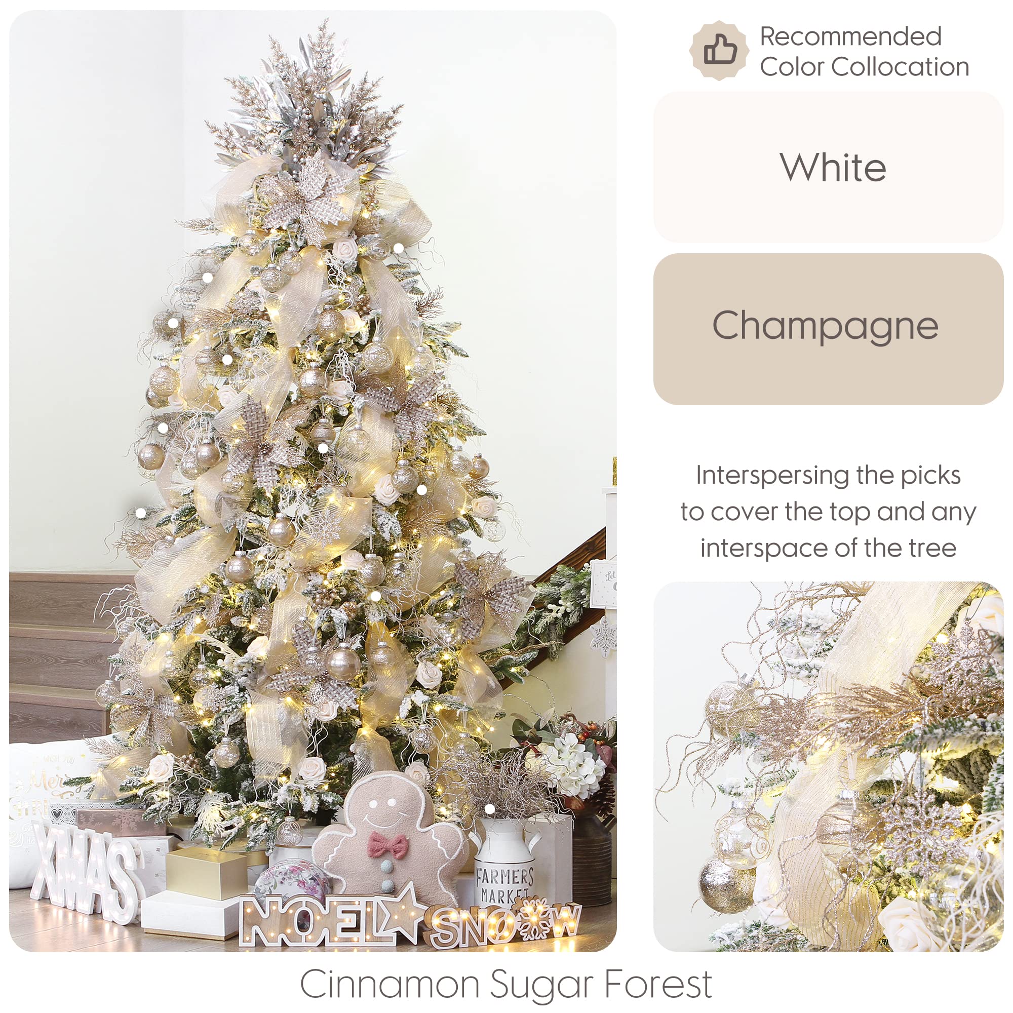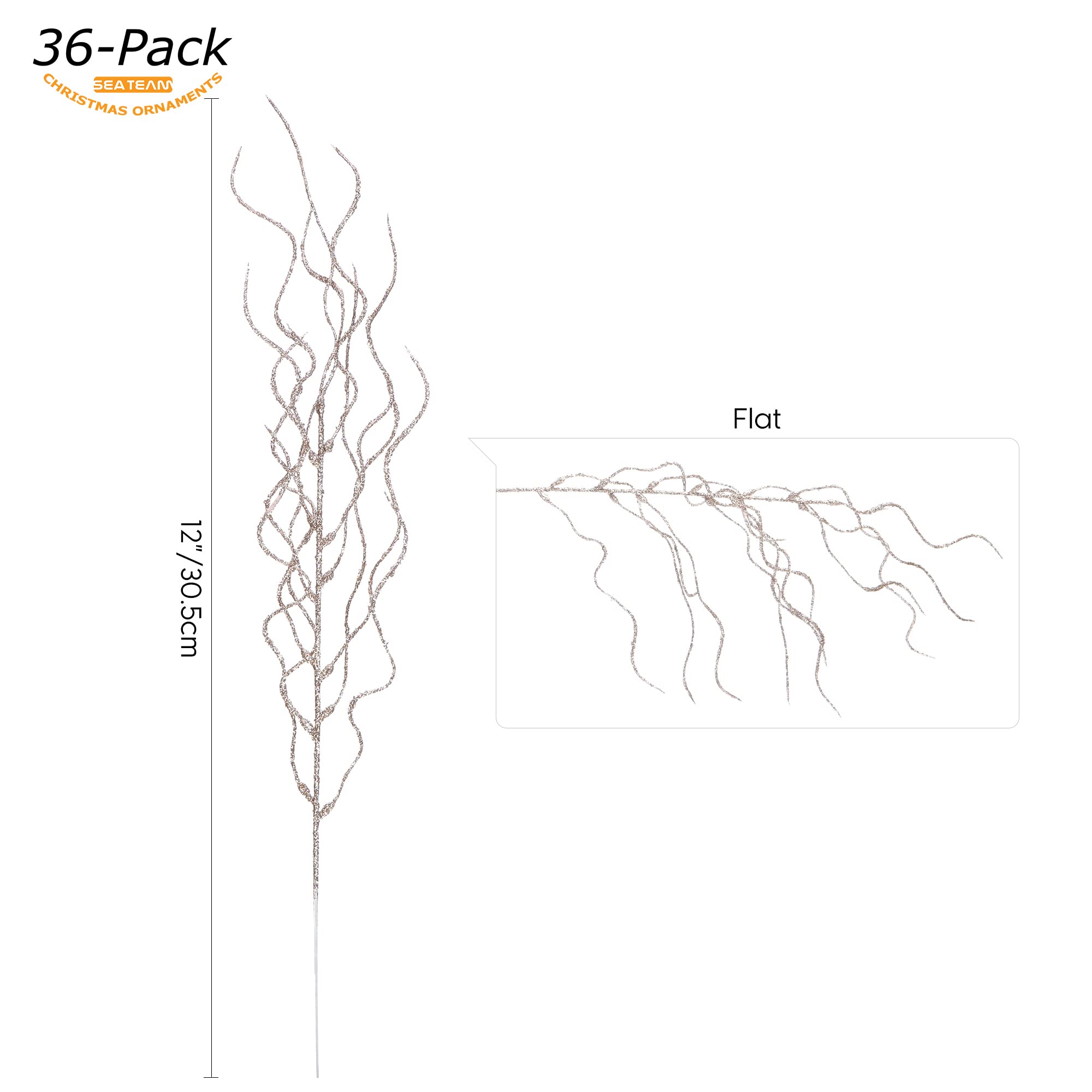 Sea Team 36-Pack Artificial Glitter Vine Twig Ornaments, Decorative Curly Beard Sticks, Glittery Stems, Picks, Branches for Christmas Tree, Small Vase, Holiday, Wedding, Party (12 Inches, Champagne)