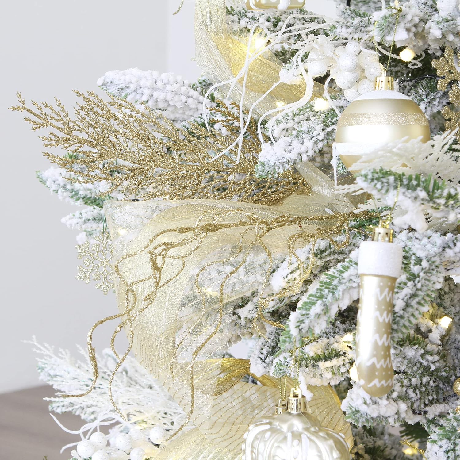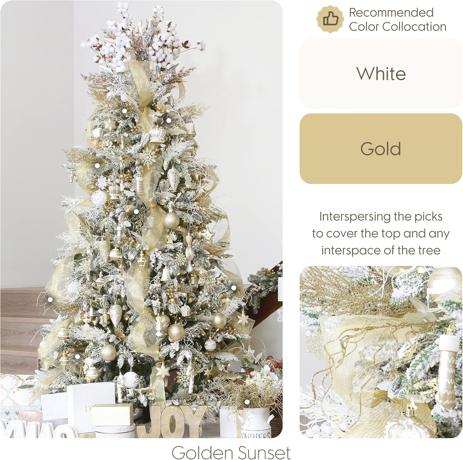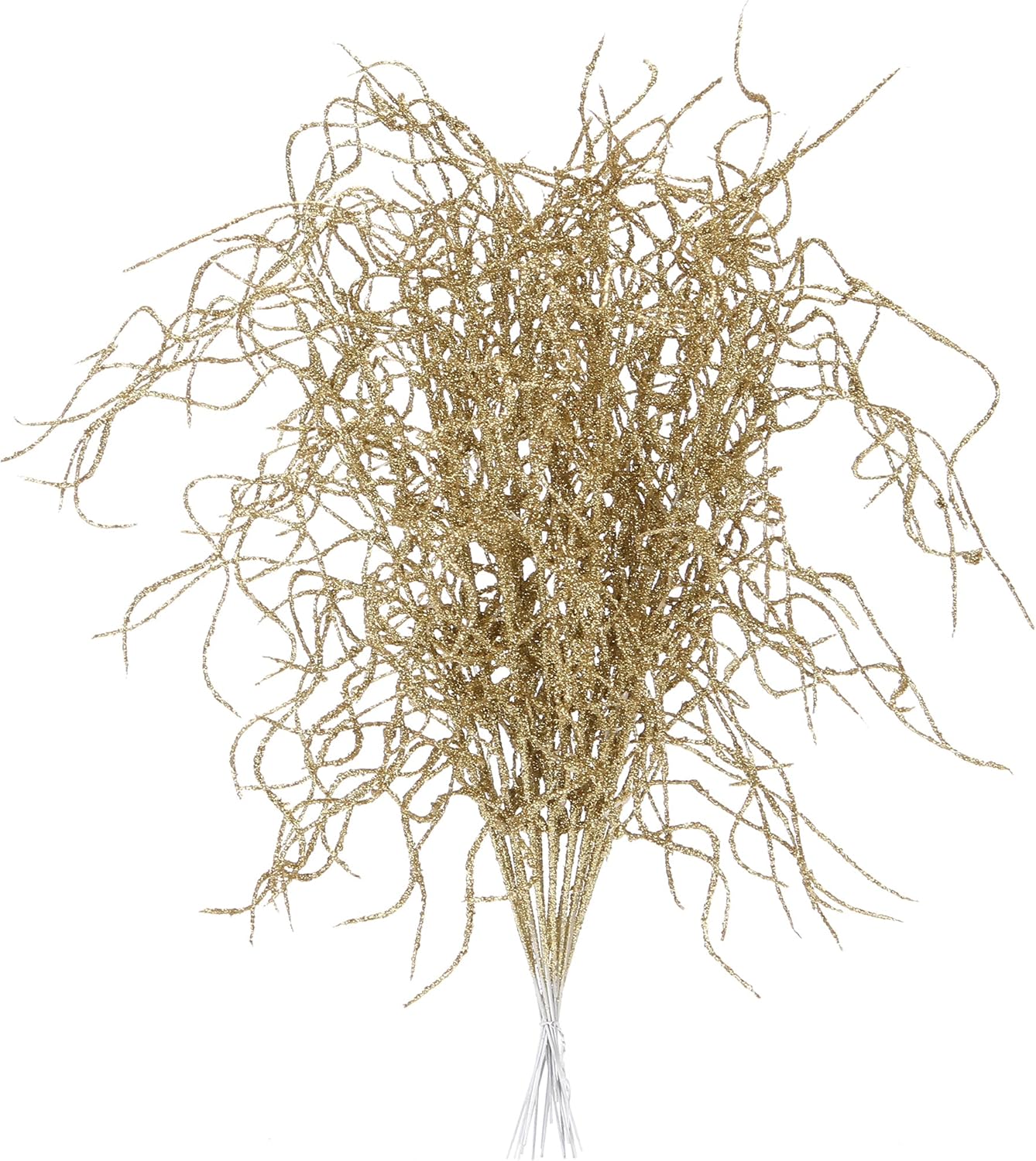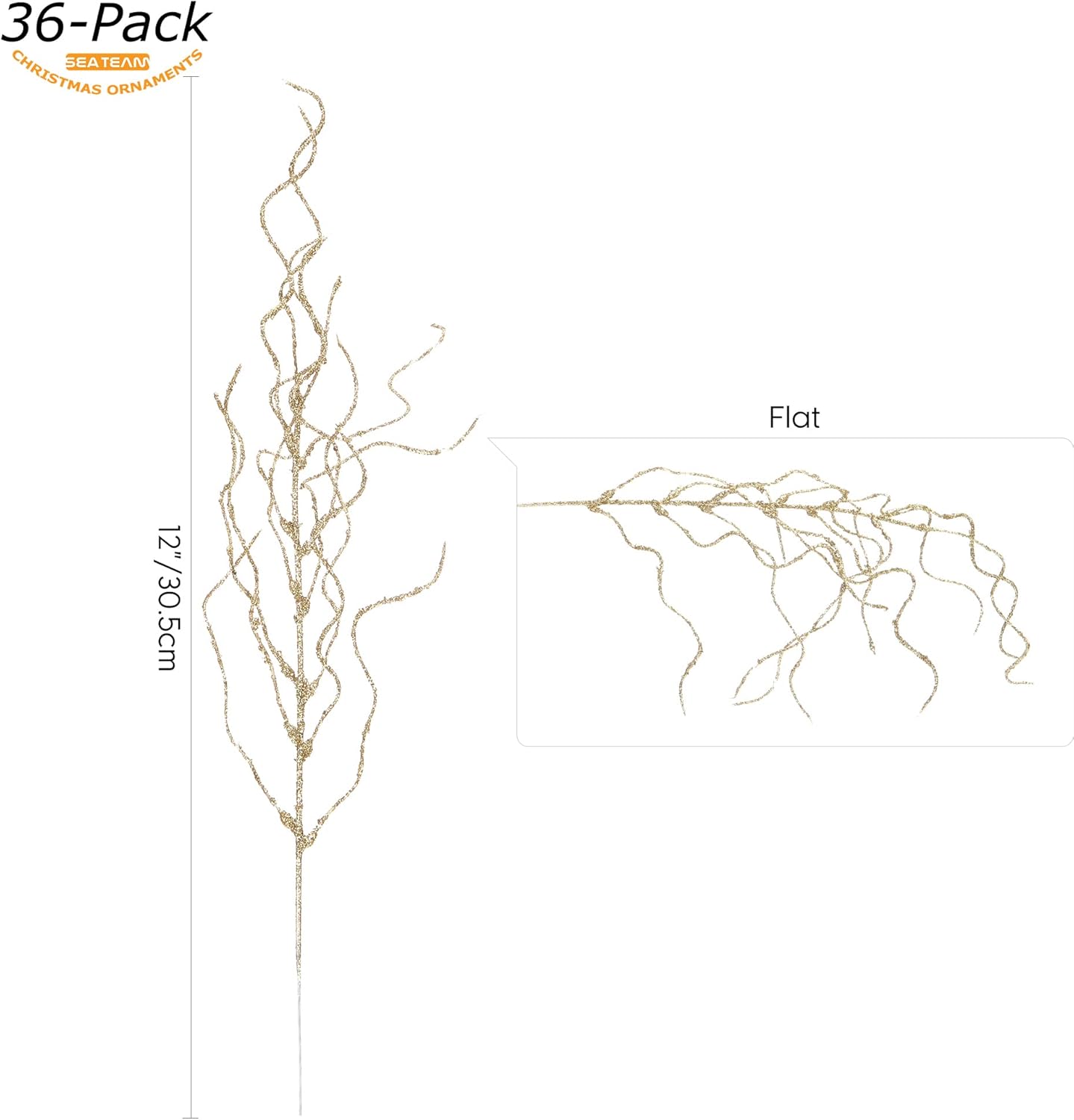Sea Team 36-Pack Artificial Glitter Vine Twig Ornaments, Decorative Curly Beard Sticks, Glittery Stems, Picks, Branches for Christmas Tree, Small Vase, Holiday, Wedding, Party (12 Inches, Gold)