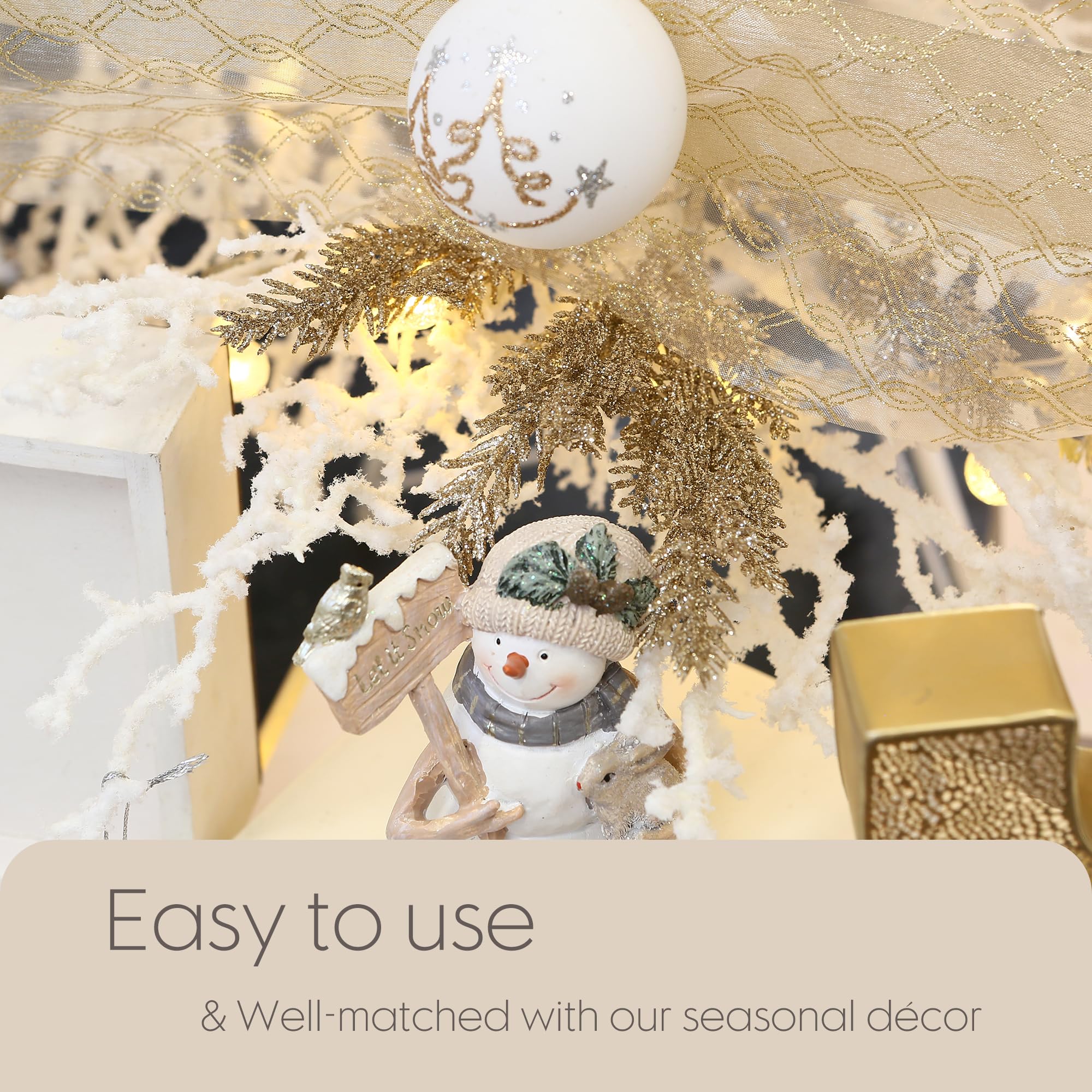 Sea Team 6-Pack Artificial Glitter Pine Twigs, Spruce Stem Ornaments, Decorative Sticks, Picks, Branches for Christmas Tree, Wreath, Vase Fillers for Centerpieces, Home Décor, Champagne