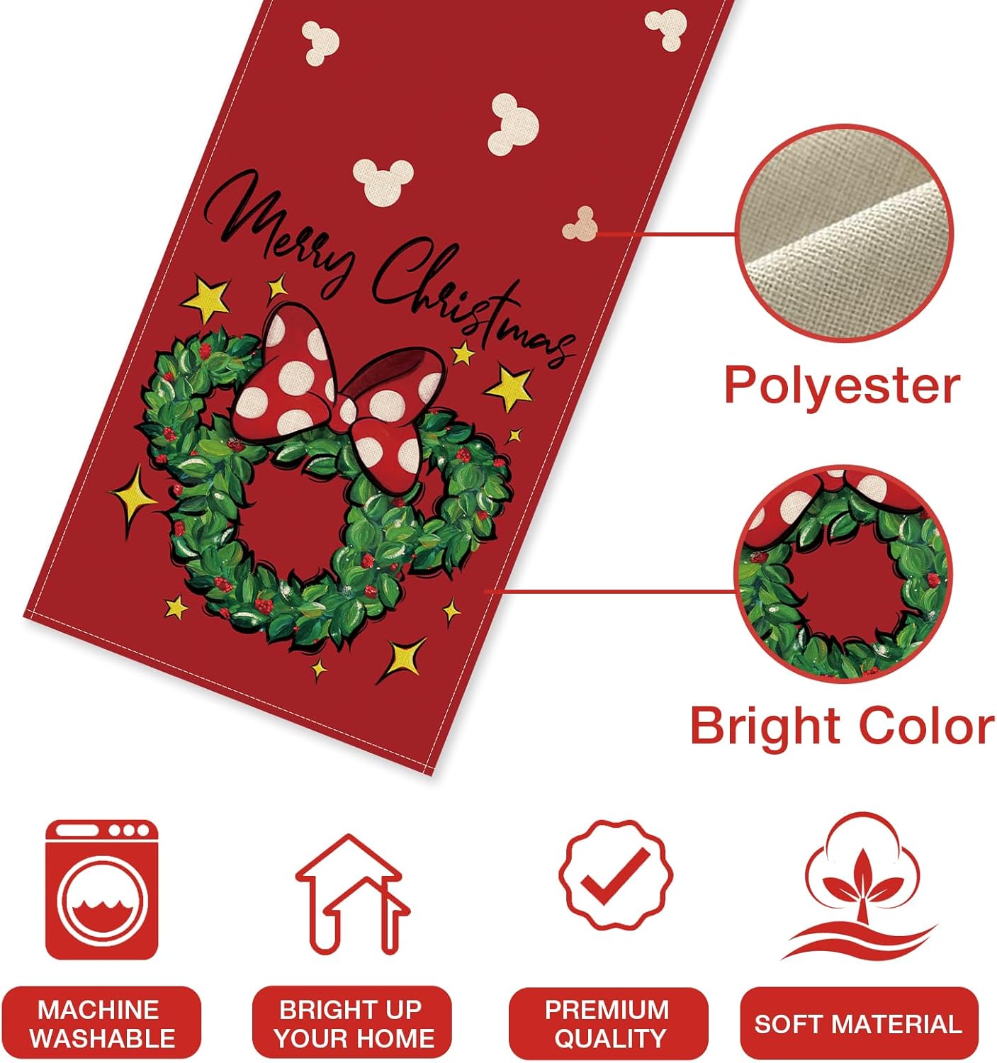 Seliem Merry Christmas Mouse Wreath Table Runner, Xmas Red Polka Dot Bow Stars Kitchen Dining Table Decor, Winter Holiday Farmhouse Home Decoration Indoor Outdoor Party Supply 13 x 72 Inches