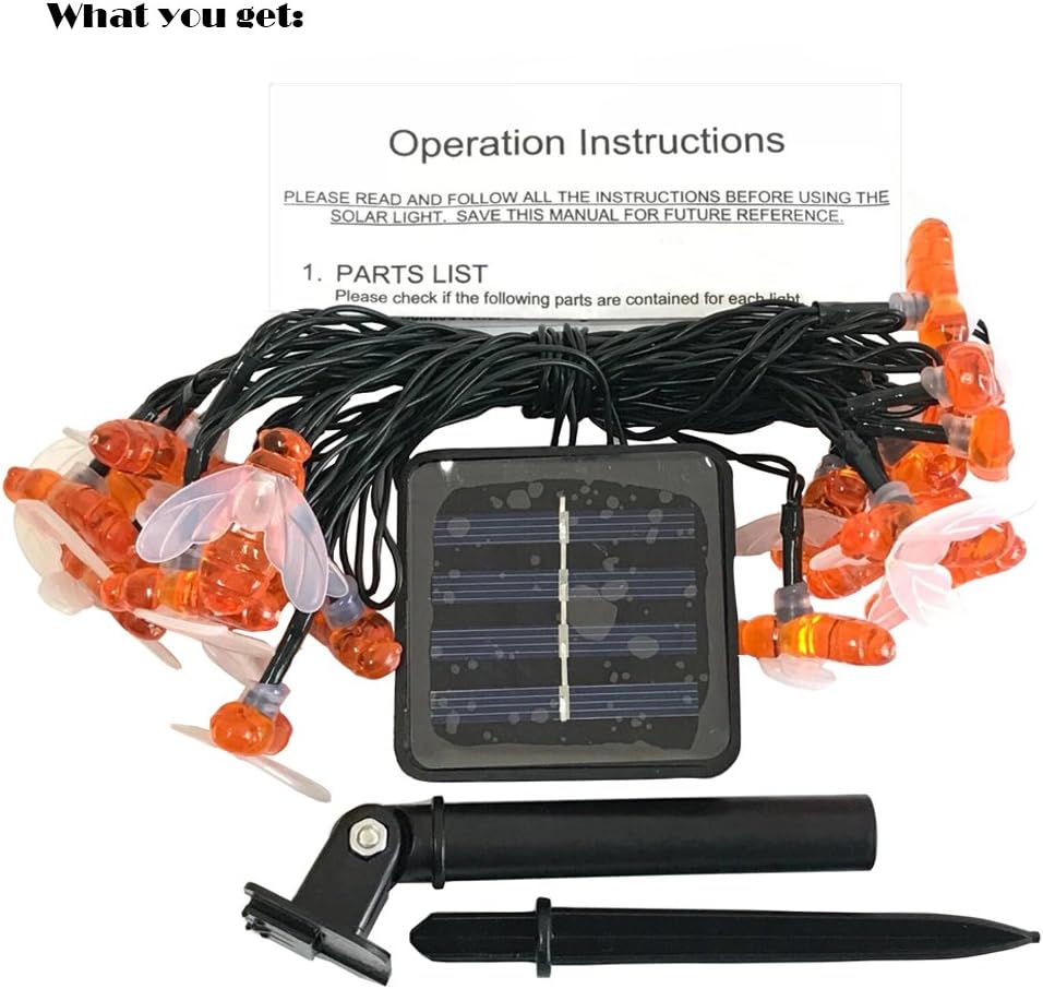 SEMILITS Solar String Lights 20LED Outdoor Waterproof Simulation Honey Bees Decor for Garden Xmas Decorations Warm White