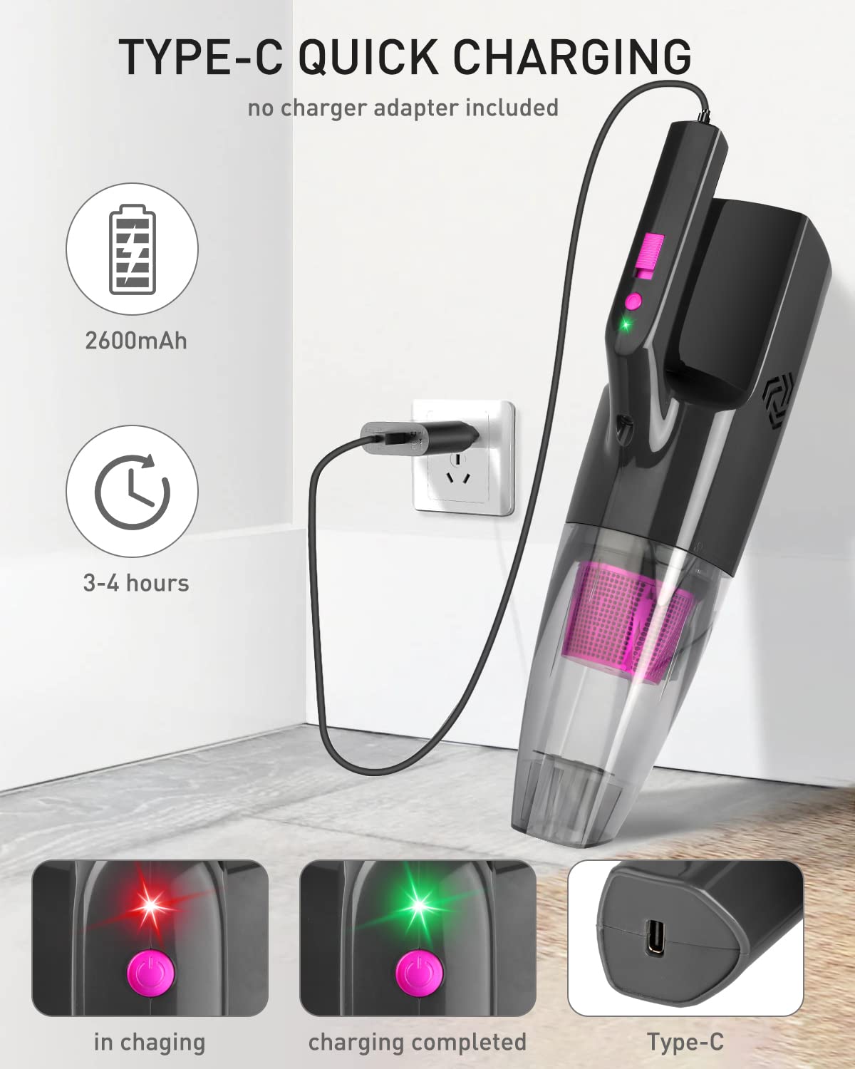 Sendowtek Handheld Vacuum Cordless For Car, Rechargeable Vacuum Hoover 9000Pa Batterypowered Hand Held Vacuuming Hoover Portable Cleaner Car Vac For Home Pet Office