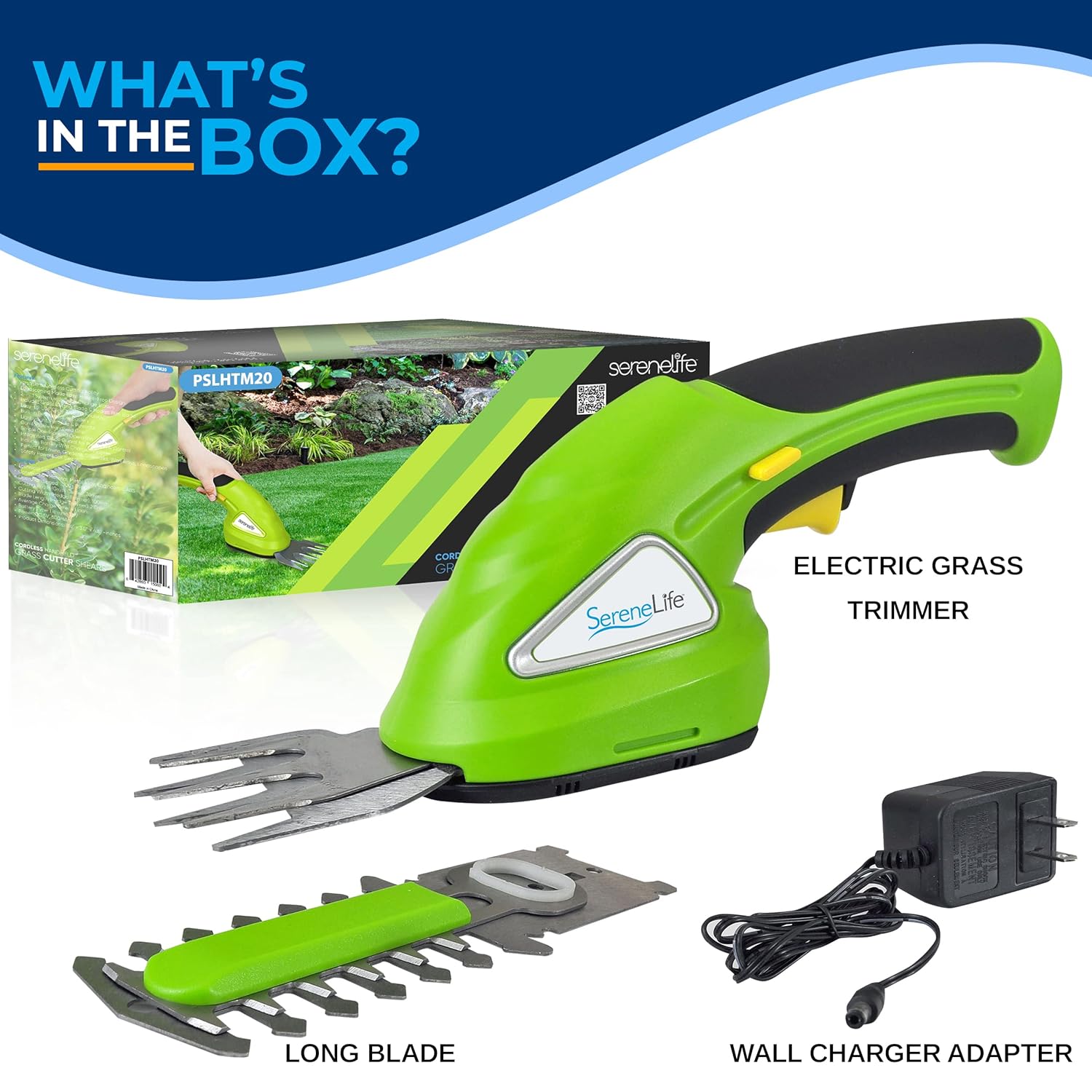 SereneLife Battery Grass Cutter, Grass Clippers Cordless, Trimmer Cutter, Handheld Trimmer, Grass Shear Electric, Perfect For Leaves & Debris, Rechargeable Battery, Charge Time 4 Hrs, 3.6V (PSLHTM20)
