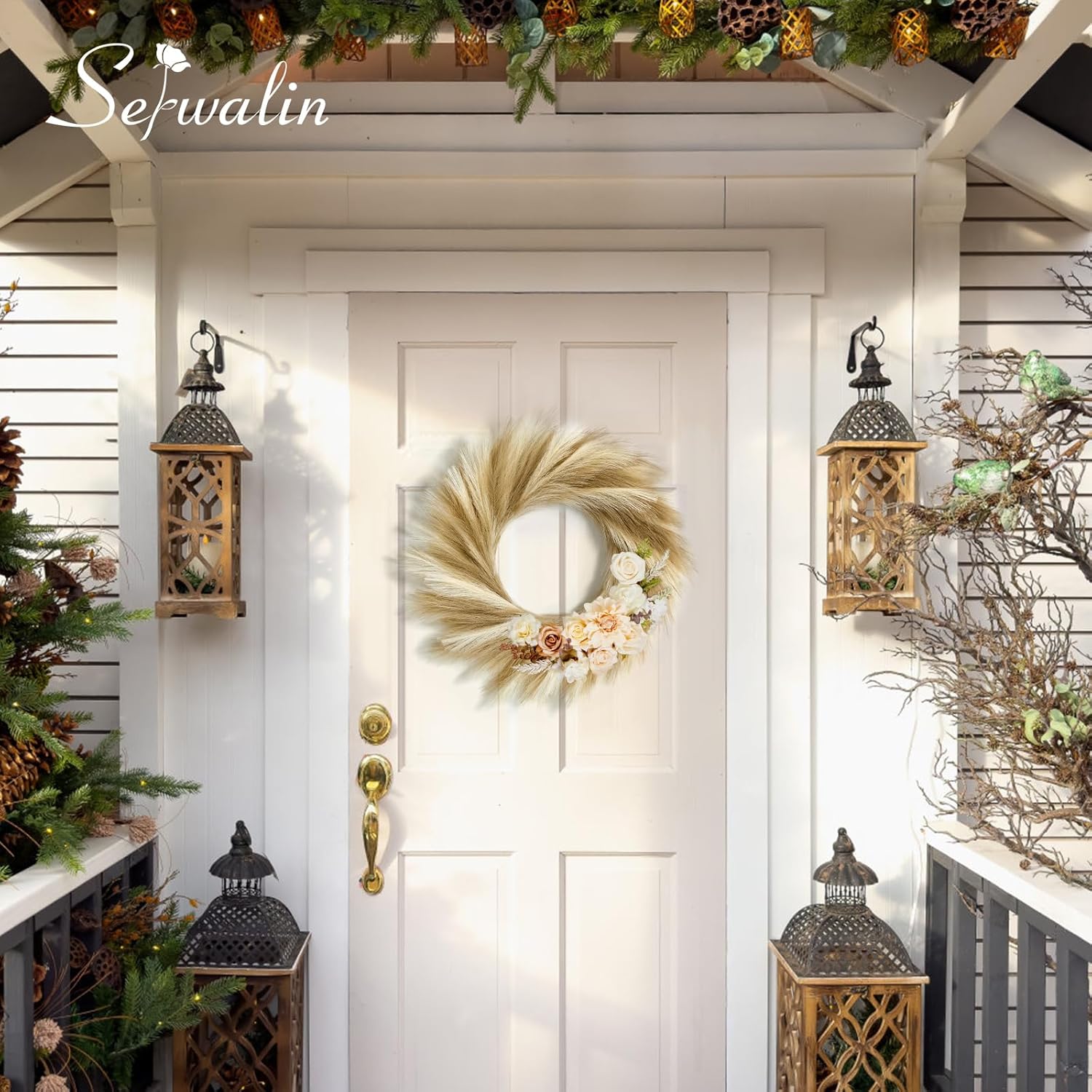 Serwalin 24” Pampas Grass Wreaths, Ivory and Taupe Pampas Wreaths Home Decor, Front Door Decor Pampas Feather Wreath for DIY Arrangement Farmhouse Beach Boho Table Centerpieces Bathroom Bedroom Decor