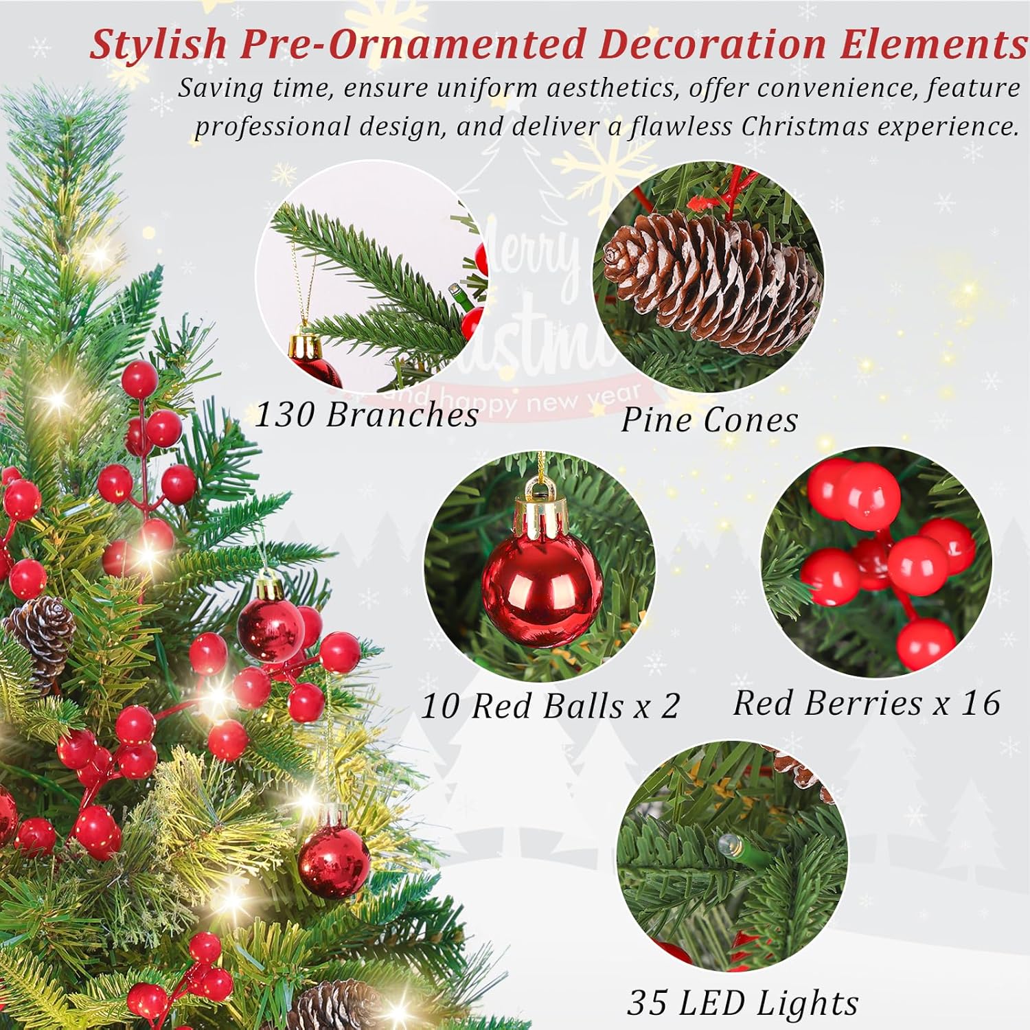 • Pre-Decorated Design & Rich Ornament: Compare to those similar product that only come with single tree that require customer to buy decorative ornaments, VerRon Xmas trees with pre-decorated classic pine cones and non-dropping berries, 130 vivid green artificial pine needle branches, we even include sparking hanging ball ornament in the package for providing the largest convenience and helping to save extra cost. It is such an cost-effective holiday decor Cost less but obtaining more