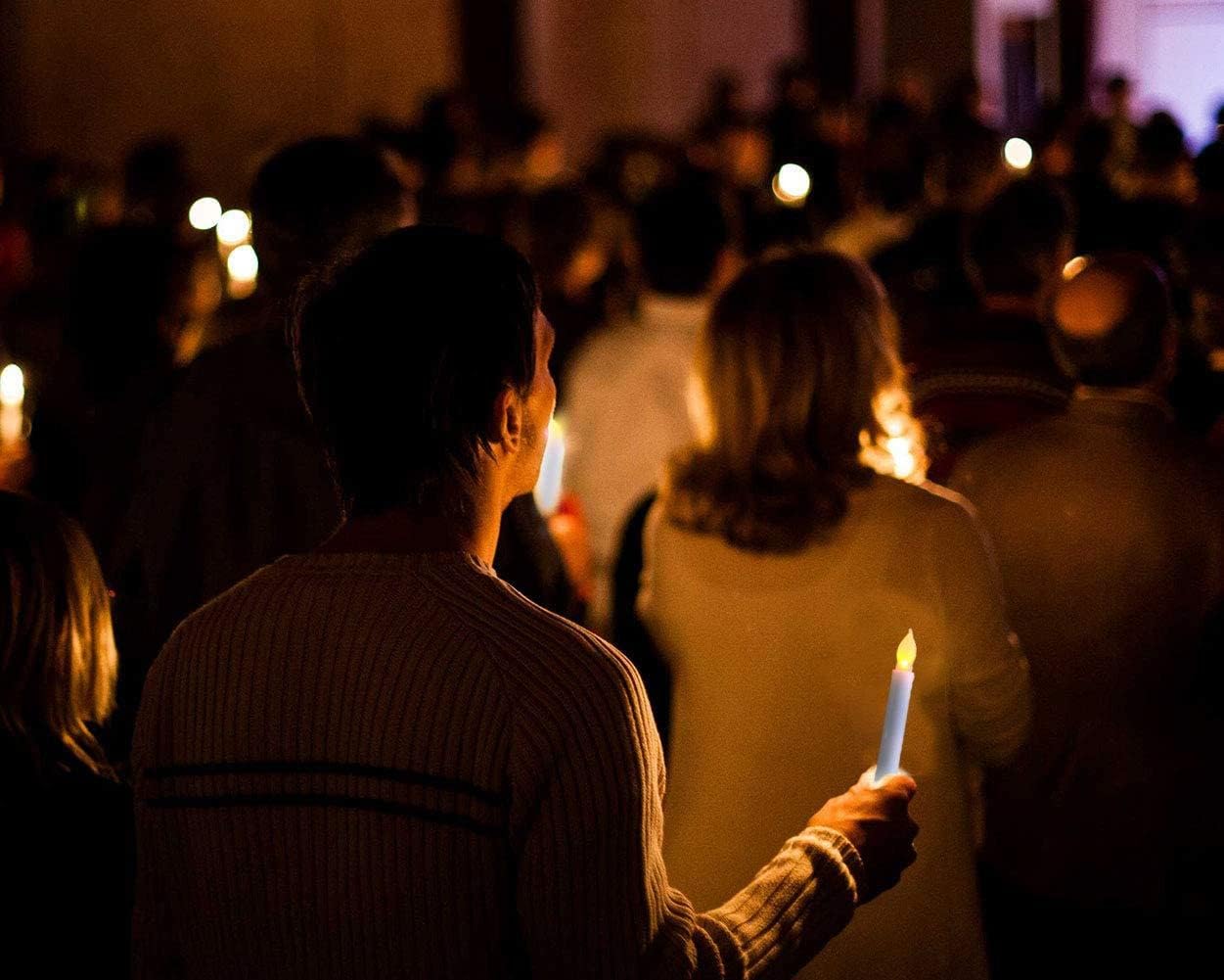 Set of 24 Flamelesss LED Taper Candles with Warm Yellow Flickering Flame Light, Battery Operated Floating Candles, Handheld Electric candlesticks for Fireplace Church Party Christmas