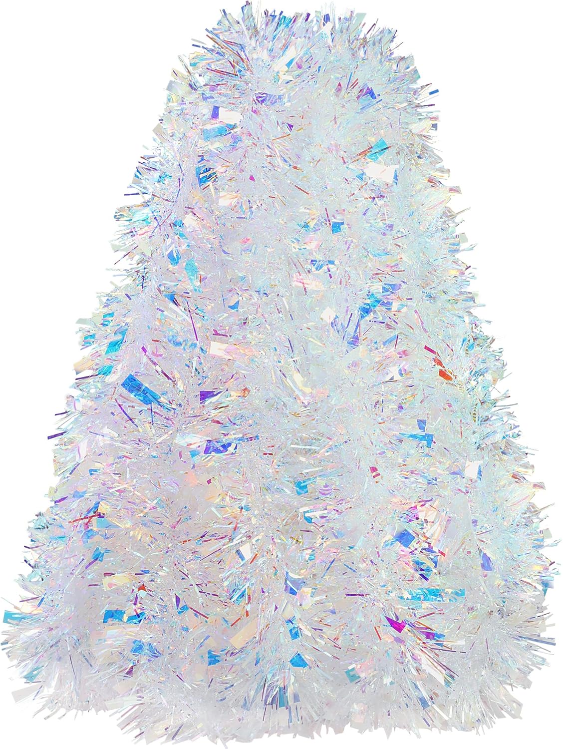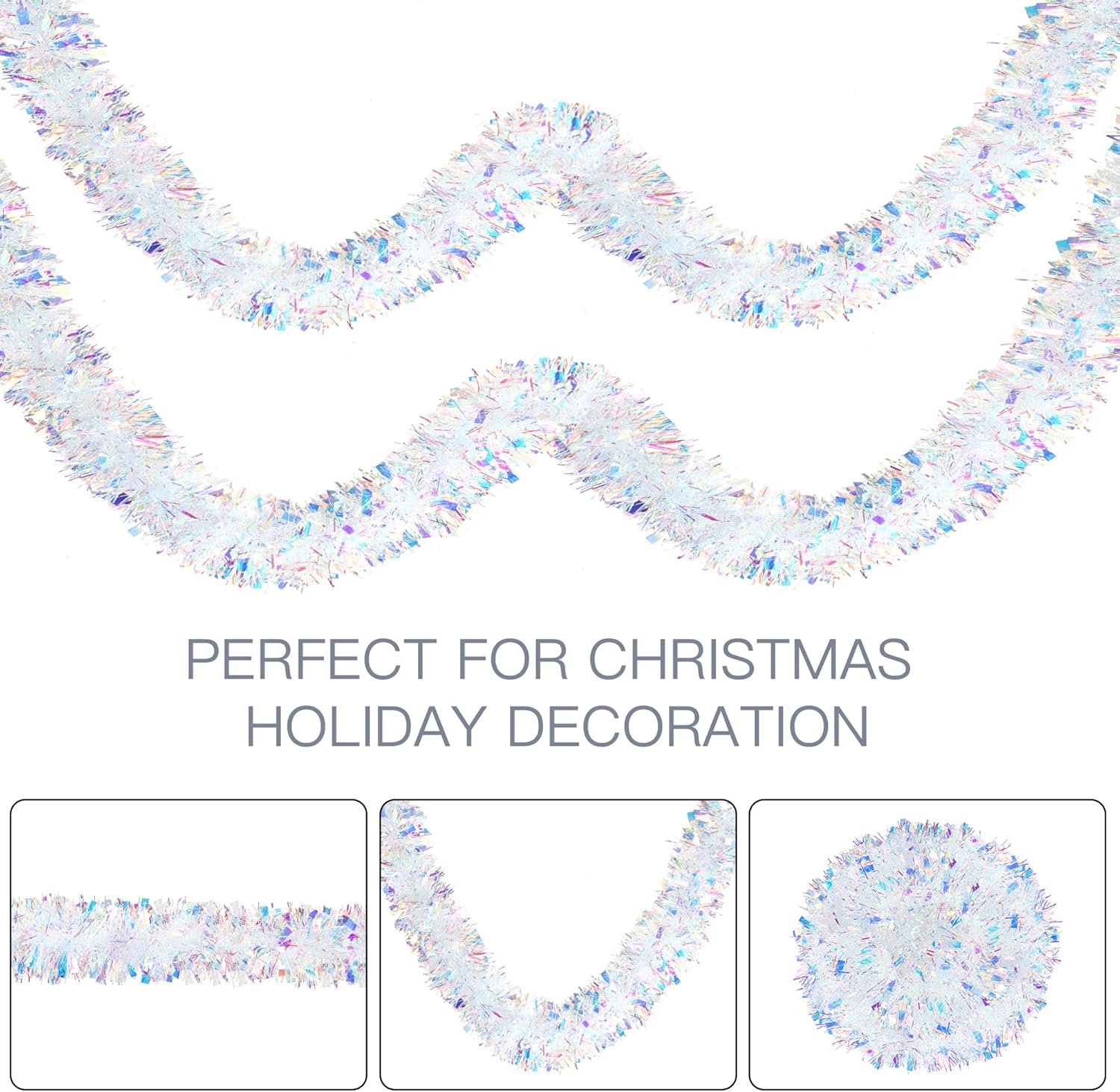 Sggvecsy 26.2Ft Christmas White Tinsel Garland Xmas Tree Decorations Christmas Iridescent Metallic Twist Garland Ceiling Hanging Decorations for Year Party Birthday Holiday Indoor Outdoor Supplies