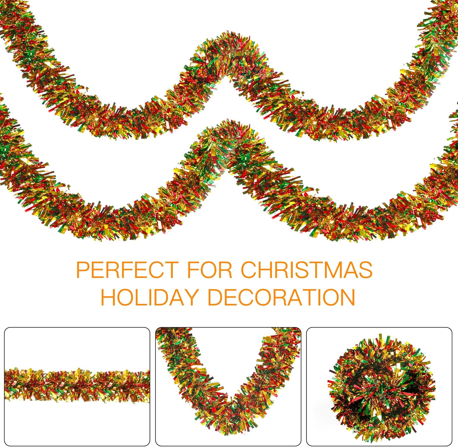 Sggvecsy 49.2Ft Christmas Green Red Gold Tinsel Garland Xmas Tree Decorations Christmas Metallic Twist Garland Ceiling Hanging Decorations for Year Party Birthday Holiday Indoor Outdoor Supplies