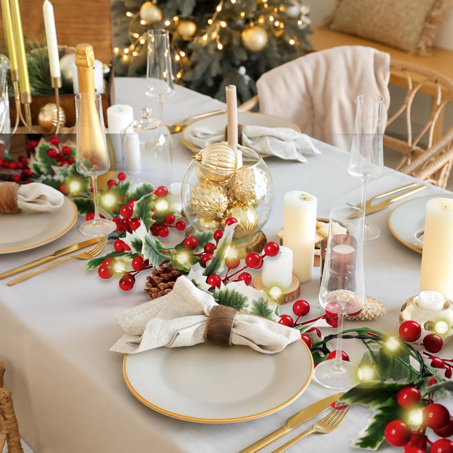 [PREMIUM MATERIAL & ADJUSTABLE GARLAND]:The Christmas garland are made of high quality silk and foam,bendable and easy to assembled. Inside the garland stem is iron wire, the red berry garland is flexible, so you can shape the garland ly as you wish.[PACKAGE & SUITABLE SIZE]:The holly leaves garland is total 5.9ft, adequate enough to match many holiday ornaments and satisfy your diverse. The Christmas garland with lights has pre-lit 20 warm white lights, need 2AA battery (Batteries not included). Due to transportation, the garlands have been slightly bent, please adjust the garland into original shape after receiving.