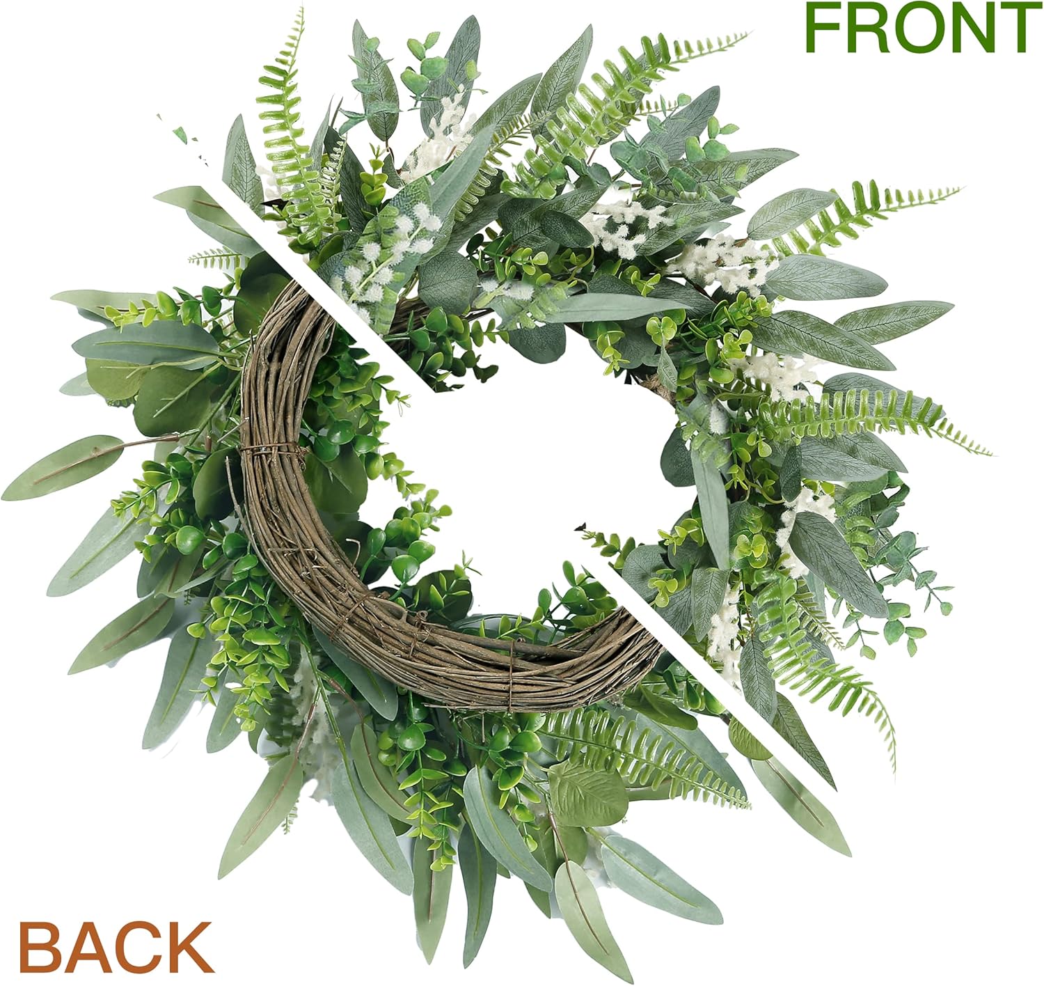 Sggvecsy Green Artificial Eucalyptus Wreath with Welcome Sign 20in Mixed White Berries Spring Summer Wreath for Front Door Wall Window Farmhouse Festival Porch Patio Garden Decor
