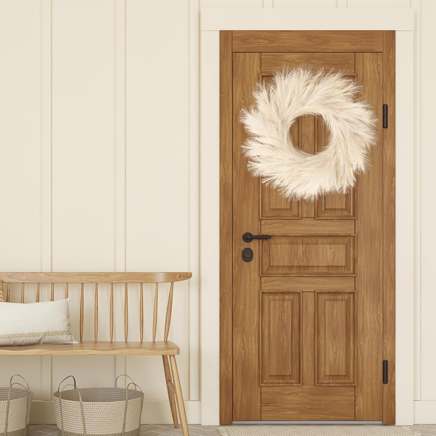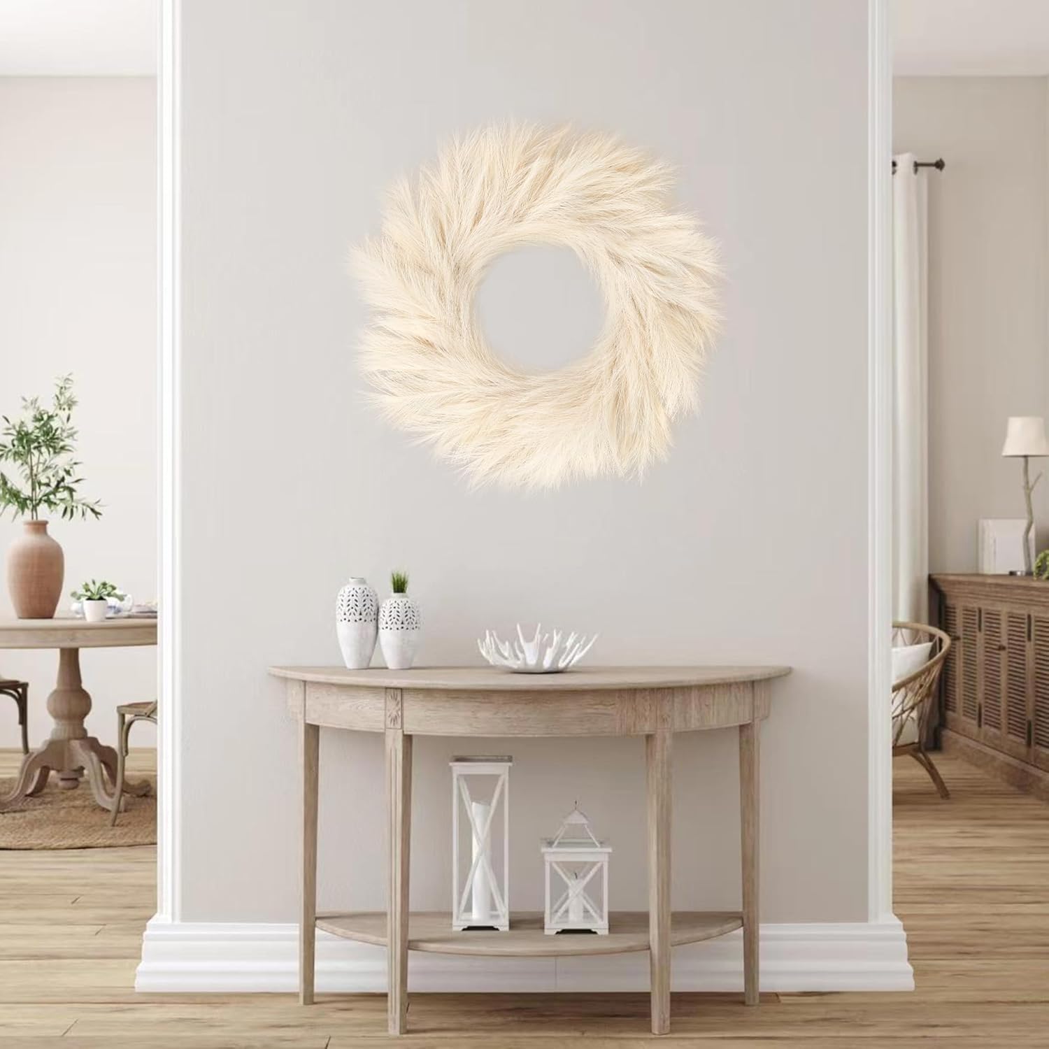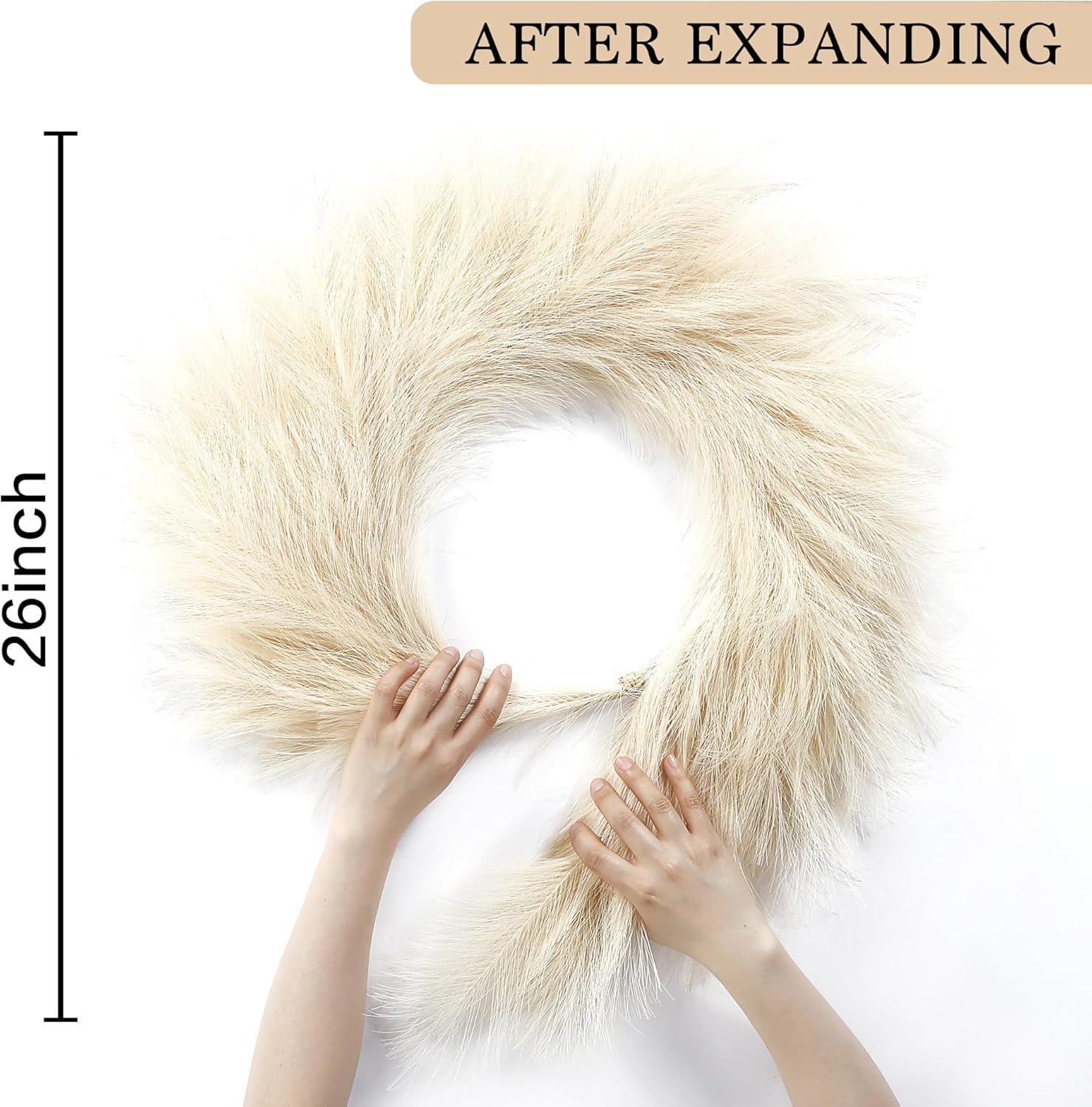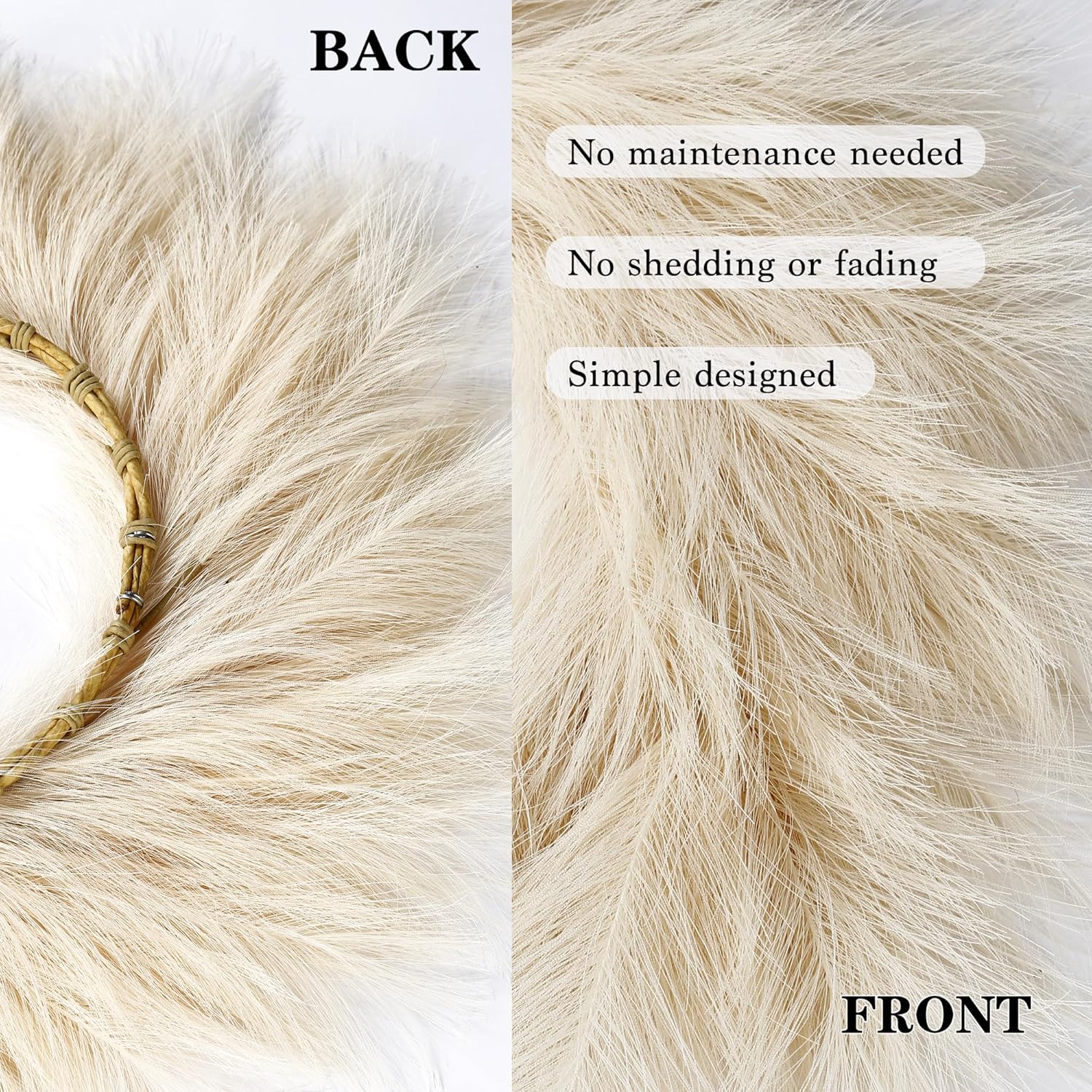 Sggvecsy Pampas Grass Wreath 26’’ Faux Pampas Wreath for All Seasons Artificial Pampas Wreath Christmas Decor Boho Wall Decor for Front Door Farmhouse Fall Autumn Xmas Spring Wreath Decoration (Biege)