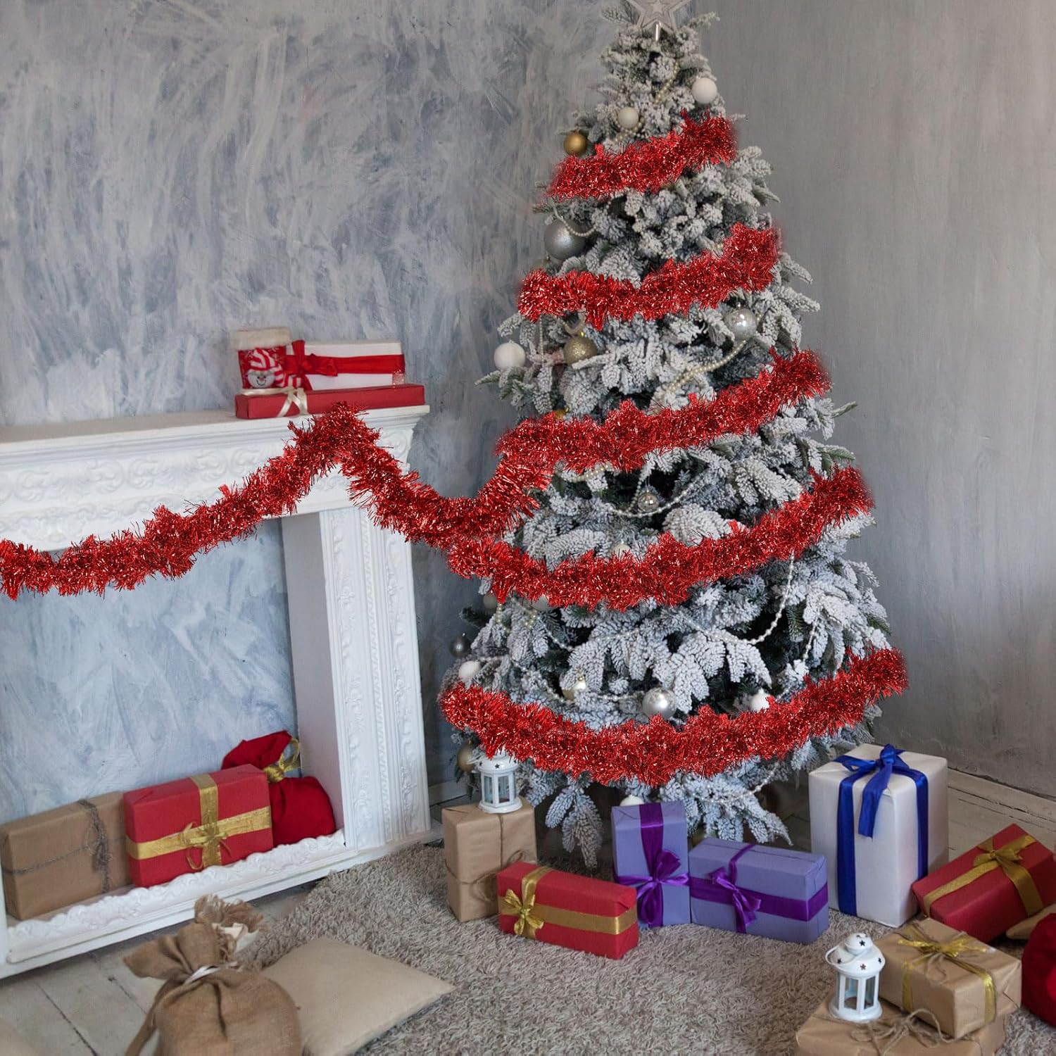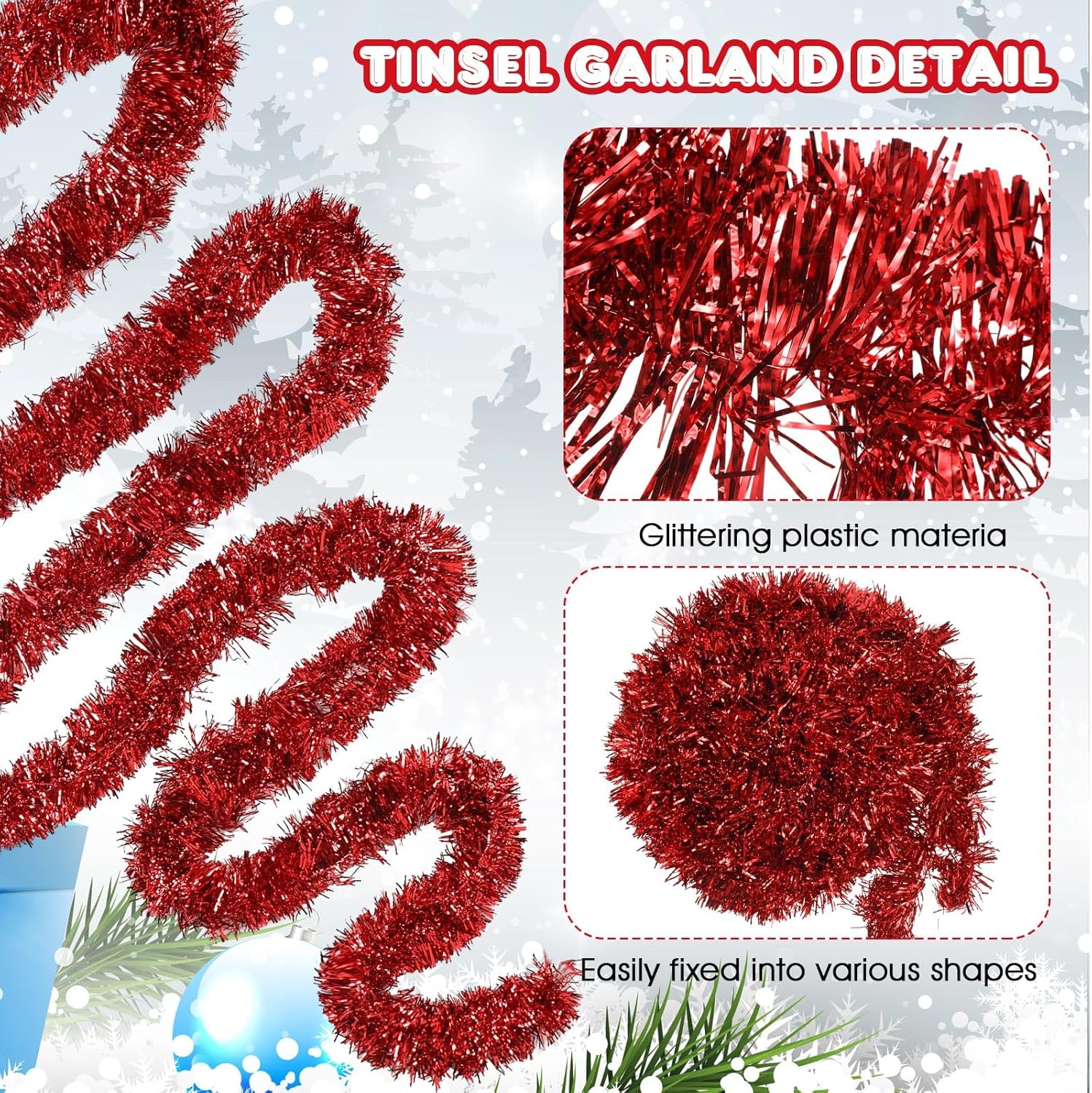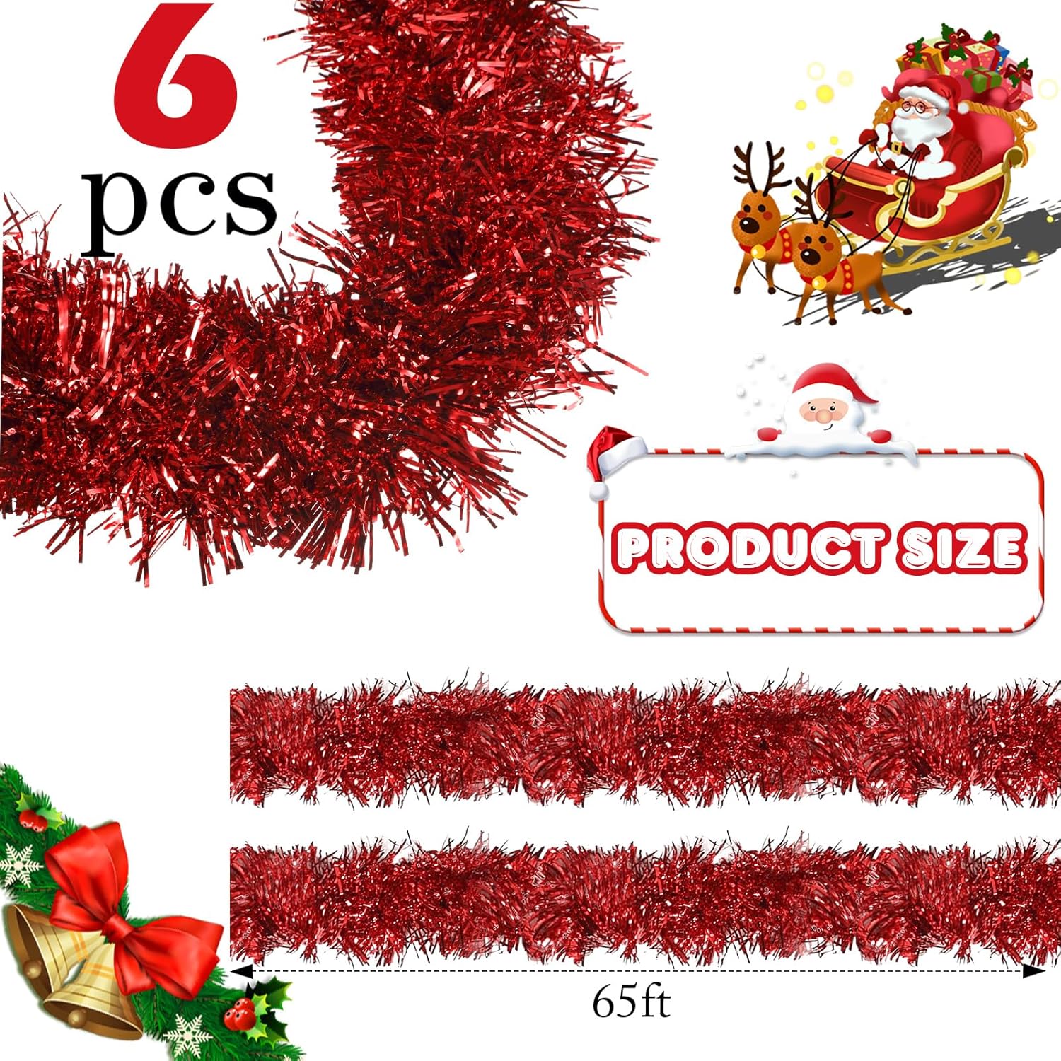 Shappy 393.7 ft 6 Rolls Halloween Tinsel Garland Glitter Wedding Tree Decor Christmas Memorial Independence Day Patriotic Birthday Party Supplies(Red)