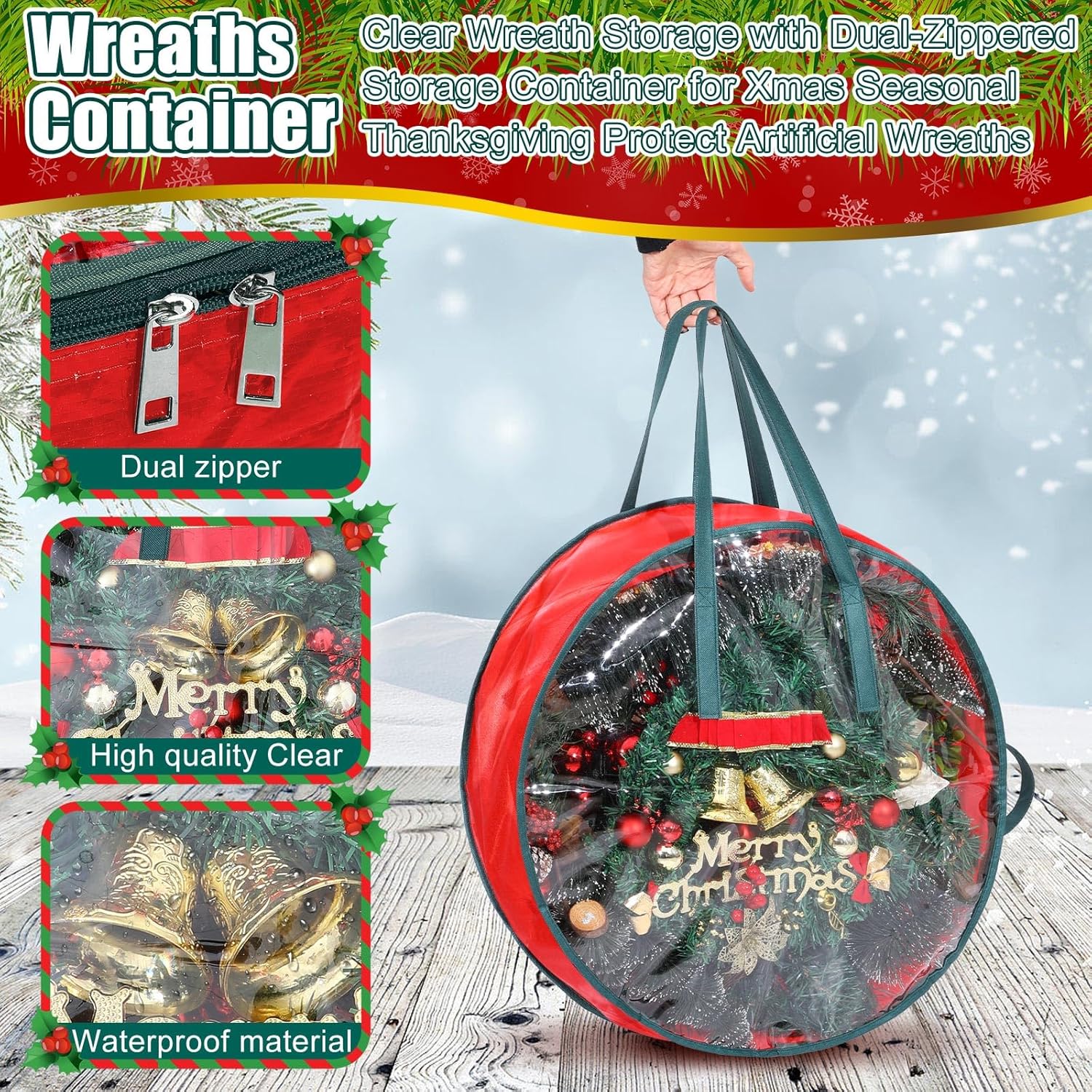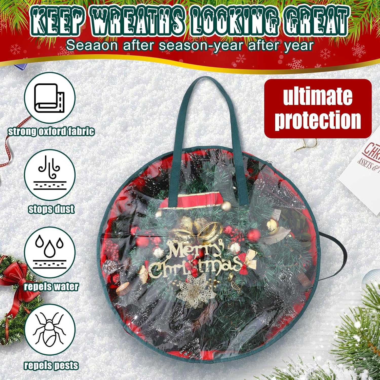 You Will Get: you will receive 6 pieces of wreath storage bags, they are designed with a translucent color, allowing you to store different garlands for your daily use, you can also share them with your friendsClear Window and Double Zipper: our plastic door cover christmas adopts a clear window on the surface, you can see right inside, do not have to open the zipper, double zipper design allows you to easily place the wreath inside the bag, convenient and nice, not easy to get dirty, to enjoy a pleasant and comfortable Christmas