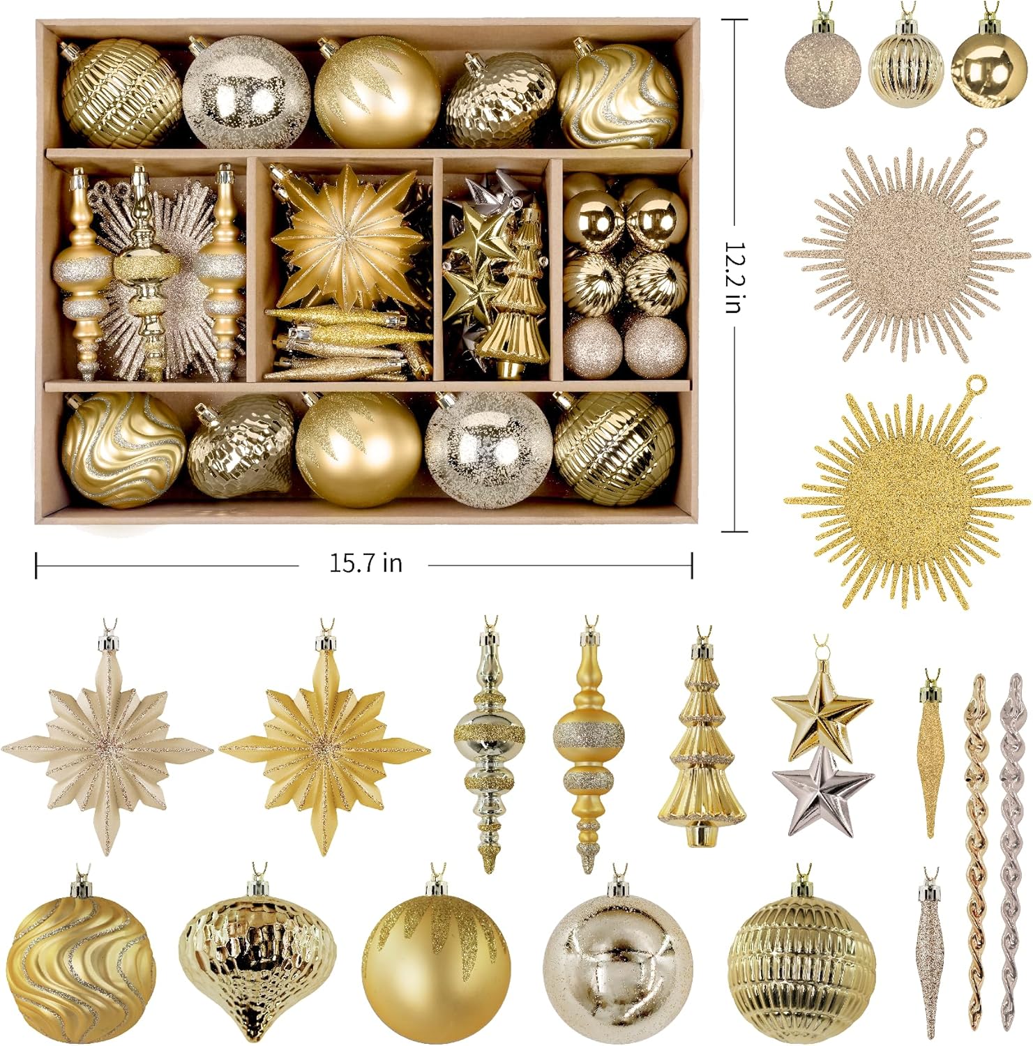 SHareconn 80pcs Christmas Balls Ornaments Set, Contemporary Light Luxury Set, Shatterproof Plastic Decor for Xmas Tree Holiday Wedding Party Decorations with Hanging Strings, Dark and Light Gold