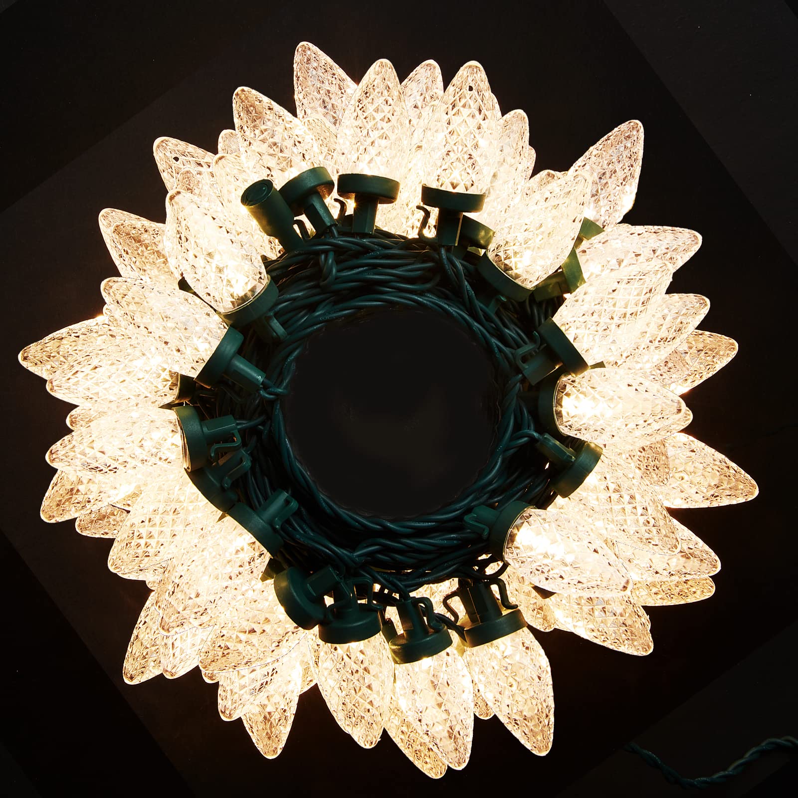 • Connectable C9 Christmas Lights: Each Christmas light has an end-to-end connector, support max 44 sets end to end connected, ly conntected according to your demand. Enough to cover larger area. The green wire is the great choice for displaying lights on bushes or a wide range of other natural backgrounds. Hang these fairy lights along the roof, across a porch or fence, or wrap them around trees for your most exciting holiday light display ever