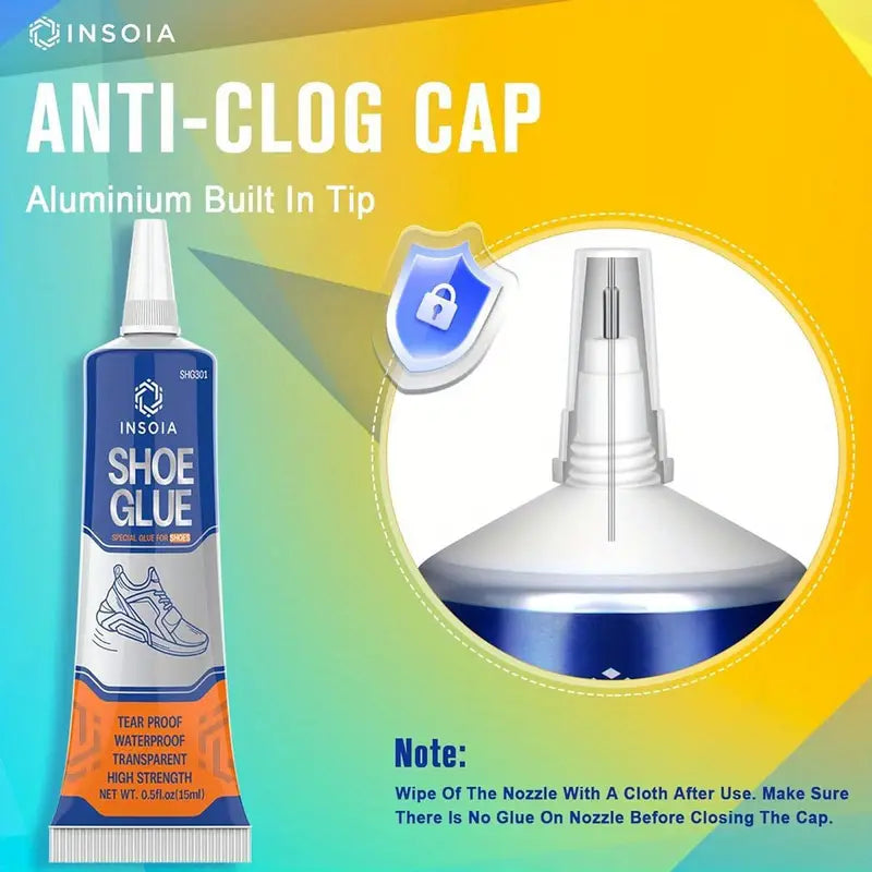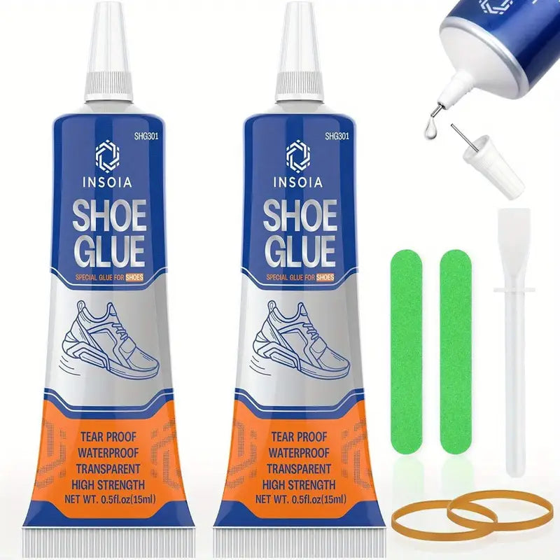 Shoe Glue Sole Repair Kit, 0.51oz x2 Heavy Duty Shoe Adhesive, Waterproof, Flexible, Clear- Drying for Sneakers, Boots, Leather, Rubber,