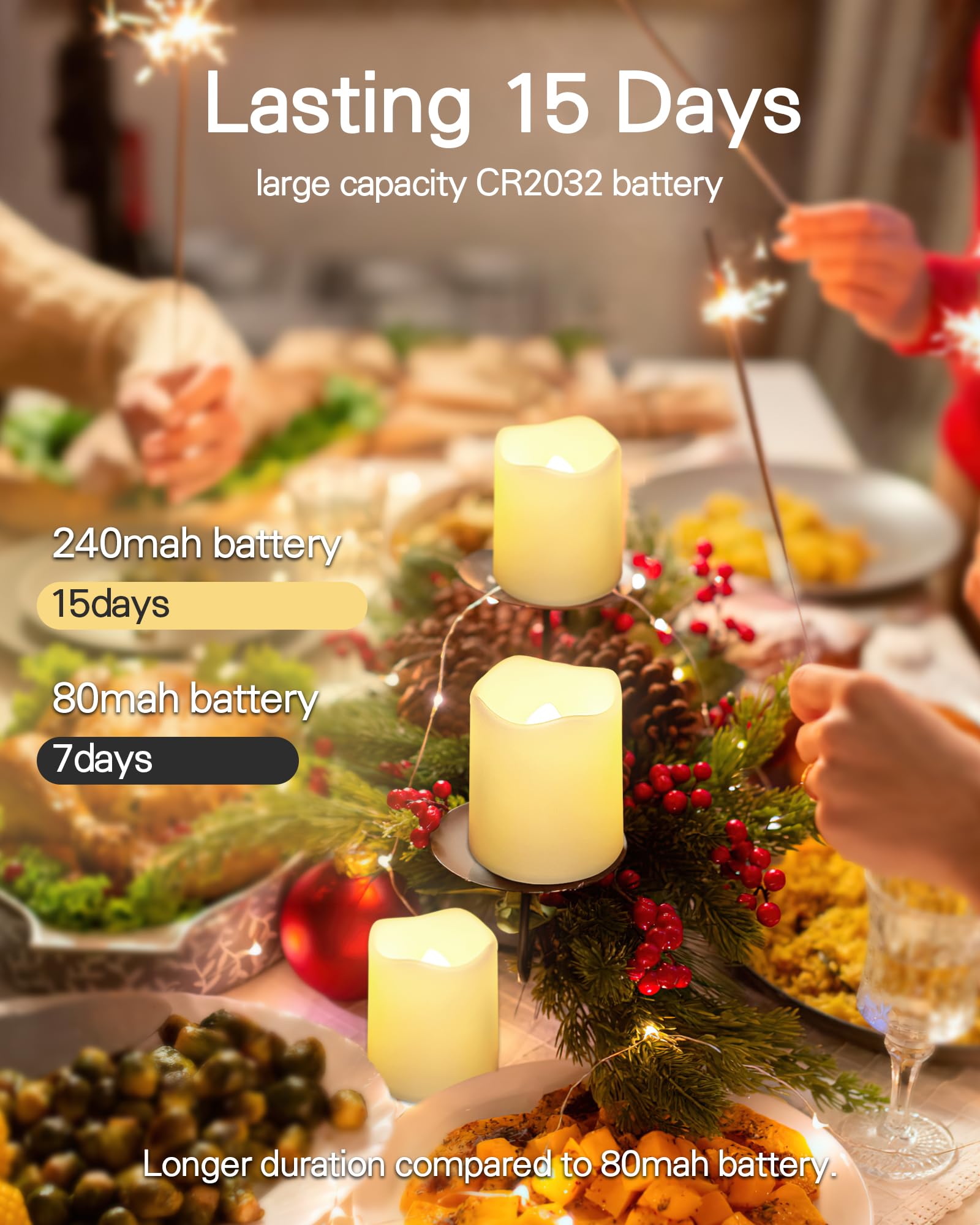 SHYMERY Flameless Votive Candles with Timer,12 Pack Last 15 Days Battery Operated Flickering LED Candles,18 Hours Off in 24 Hours Auto Tea Lights for Halloween Christmas Wedding Decorations1.48 x1.6