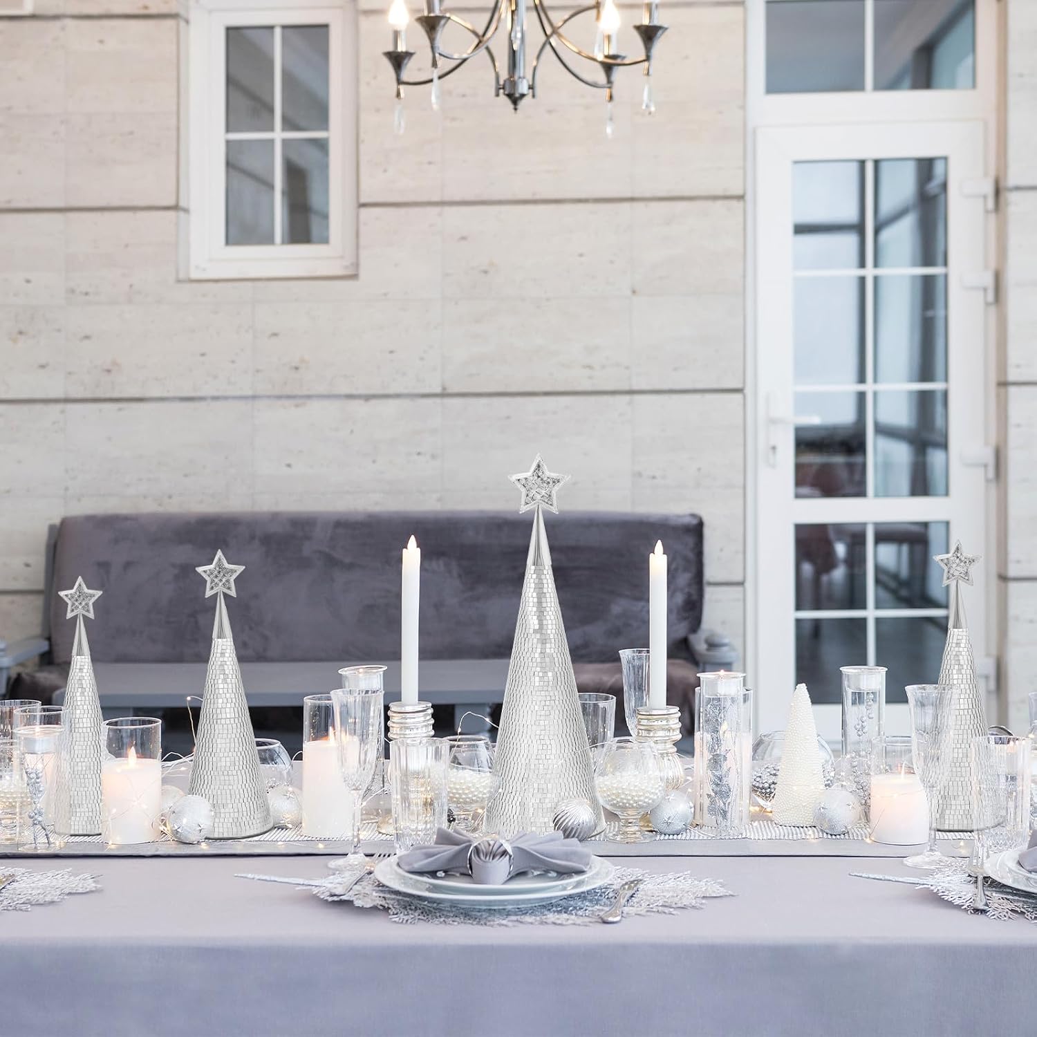 Silver Glass Christmas Trees Set of 3, 17" 15" 13" Small Tabletop Christmas Tree Handmade Disco Decor for Xmas Table Party Decoration