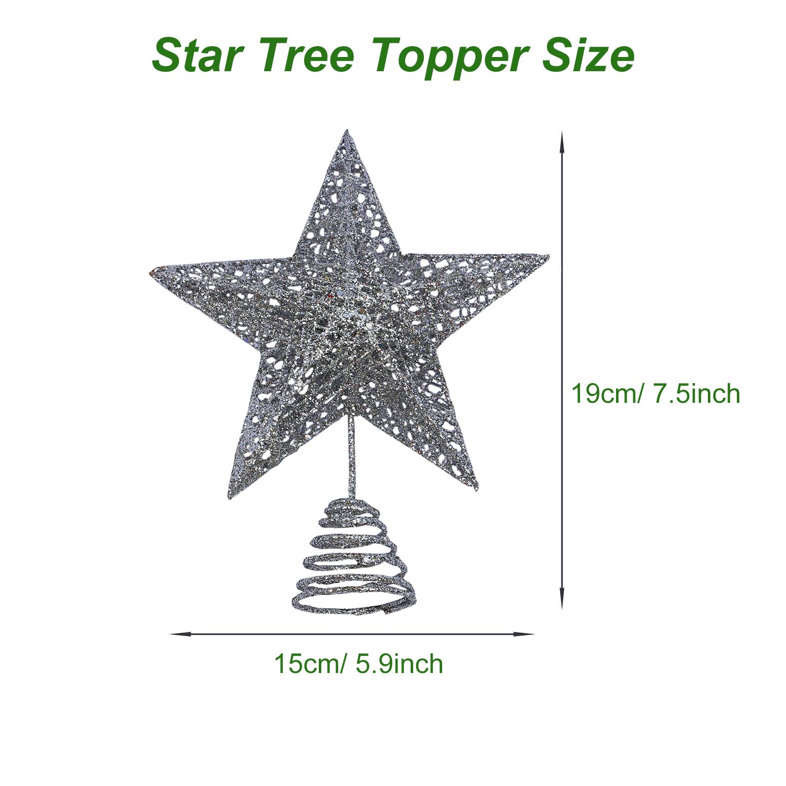Silver Metal Christmas Tree Topper Glittered Xmas Treetop Hollow Star Topper for Christmas Party Home Decoration