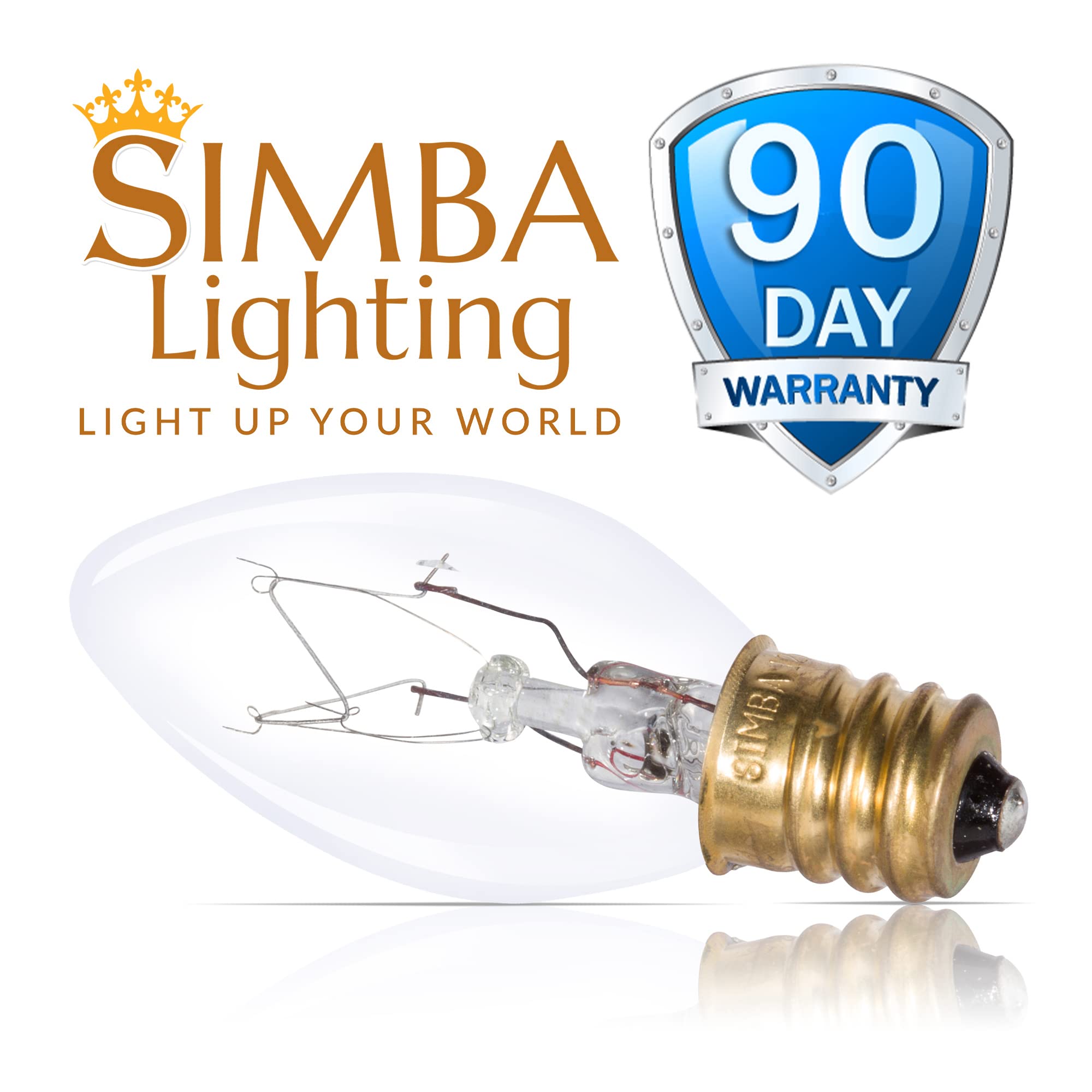 Simba Lighting C7 4W Replacement Bulb (6 Pack) for Night Light, Clear Candle Shape, 120V, E12 Candelabra Base, Dimmable, 2700K Warm White